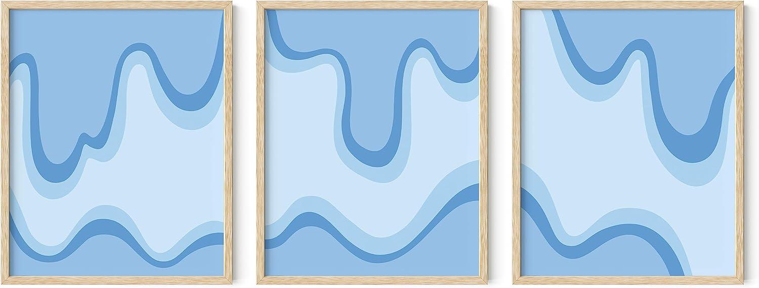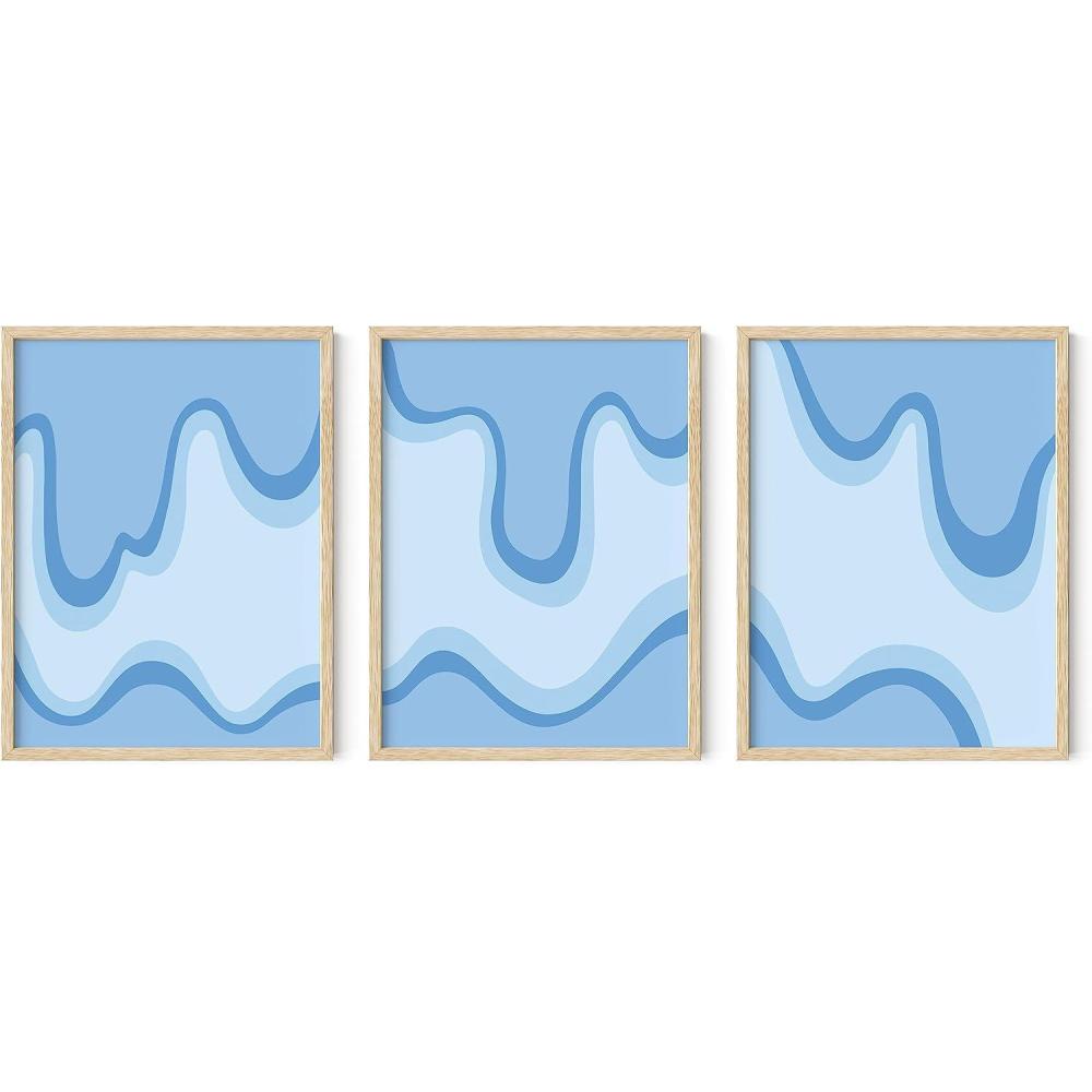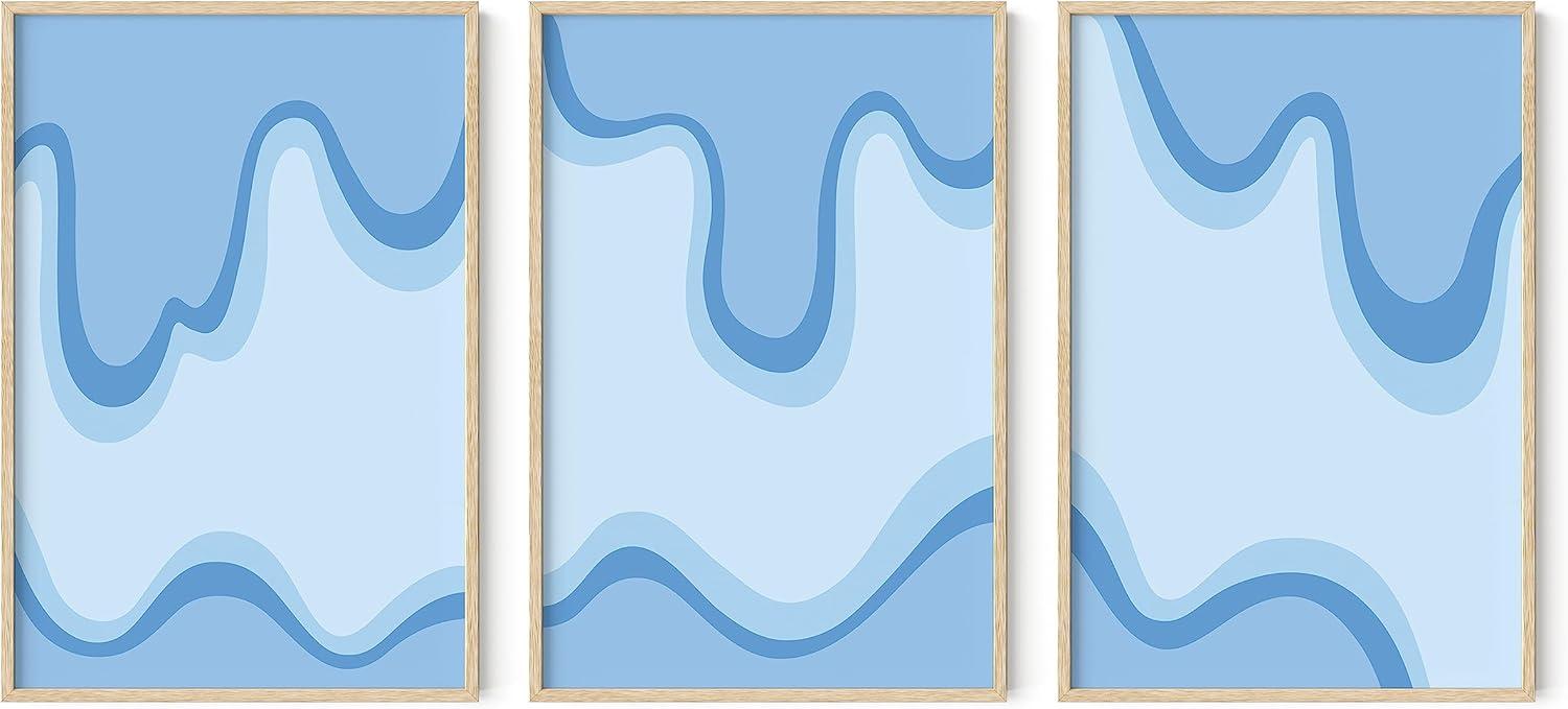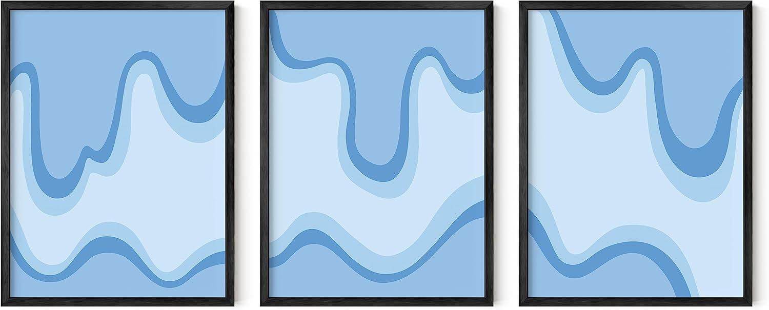 imageHAUS AND HUES Abstract Art Wall Decor  Set of 3 Abstract Wall Art for Living Room Blue Posters Geometric Wall Art Abstract Room Posters Aesthetic Colorful Wall Art Black Frame 24x36Blue Mountain