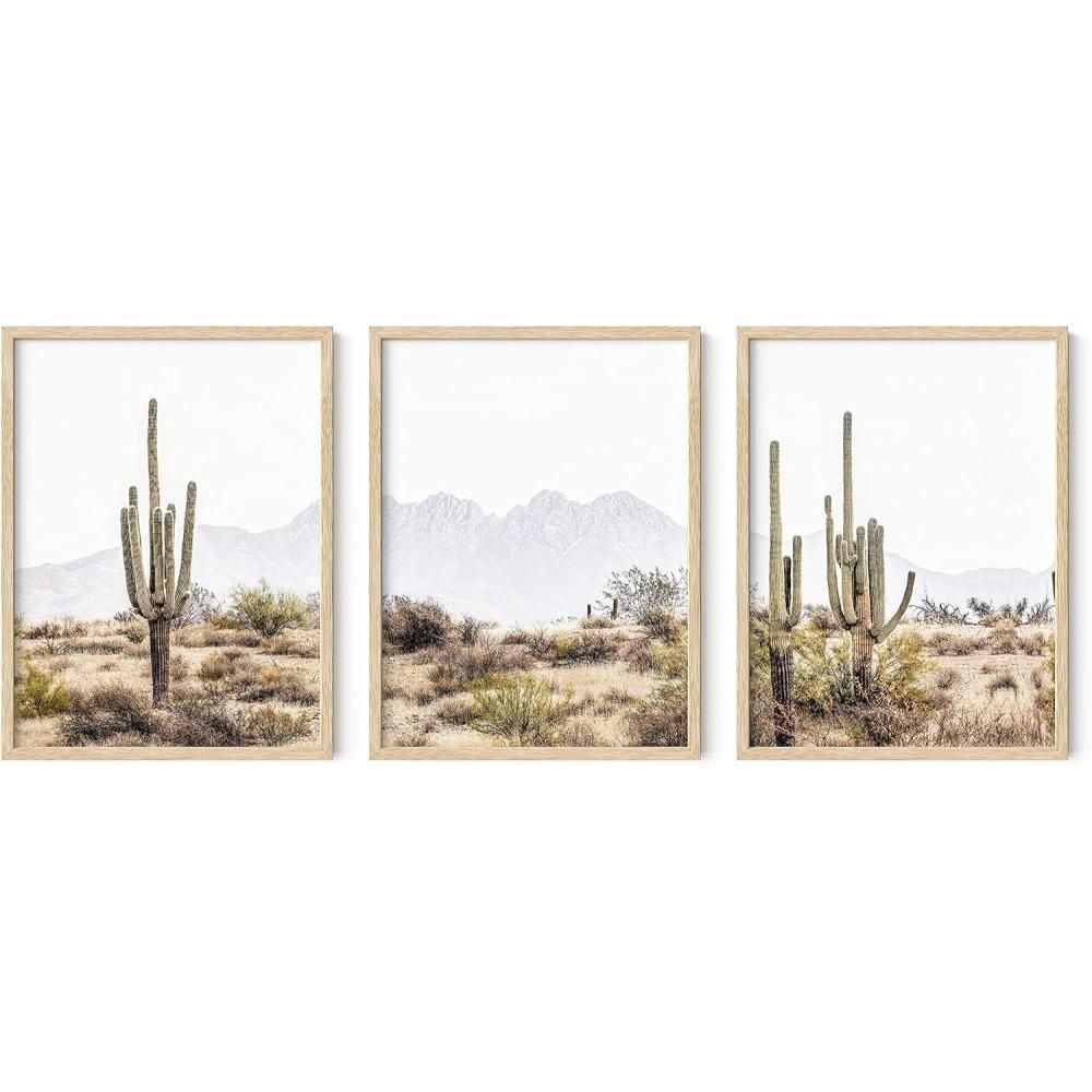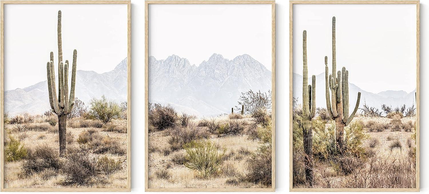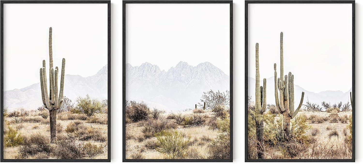 imageHAUS AND HUES Abstract Art Wall Decor  Set of 3 Abstract Wall Art for Living Room Blue Posters Geometric Wall Art Abstract Room Posters Aesthetic Colorful Wall Art Black Frame 24x36Desert Landscape