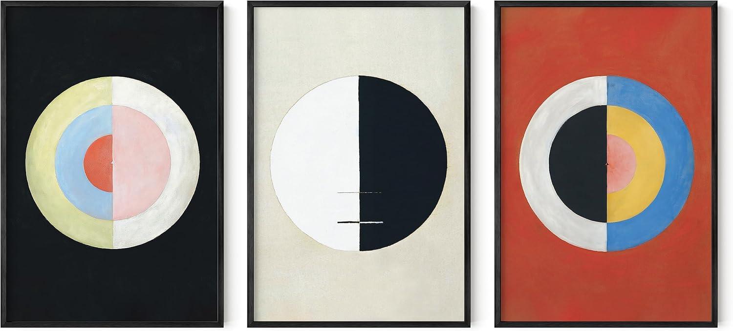 HAUS AND HUES Abstract Art Wall Decor – Set of 3 Abstract Wall Art for Living Room, Blue Posters Geometric Wall Art Abstract, Room Posters Aesthetic Colorful Wall Art (Black Frame, 24×36)(Klint Circles)