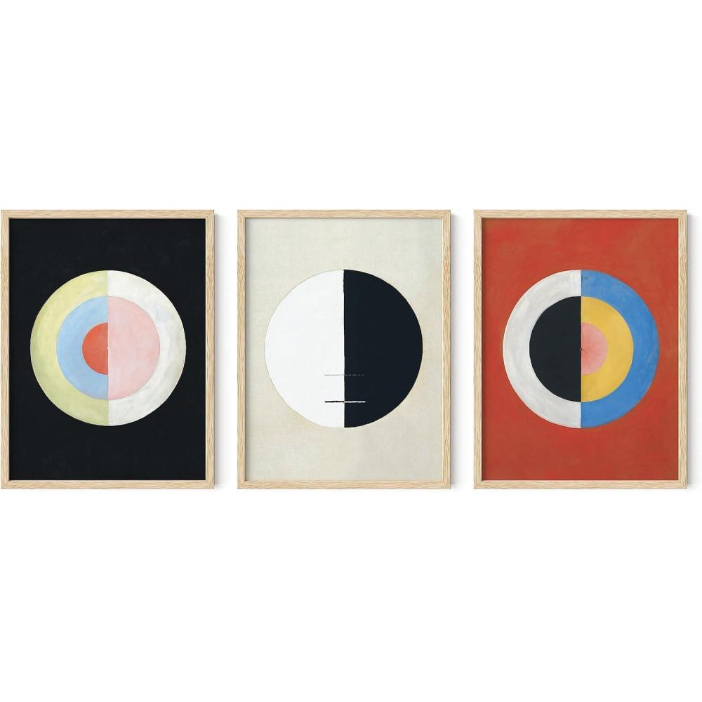 imageHAUS AND HUES Abstract Art Wall Decor  Set of 3 Abstract Wall Art for Living Room Blue Posters Geometric Wall Art Abstract Room Posters Aesthetic Colorful Wall Art Black Frame 24x36Klint Circles