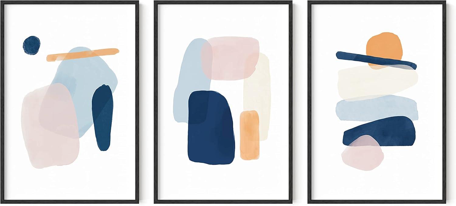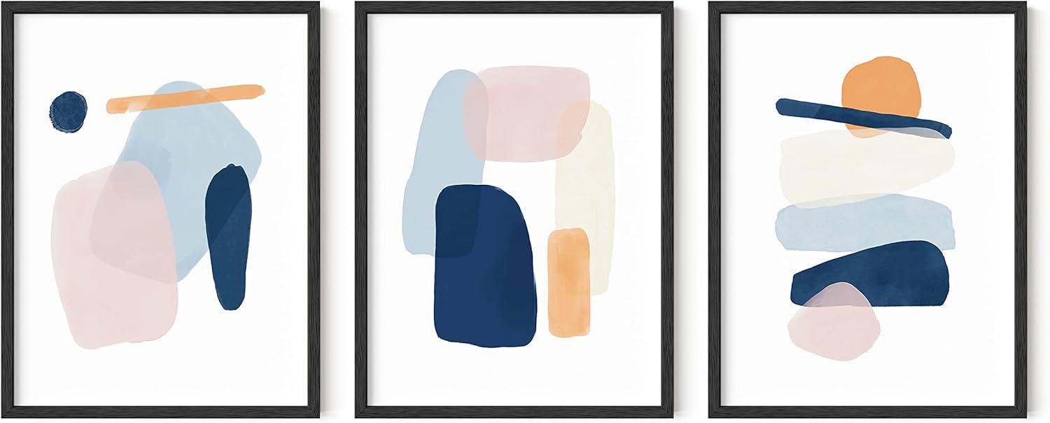 imageHAUS AND HUES Abstract Art Wall Decor  Set of 3 Abstract Wall Art for Living Room Blue Posters Geometric Wall Art Abstract Room Posters Aesthetic Colorful Wall Art Black Frame 24x36Painted Pastel