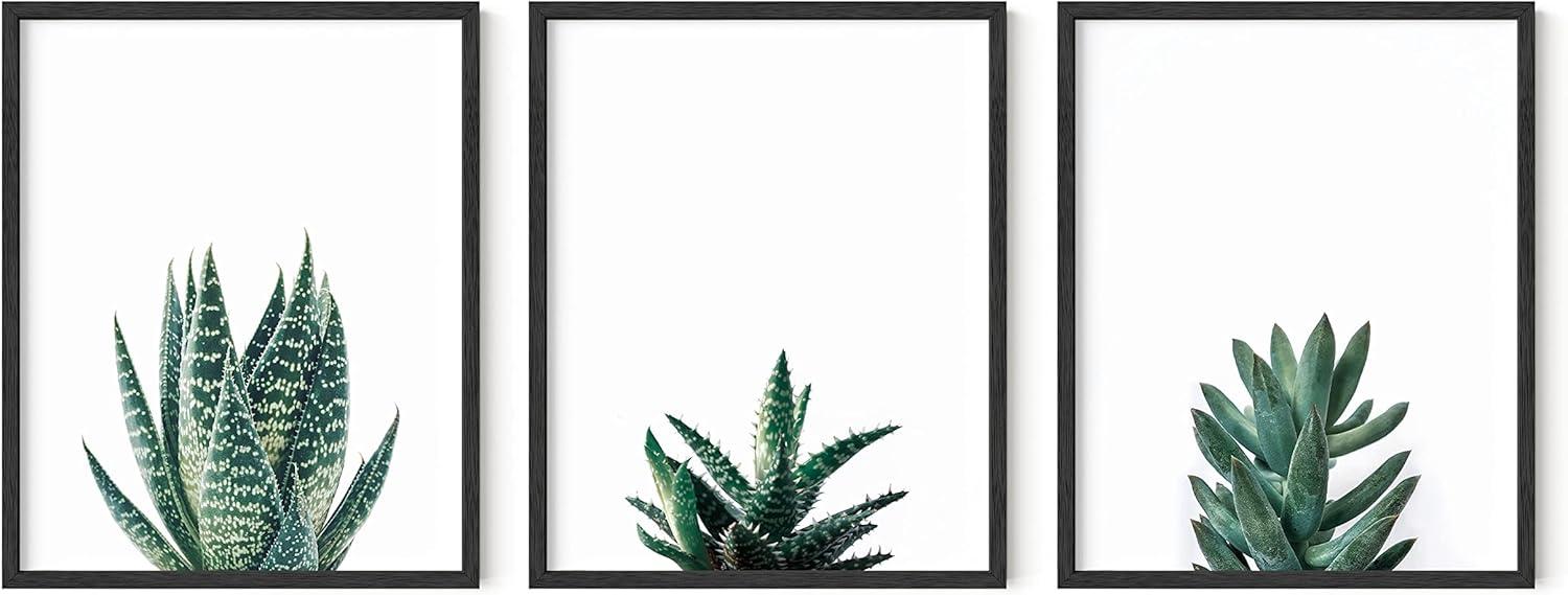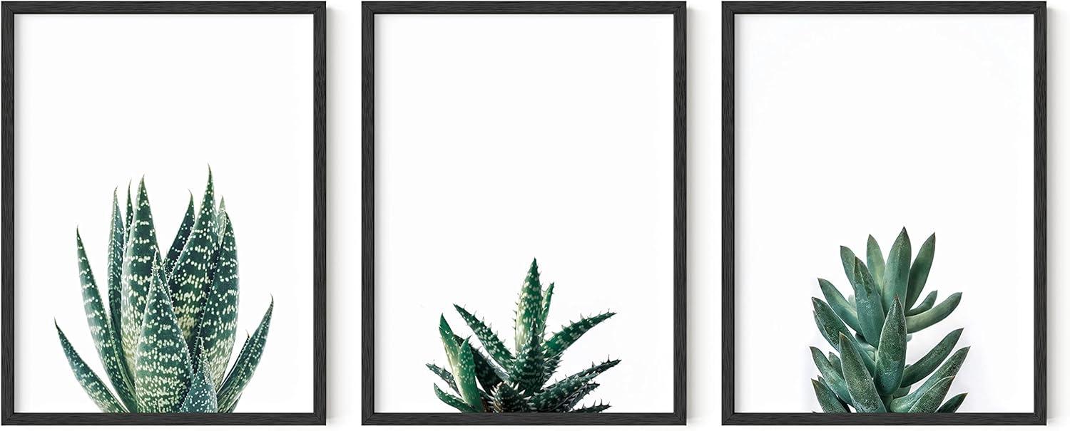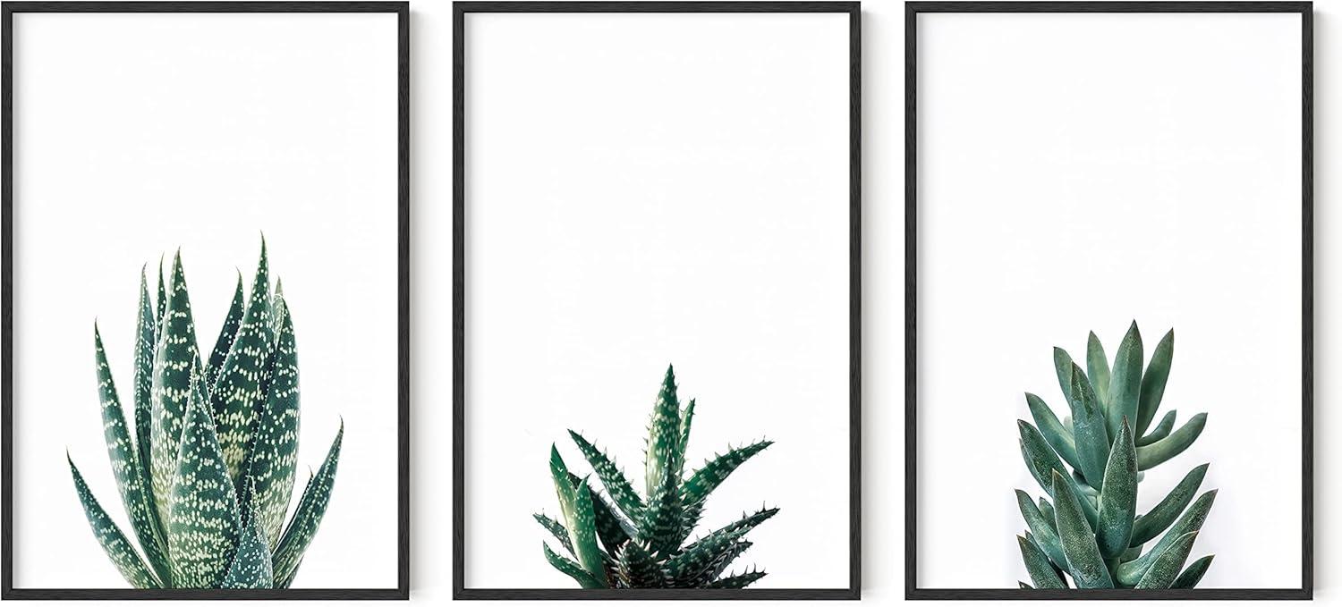 HAUS AND HUES Abstract Art Wall Decor – Set of 3 Abstract Wall Art for Living Room, Blue Posters Geometric Wall Art Abstract, Room Posters Aesthetic Colorful Wall Art (Black Frame, 24×36)(Succulent Plants)