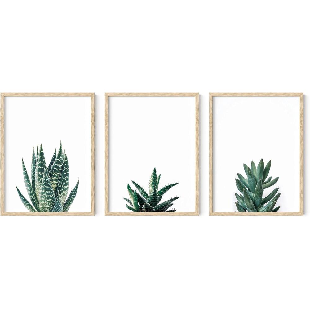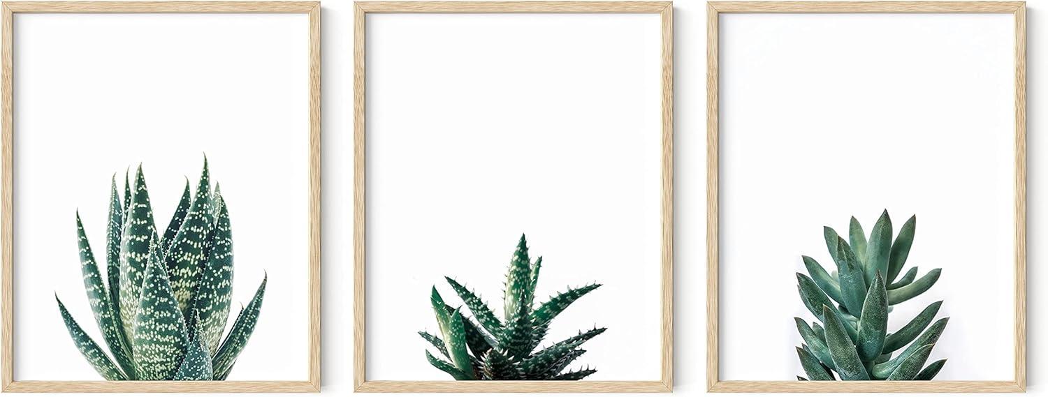 HAUS AND HUES Abstract Art Wall Decor - Set of 3 Abstract Wall Art for Living Room, Blue Posters Geometric Wall Art Abstract, Room Posters Aesthetic Colorful Wall Art (Black Frame, 24x36)(Succulent Plants)