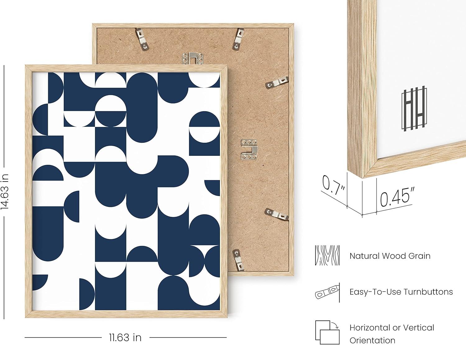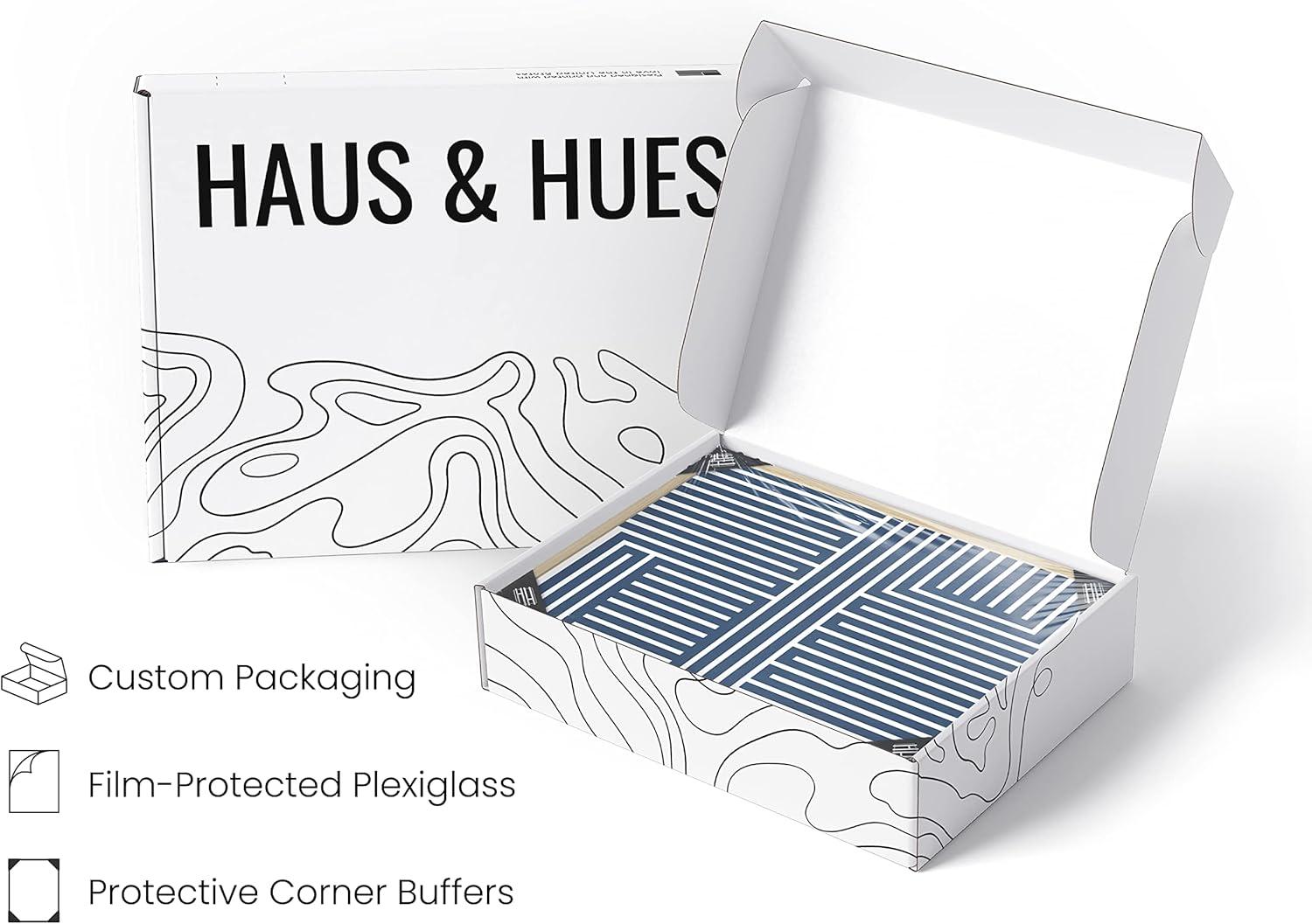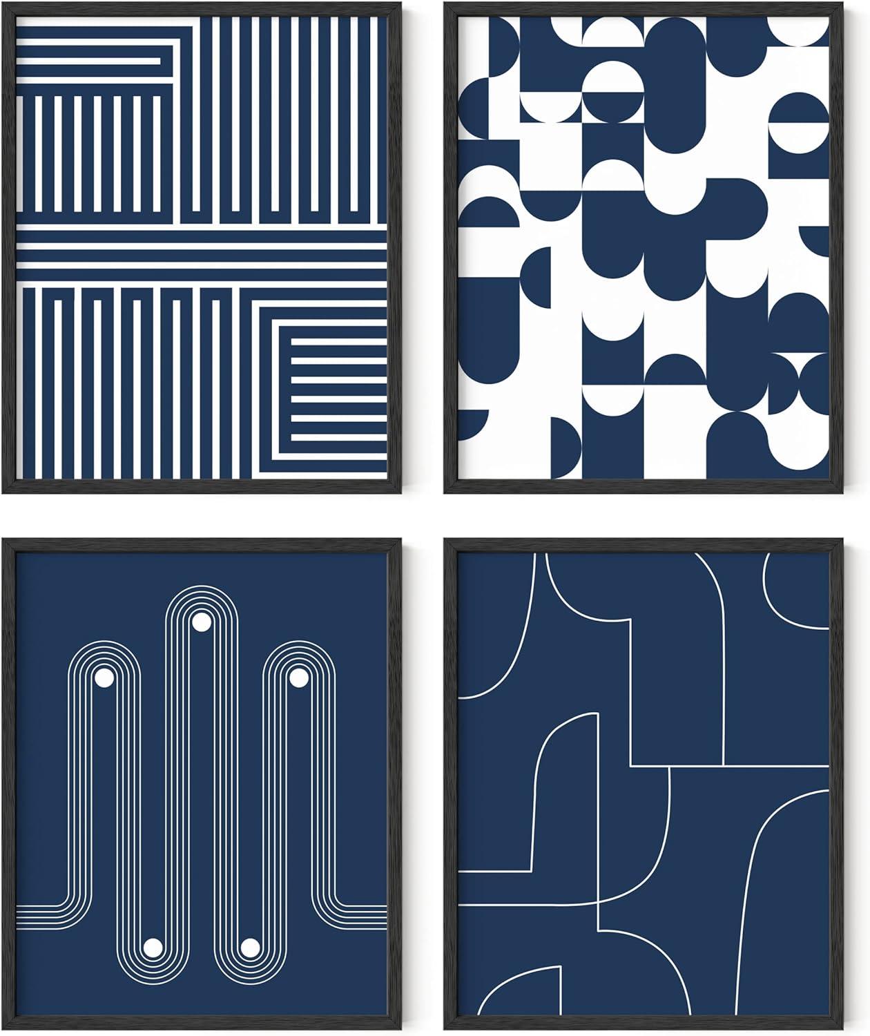 HAUS AND HUES Beach Poster Set of 4 – Abstract Ocean Prints, Nature Wall Art, Coastal Beach Scene Posters, Blue Watercolor Decor (Unframed, 11x14)(Navy Geometric Shapes)