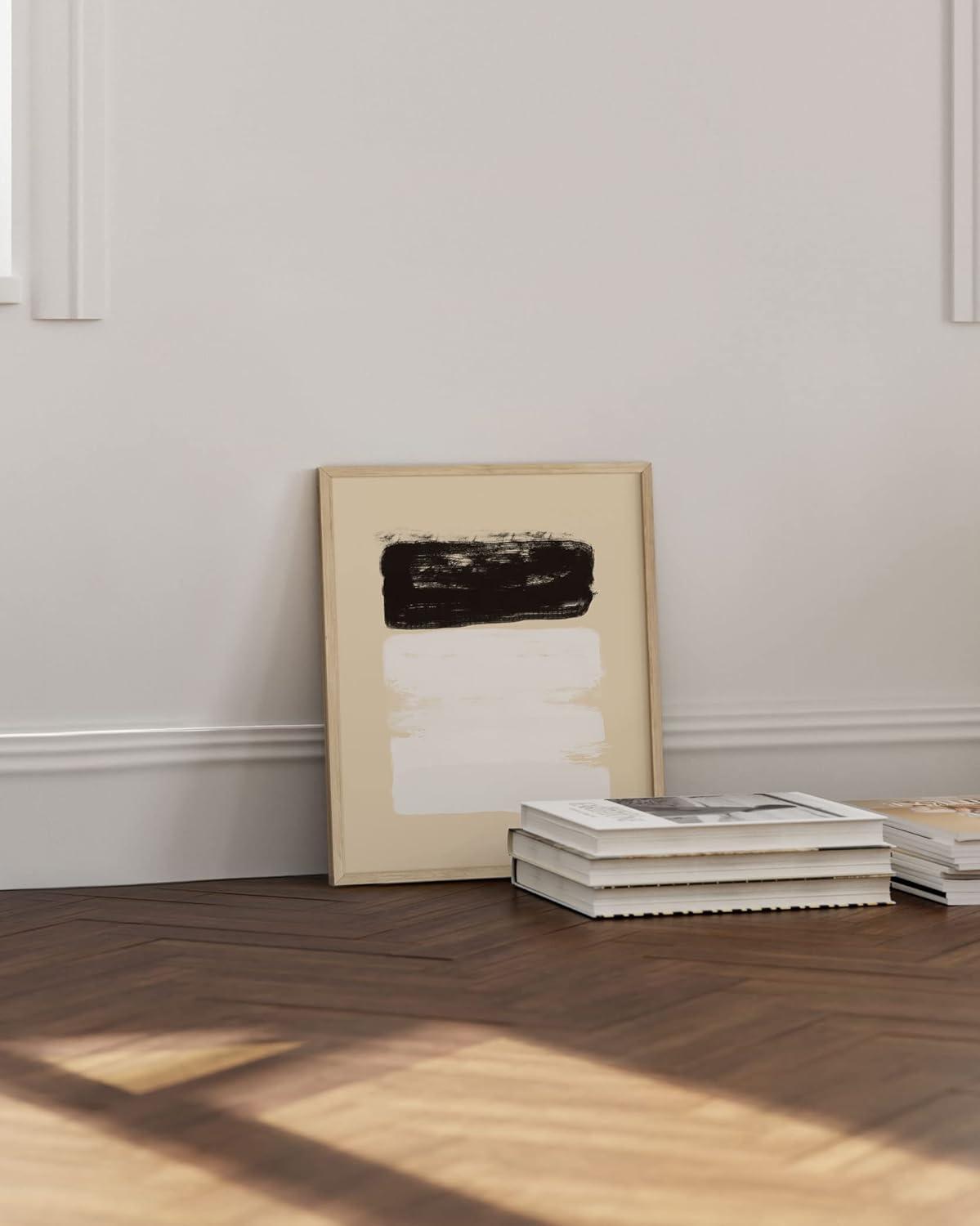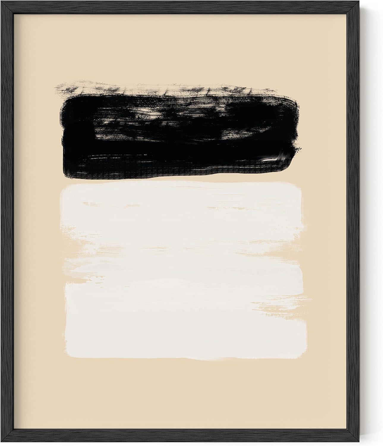 imageHAUS AND HUES Black and White Abstract Art Prints Mid Century Modern Wall Decor Black Abstract Wall Art Black and White Mid Century Modern Poster Black Abstract Art Shapes Beige Framed 12x16Brushstrokes