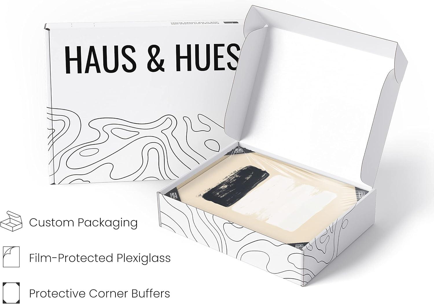 HAUS AND HUES Black and White Abstract Art Prints Mid Century Modern Wall Decor Black Abstract Wall Art Black and White Mid Century Modern Poster Black Abstract Art Shapes (Beige Framed, 12x16)(Brushstrokes)