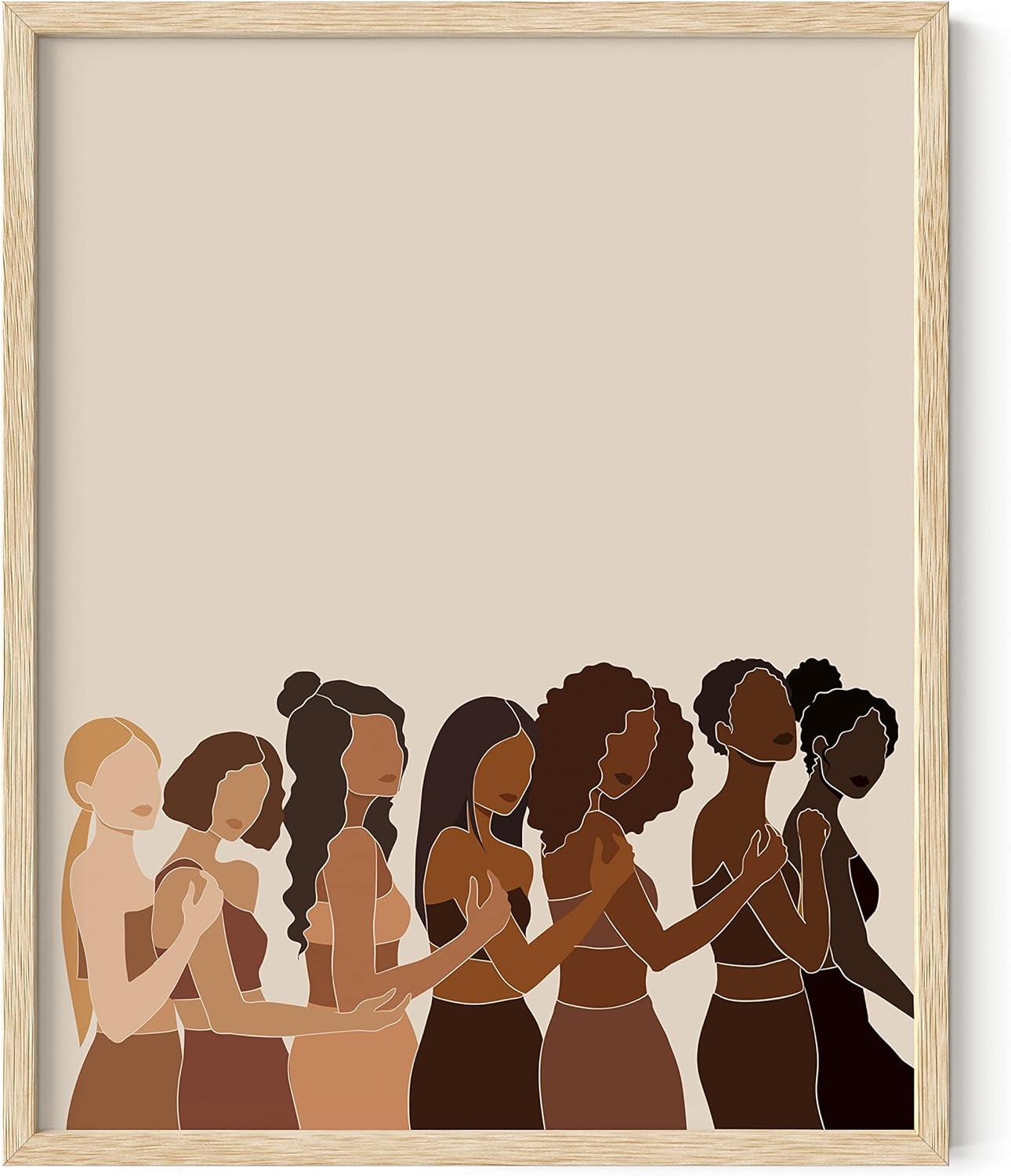 AWESOME BLACK WOMEN POSTER: Honor and affirm the extraordinary women in your life with Haus and Hues stunning african black art. This uplifting poster features a handful of women of different races and colors. It's a beautiful artwork that speaks of women’s liberation and female solidarity. If you like anything that brings women together to celebrate and support one another or just spoil the feminist badass in your life, then this black girl magic wall decor is for you