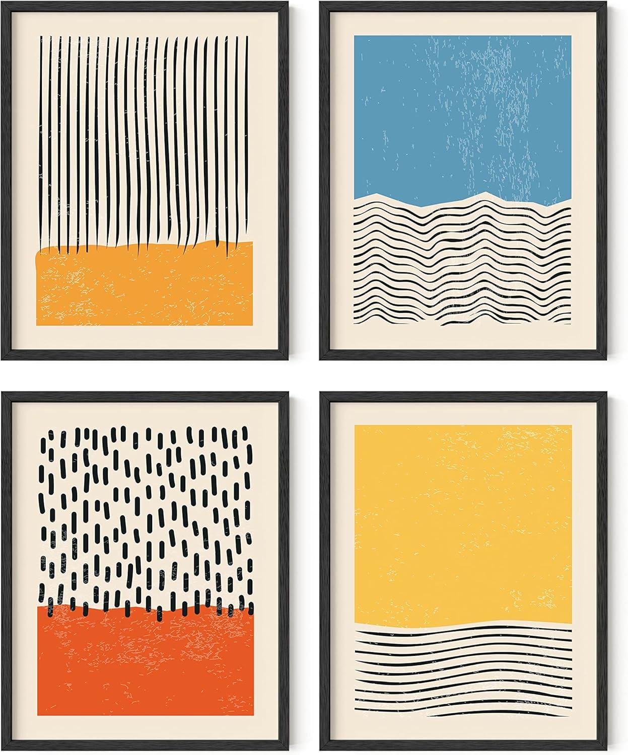 imageHAUS AND HUES Blue Abstract Wall Art Set of 4  Navy Blue and White Prints Modern TieDye Abstract Art Aesthetic Blue Wall Decor Black Frame 11x14Colors  Lines
