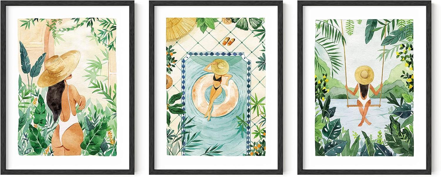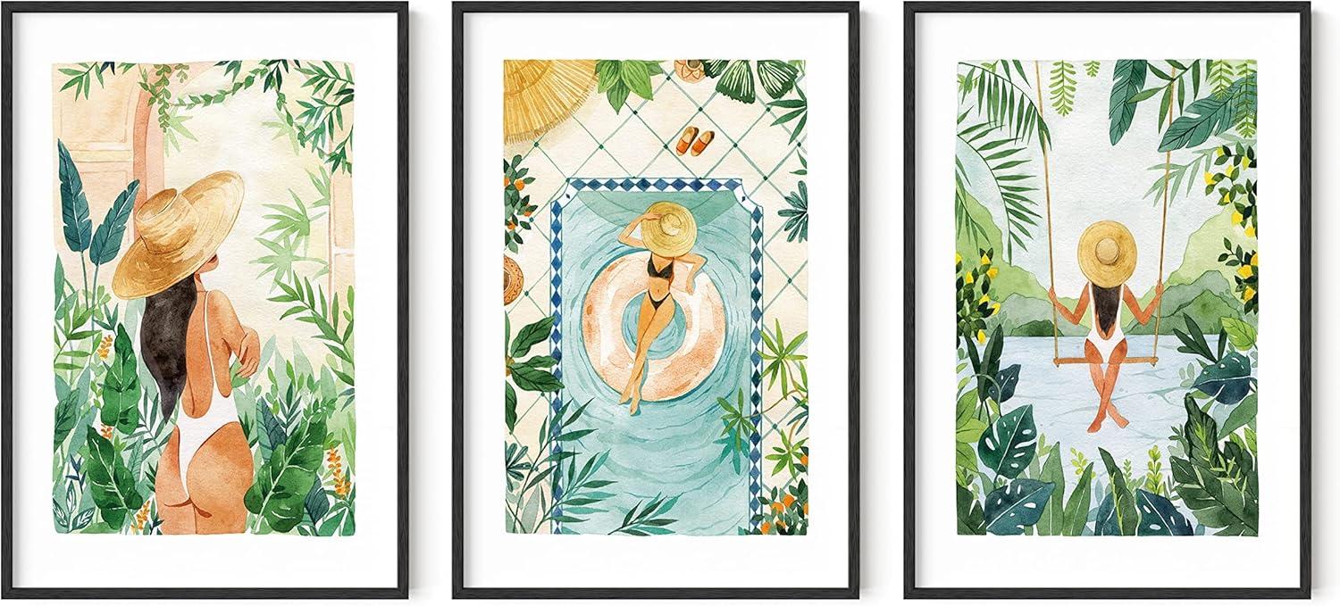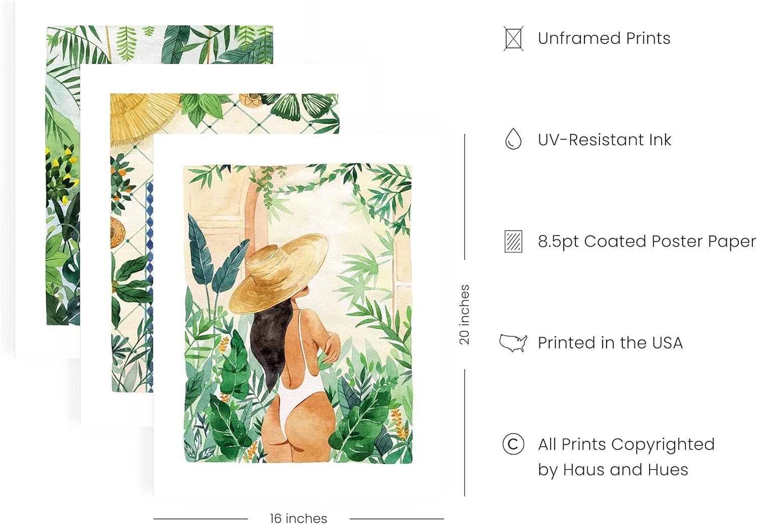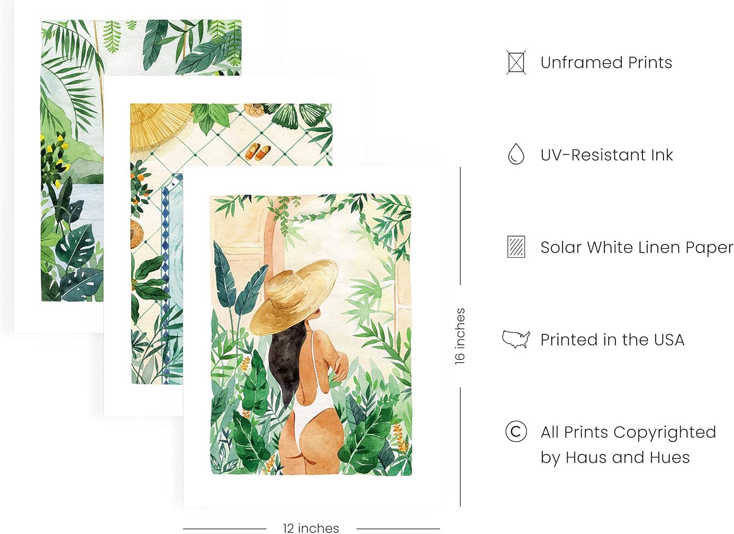 HAUS AND HUES Danish Pastel Wall Decor - Set of 3 Matisse Wall Art, Danish Pastel Aesthetic Posters for Bedroom, Abstract Art Wall Decor for Dorm, Living Room (Beige Frame, 24x36)(Tropical Bohemian Watercolor)