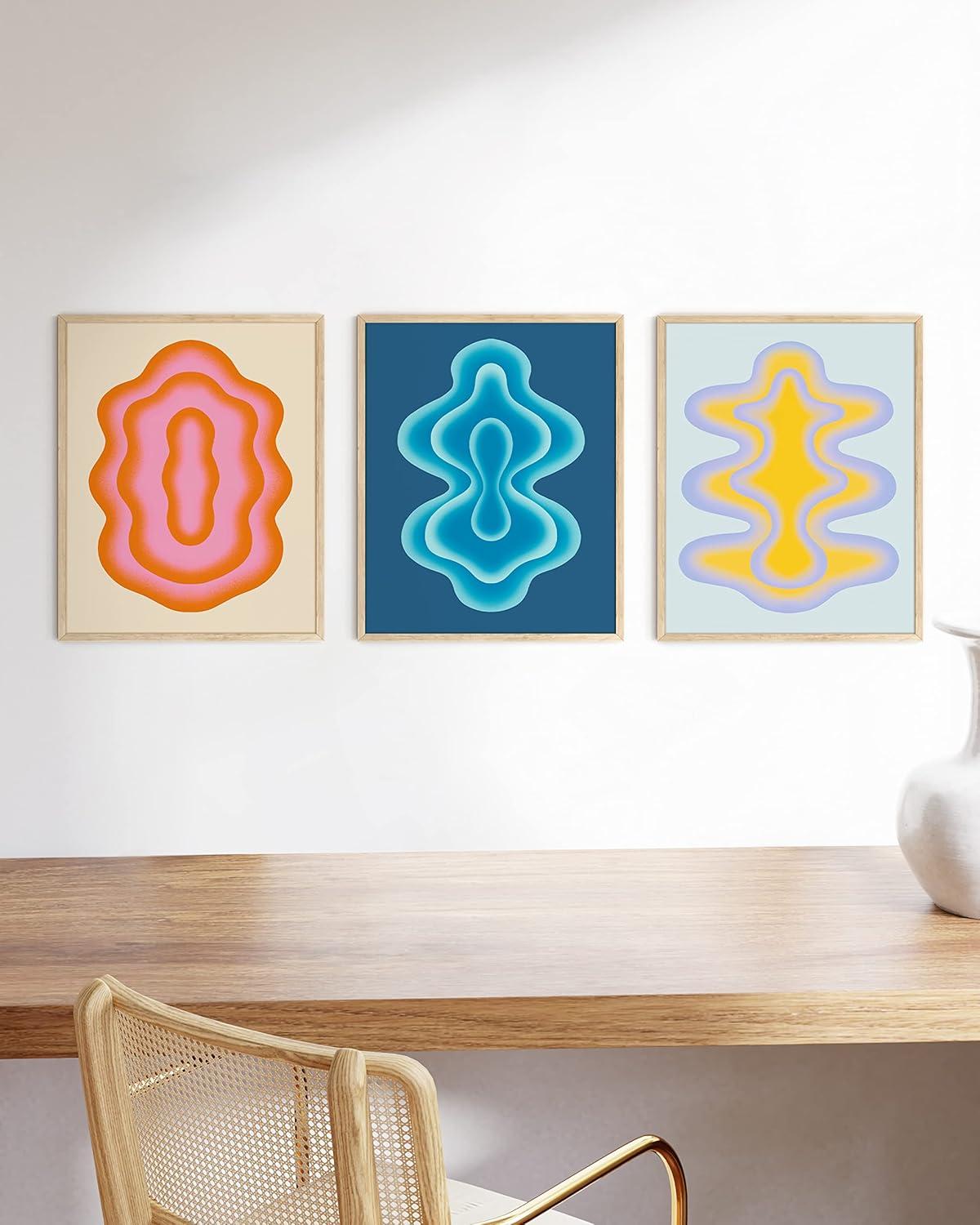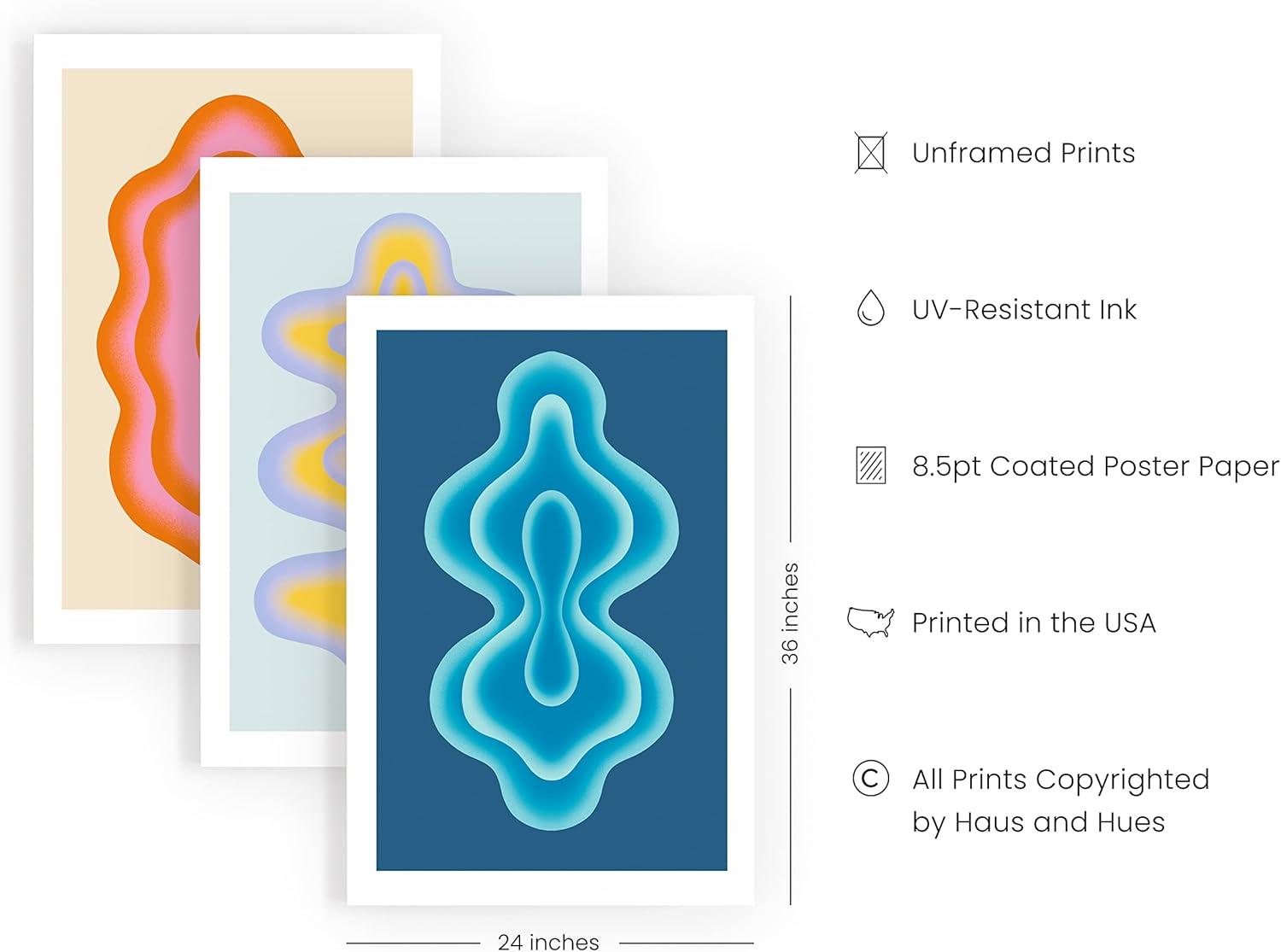 HAUS AND HUES Fashion Wall Art Set – Glam Purple Decor, Designer Aesthetic Prints for Bedroom (Black Frame, 24×36, Set of 3)(Retro Shapes)