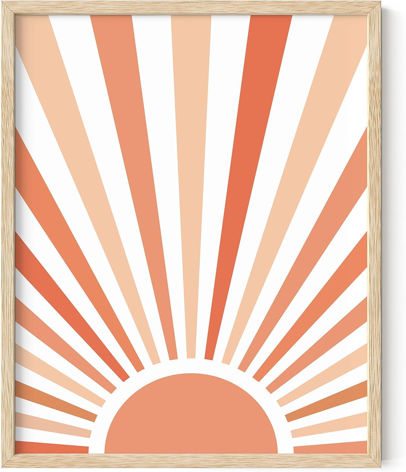 HAUS AND HUES Flamingo Wall Art – Tropical Flamingo Poster, Coastal Beach Print, Peach Pink Art for Bathroom or Bedroom (Unframed 24×36)(Rising Sun)