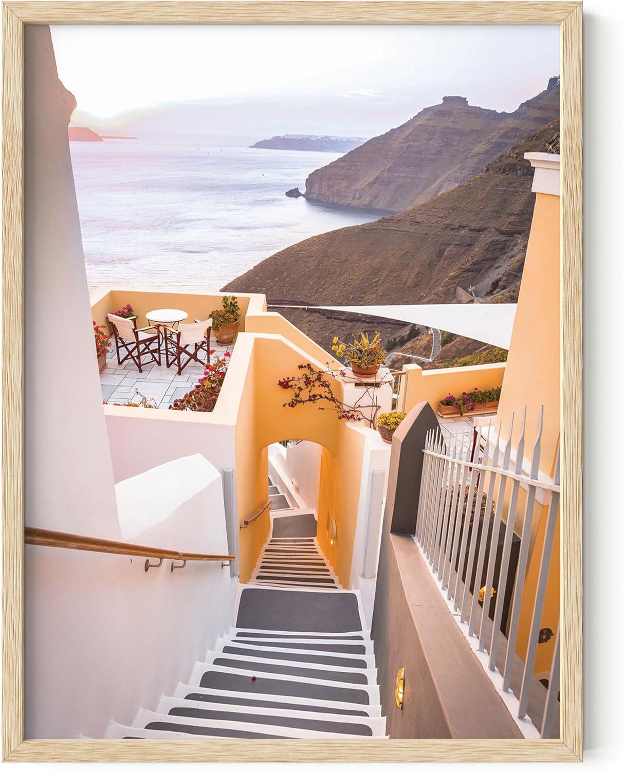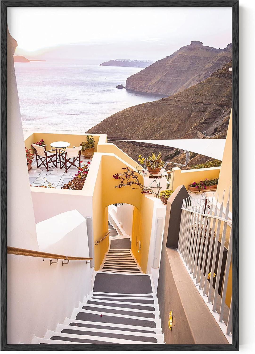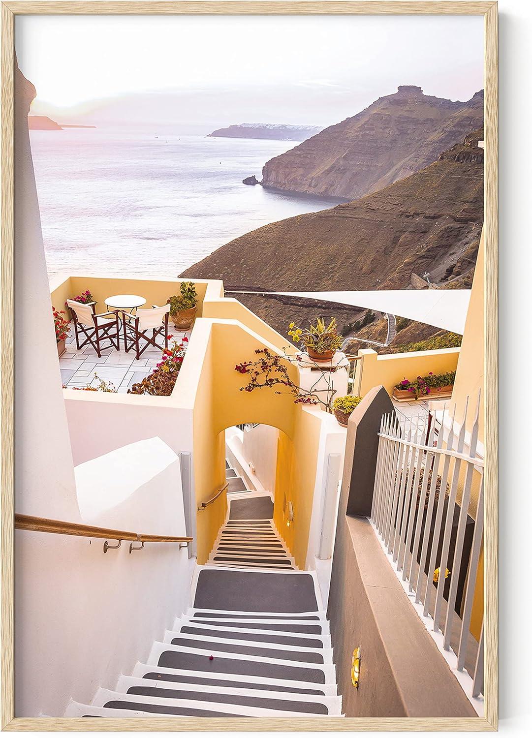 HAUS AND HUES Flamingo Wall Art – Tropical Flamingo Poster, Coastal Beach Print, Peach Pink Art for Bathroom or Bedroom (Unframed 24x36)(Santorini)