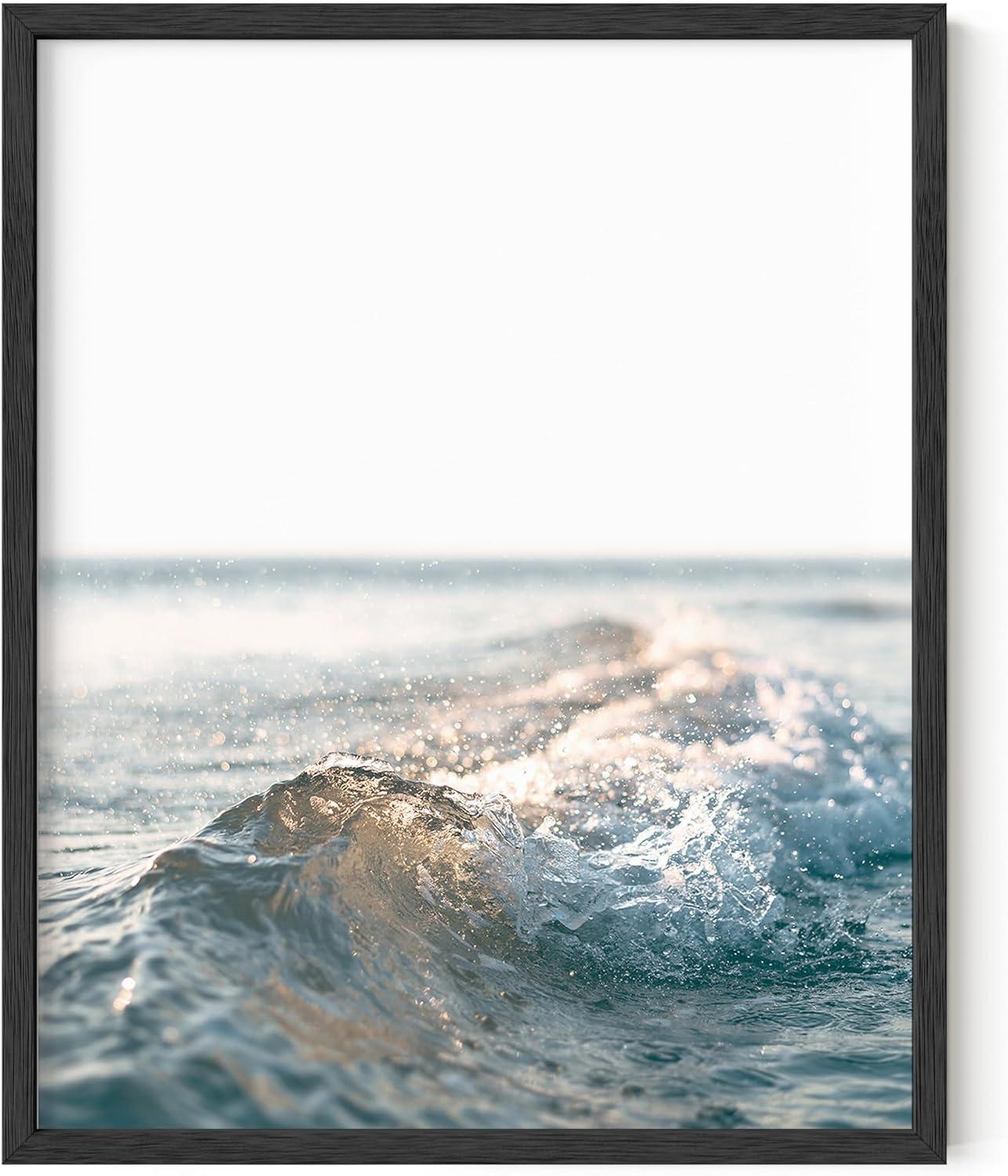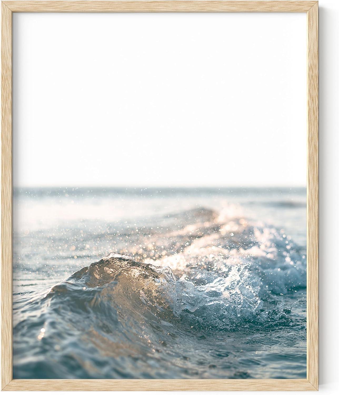 HAUS AND HUES Flamingo Wall Art – Tropical Flamingo Poster, Coastal Beach Print, Peach Pink Art for Bathroom or Bedroom (Unframed 24×36)(Waves)