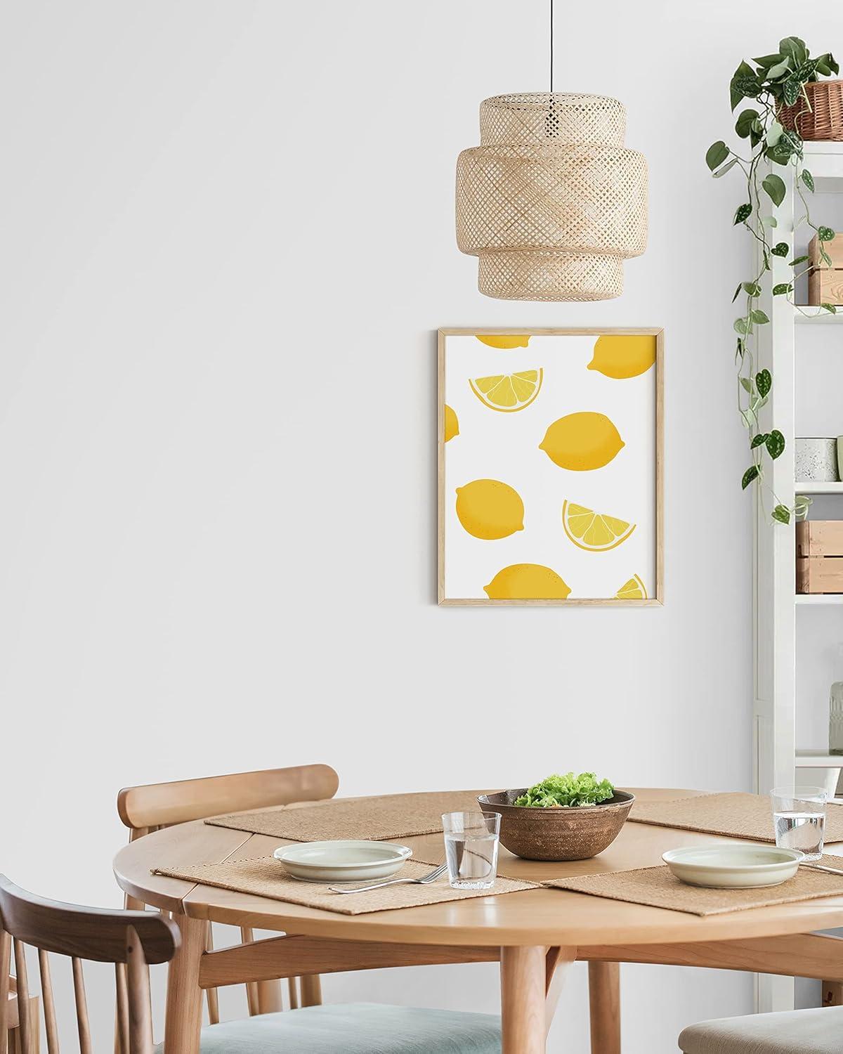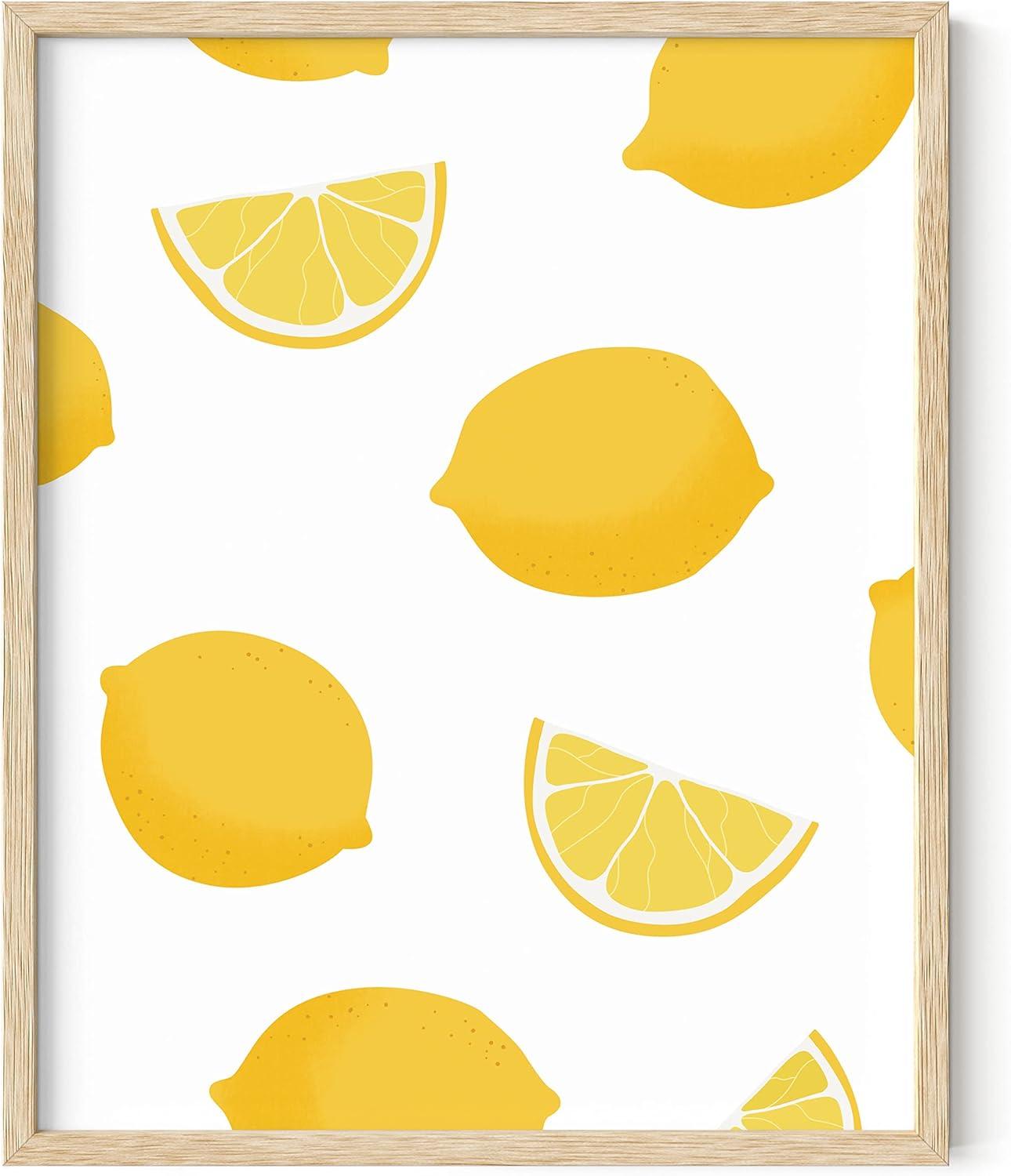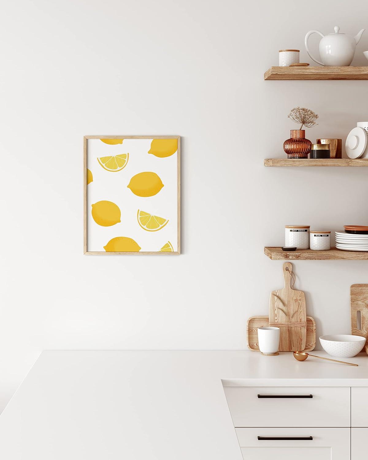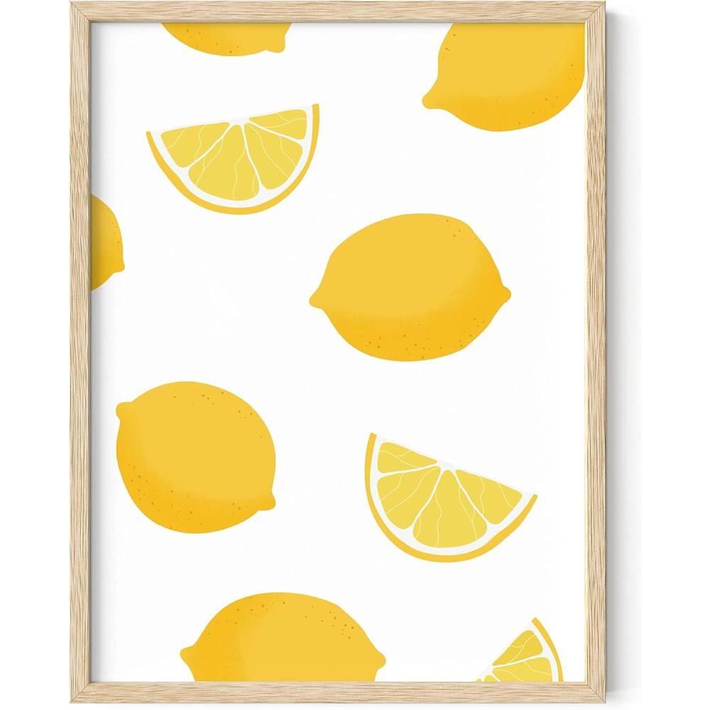 imageHAUS AND HUES Fruit Art Fruit Picture Wall Art  Kitchen Wall Decor Peach Art Peach Bathroom Decor Prints Wall Art for Kitchen Beige Frame 12x16Lemon