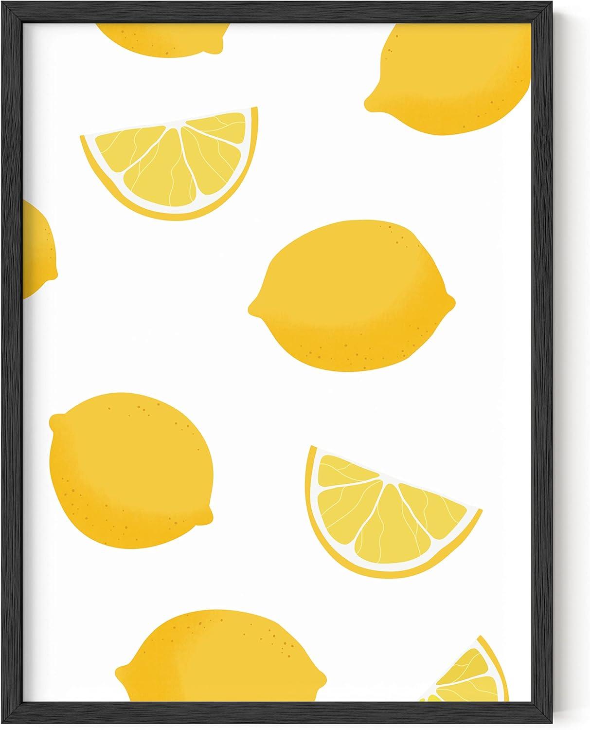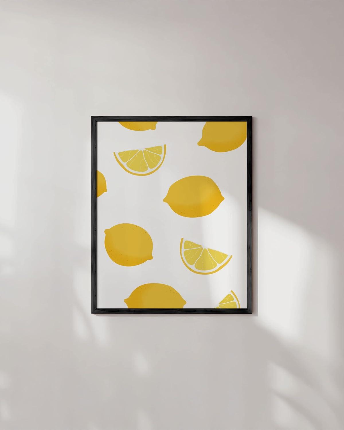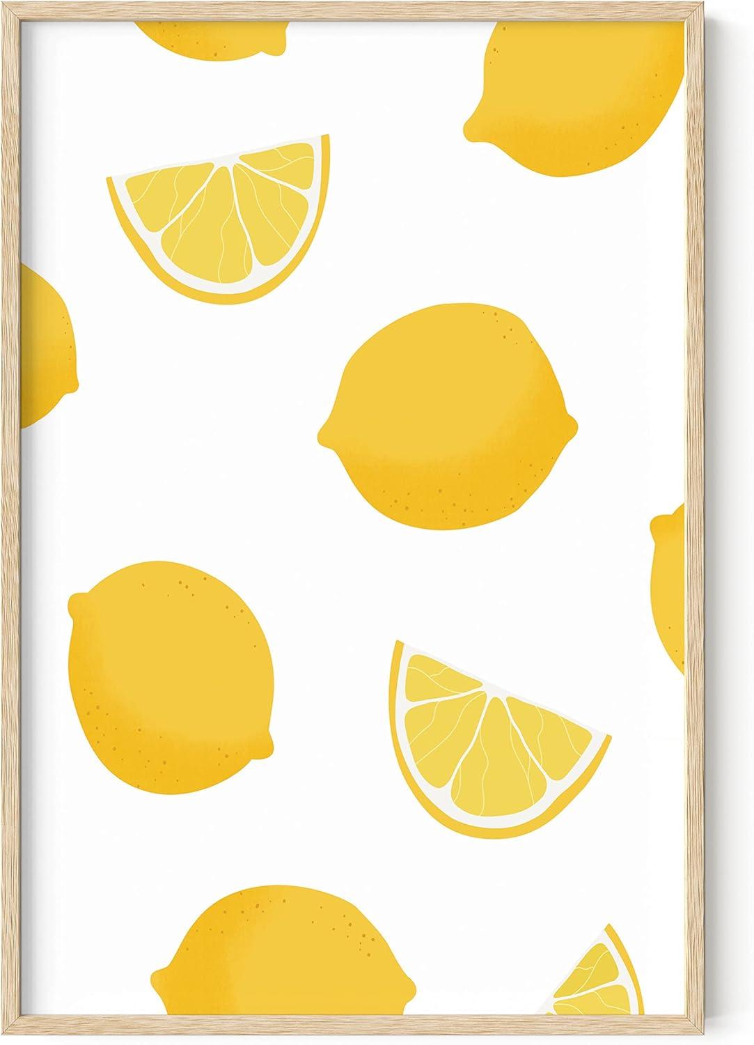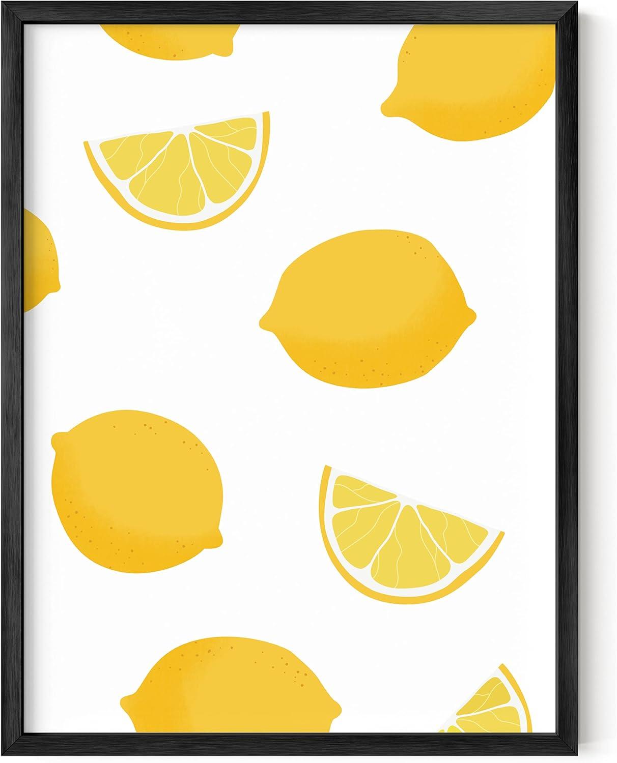 imageHAUS AND HUES Fruit Art Fruit Picture Wall Art  Kitchen Wall Decor Peach Art Peach Bathroom Decor Prints Wall Art for Kitchen Beige Frame 12x16Lemon