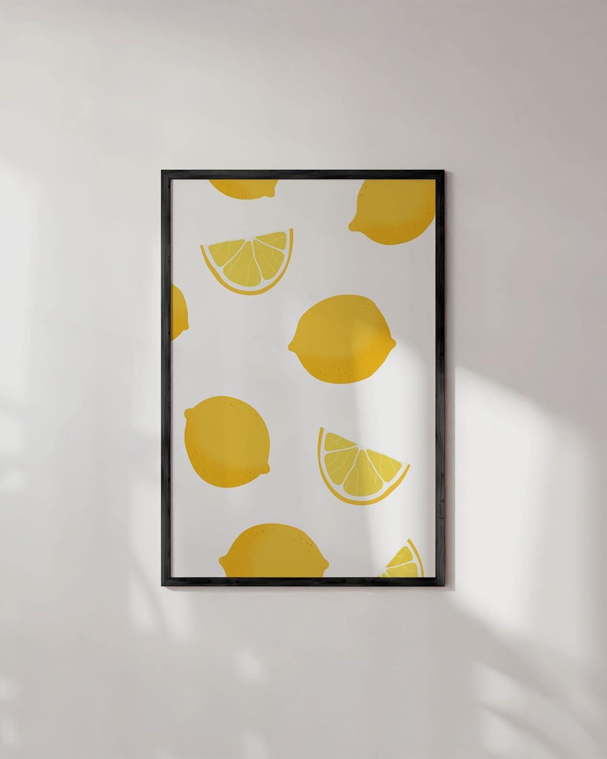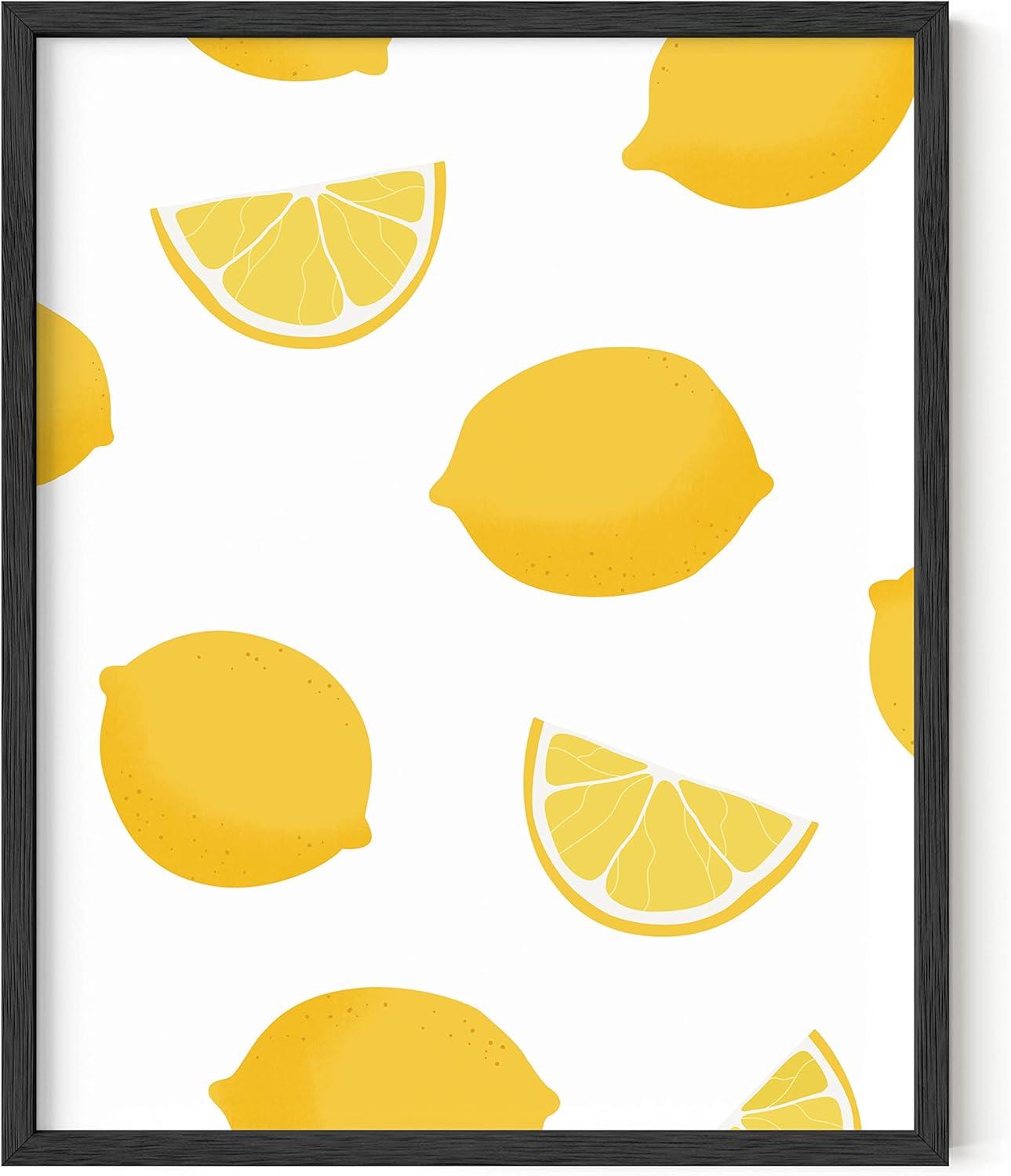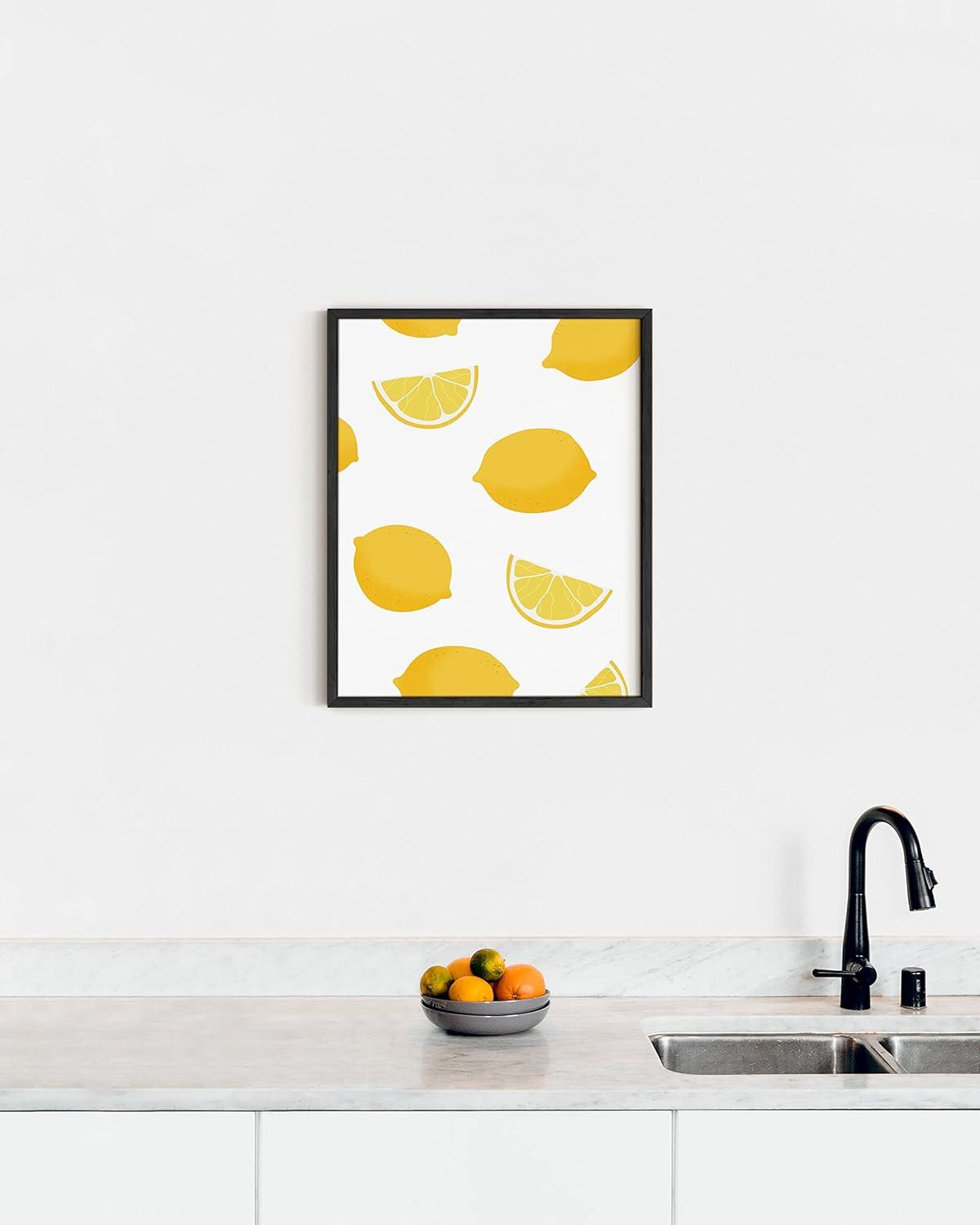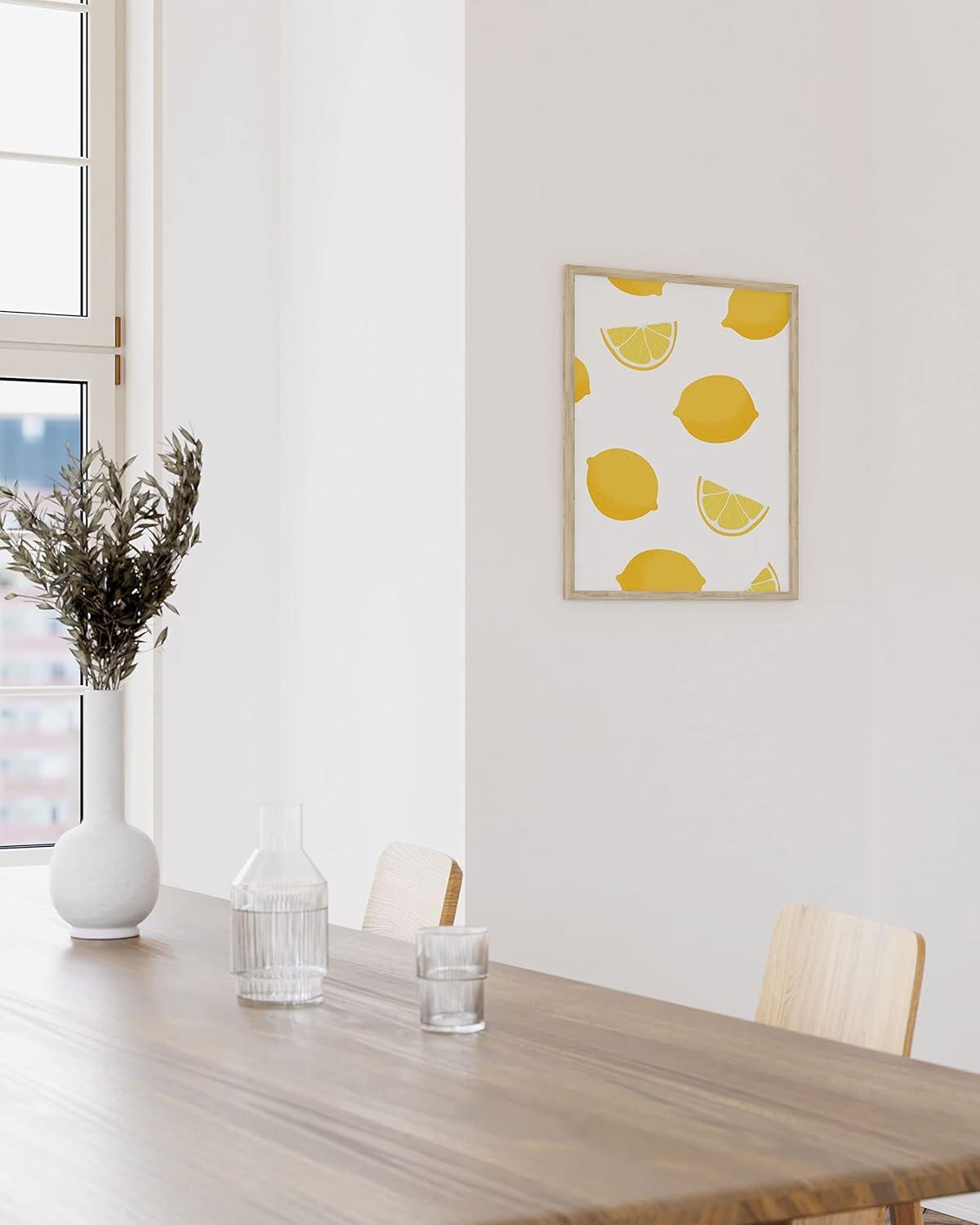 imageHAUS AND HUES Fruit Art Fruit Picture Wall Art  Kitchen Wall Decor Peach Art Peach Bathroom Decor Prints Wall Art for Kitchen Beige Frame 12x16Lemon