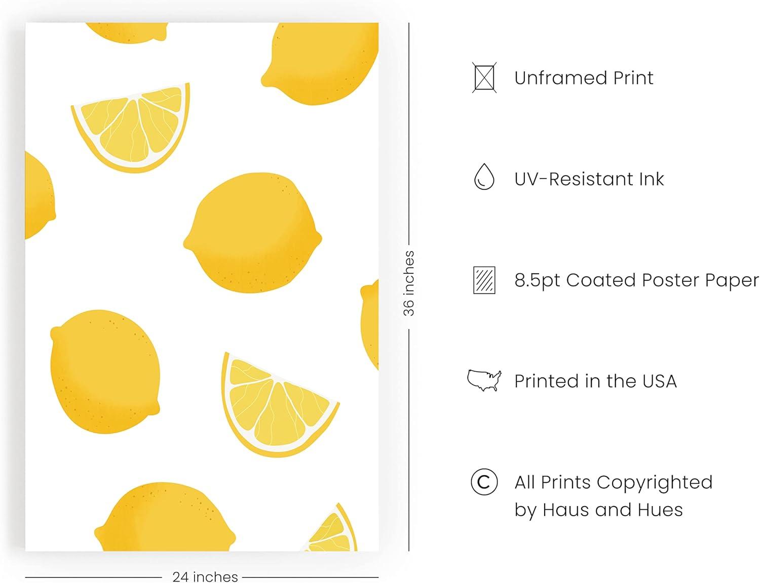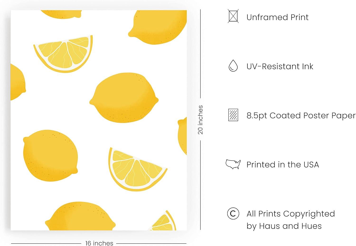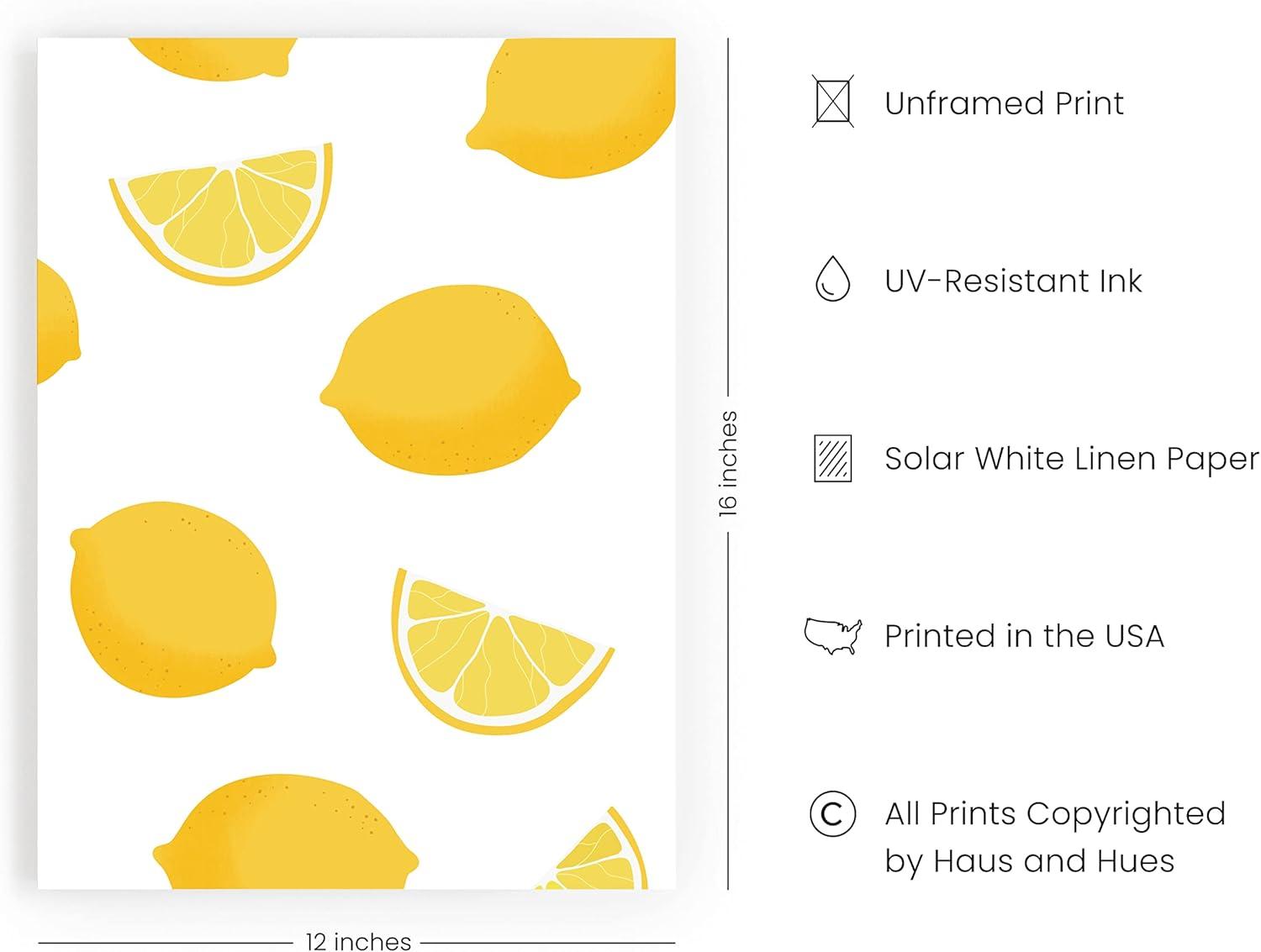 HAUS AND HUES Fruit Art Fruit Picture Wall Art - Kitchen Wall Decor, Peach Art, Peach Bathroom Decor Prints Wall Art for Kitchen (Beige Frame, 12x16)(Lemon)