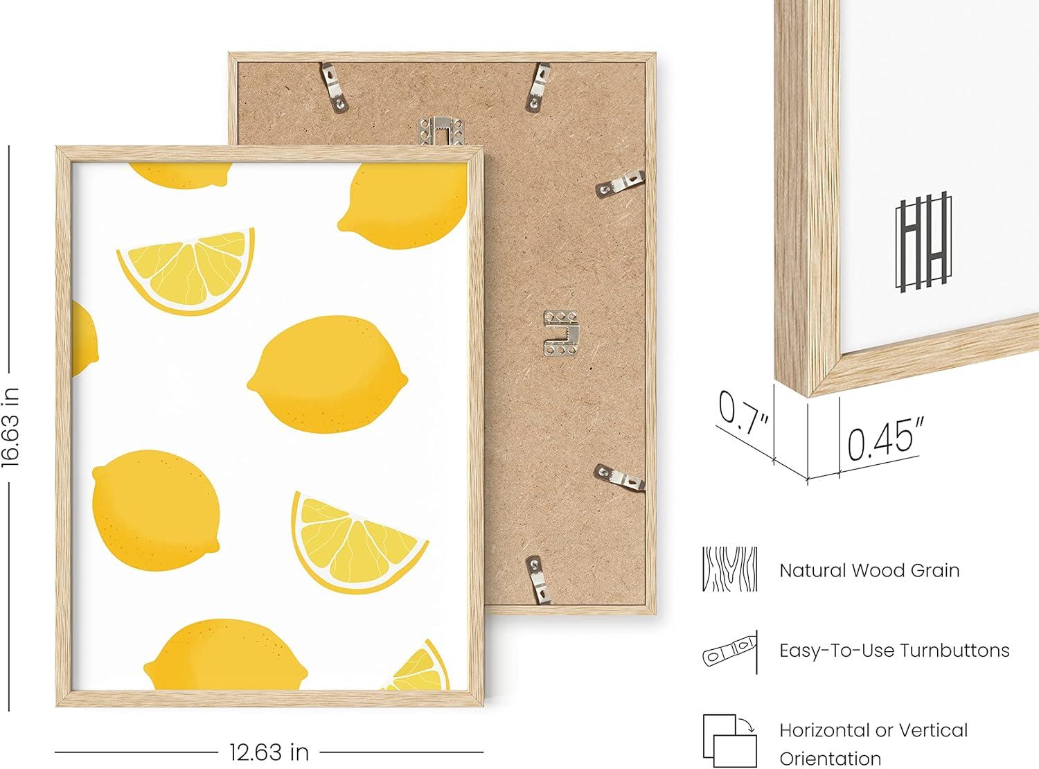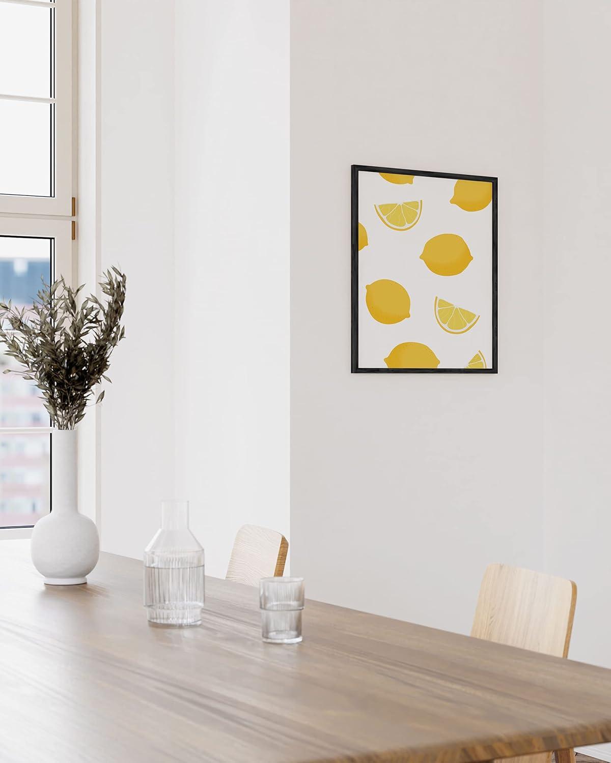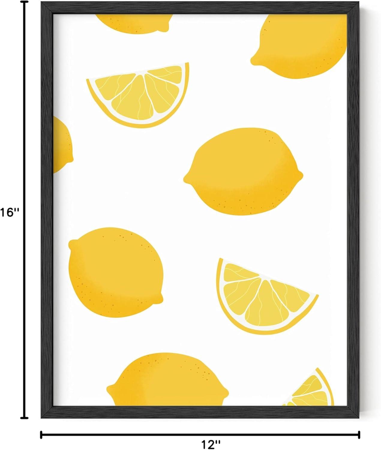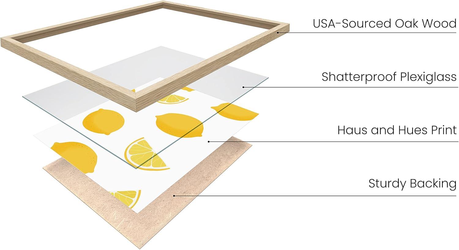 HAUS AND HUES Fruit Art Fruit Picture Wall Art - Kitchen Wall Decor, Peach Art, Peach Bathroom Decor Prints Wall Art for Kitchen (Beige Frame, 12x16)(Lemon)