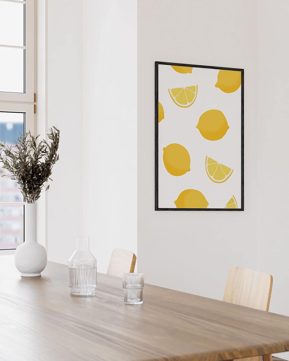 HAUS AND HUES Fruit Art Fruit Picture Wall Art – Kitchen Wall Decor, Peach Art, Peach Bathroom Decor Prints Wall Art for Kitchen (Beige Frame, 12×16)(Lemon)
