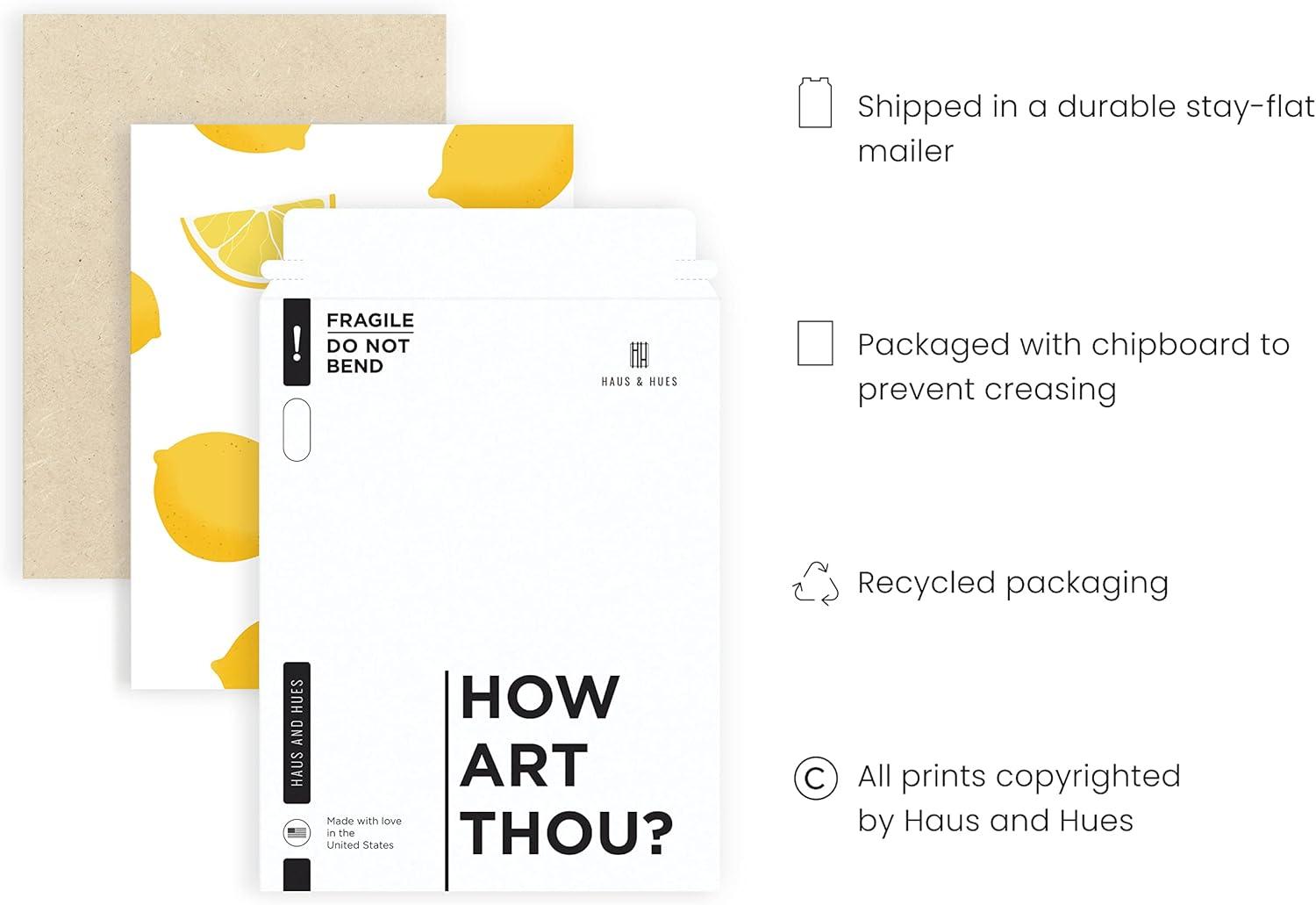 TOP NOTCH QUALITY & PACKAGING: Haus & Hues supports the art community worldwide. We only use Giclée printing which is far superior to all other printing forms because it holds its colors longer than any standard prints. Each art print is printed on acid and fade-resistant fine archival linen paper. Our botanical fruit prints are packaged with chipboard pads to protect against creases and dents and shipped in Kraft self-seal stayflat mailers to preserve your artwork while in transit