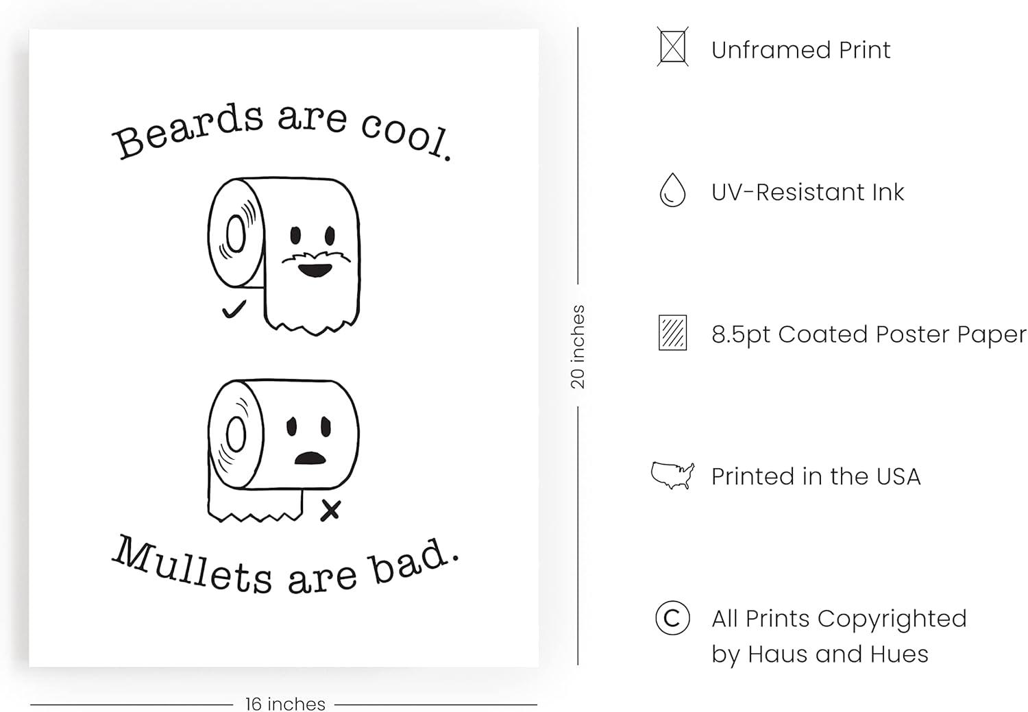 Haus and Hues Funny Bathroom Decor & Bathroom Signs, Funny Bathroom Wall Art & Bathroom Decor Signs, Funny Bathroom Signs Funny Bathroom Art Toilet Rules Bathroom Rules Individual (Unframed 24x36)(Beard/Mullet)