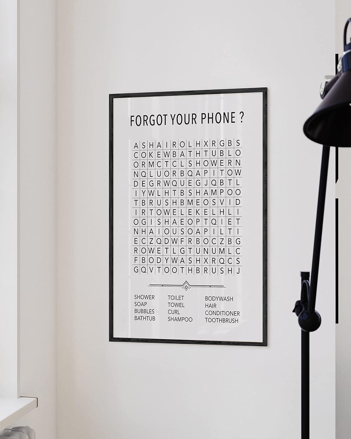 HAUS AND HUES Funny Bathroom Signs for Home Decor - Funny Bathroom Decor, Funny Bathroom Wall Art, Bathroom Art, Funny Bathroom Decor, Funny Art, Bathroom Eye Exam (Black Frame, 12x16)(Word Search)