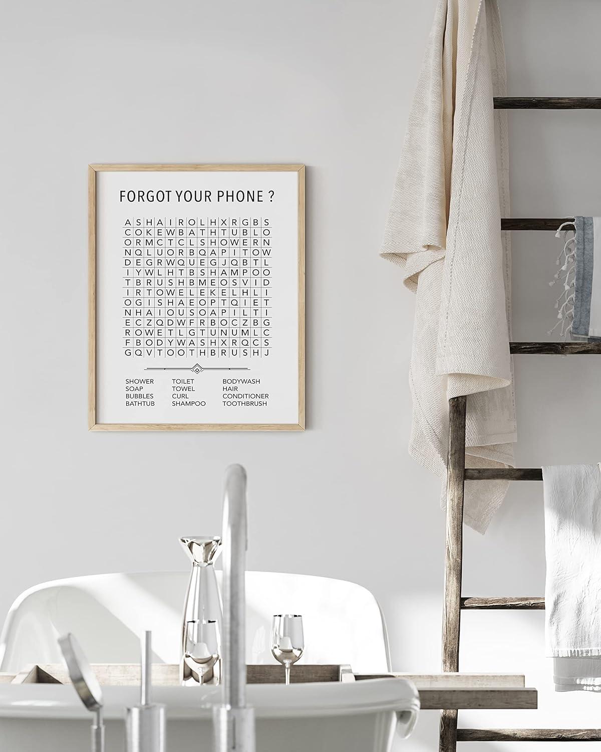 PREMIUM QUALITY: To achieve the quality we’re known for, we use a giclée printing technique on 270 GSM solar white linen paper. The paper we use for toilet wall art is sourced in the US, and our inks are water-based and toxic-free. Our Pennsylvania oak frame adds the finishing touch to the fun posters. It’s equipped with plexiglass covered by protective film and two metal hangers for horizontal or vertical hanging. Our bath art print is shipped in a durable box for protection while in transit.
