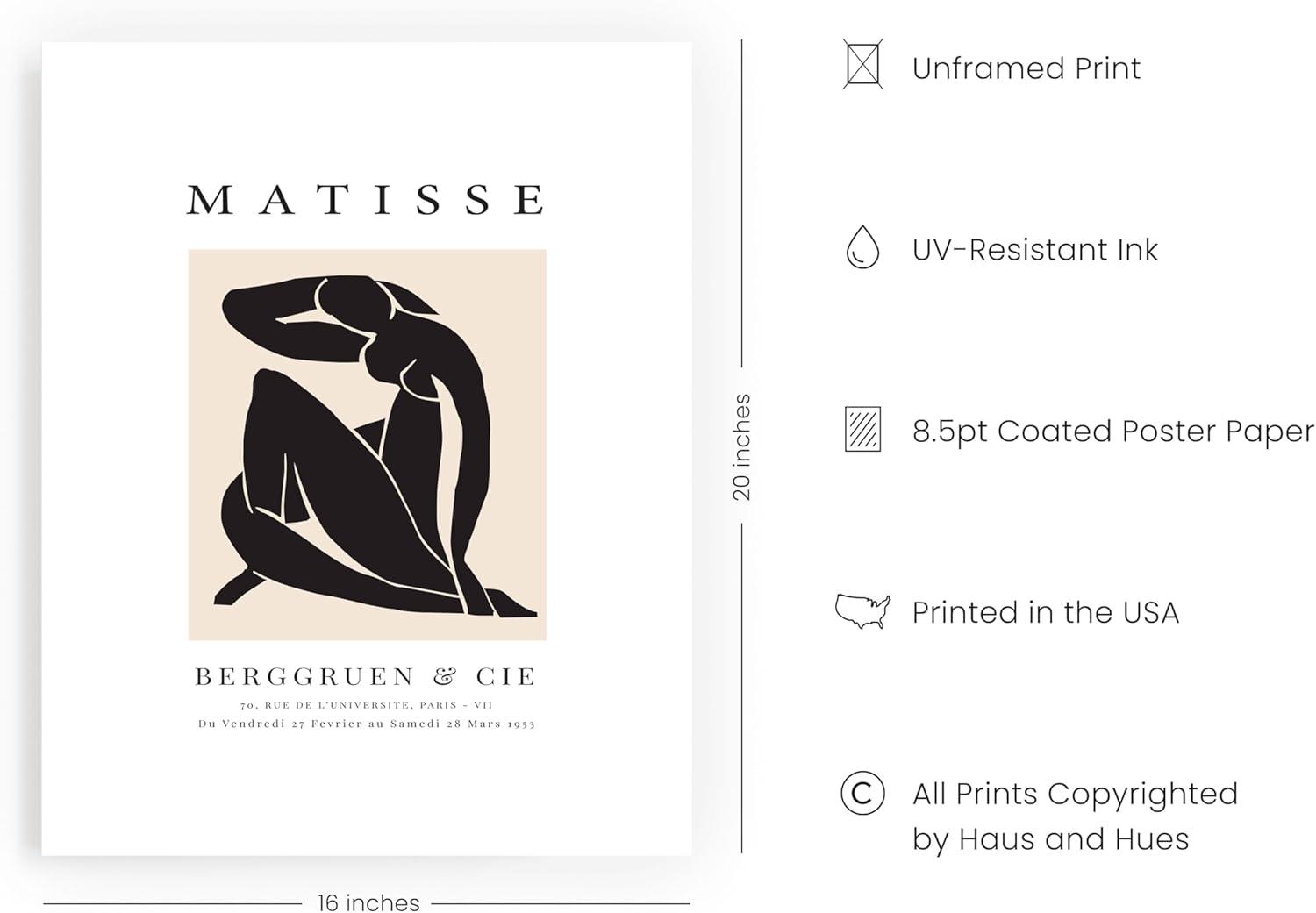 CURATE AN ART EXHIBITION WALL: Displaying an eclectic wall art print from one of the most famous artists easily sparks conversations and transforms any room into a sophisticated space. Foster creative discussions by hanging Matisse prints and boho poster on your walls. Shop our Matisse poster to create a gallery wall in your office, bedroom, or living room. Whether you're a Matisse fan or just love vintage reproductions, Haus & Hues has a wide selection of art prints that will fit your style