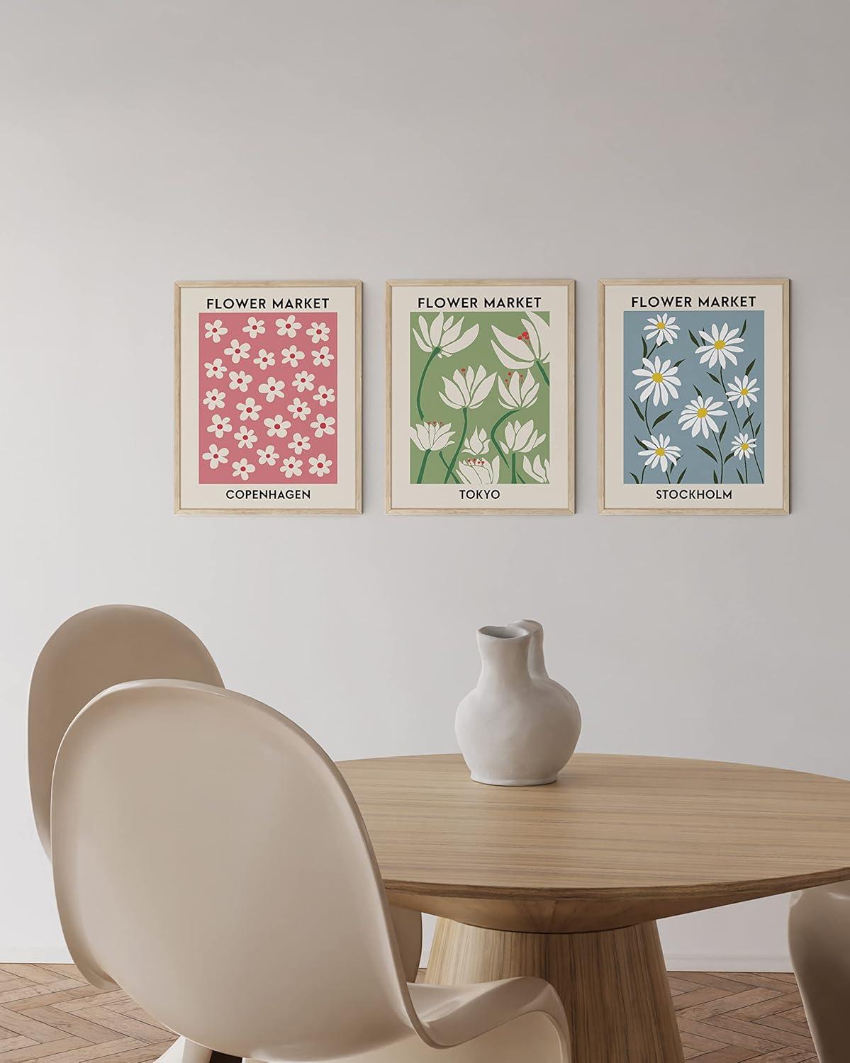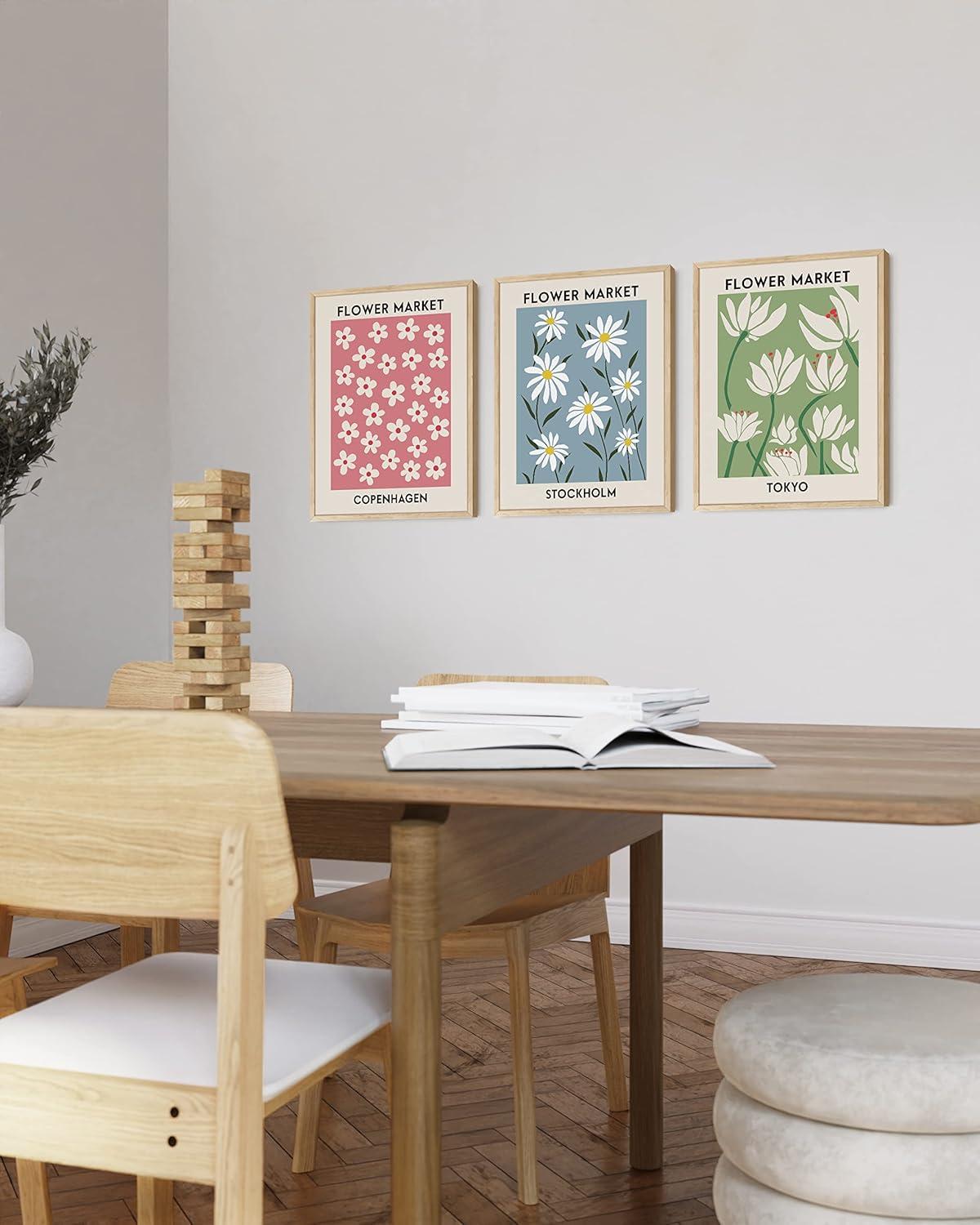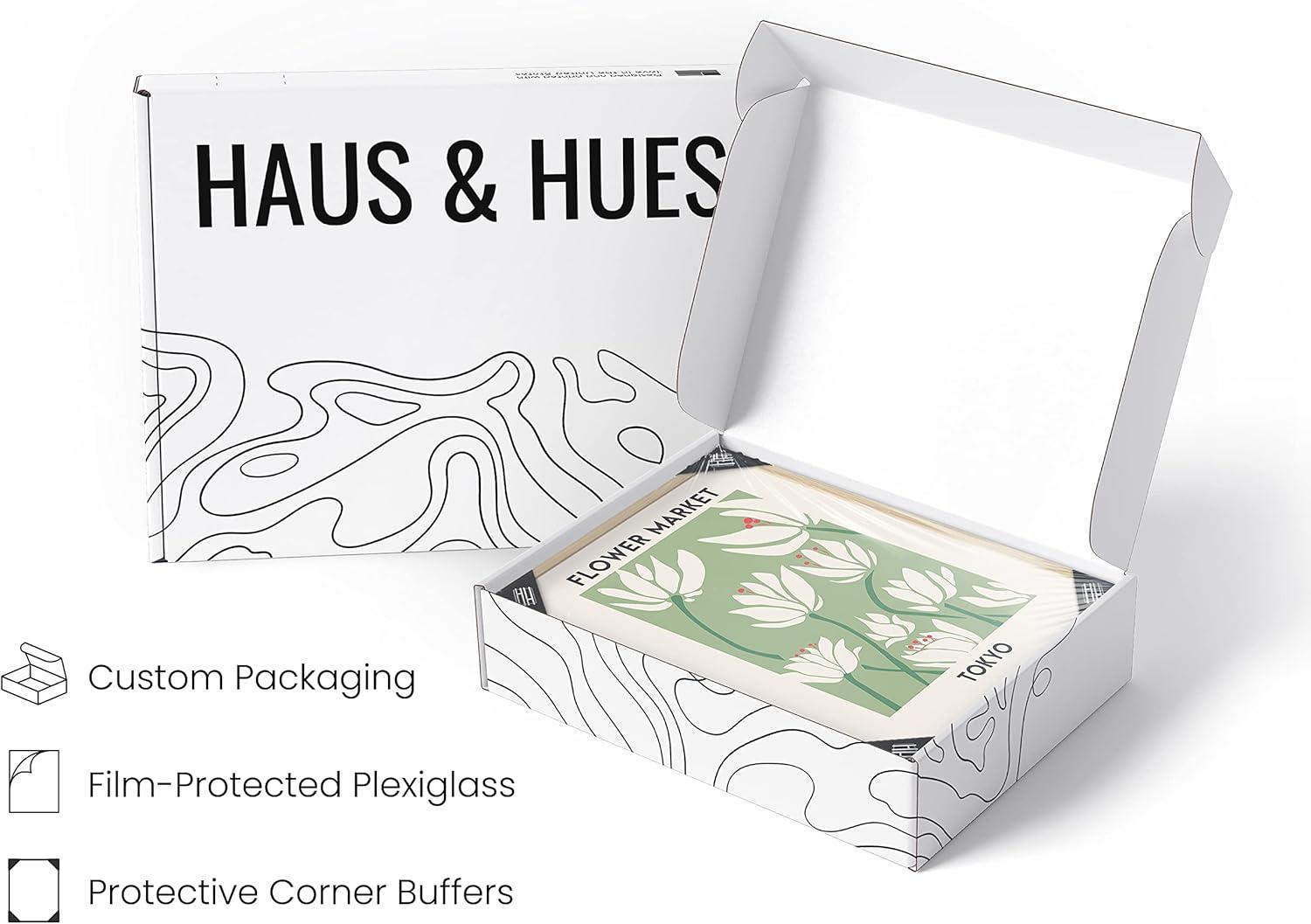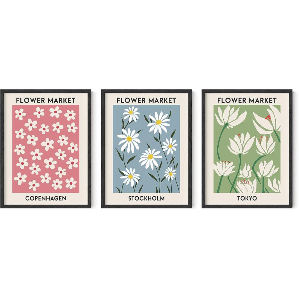 HAUS AND HUES Line Art Wall Decor - Set of 3 Minimalist Abstract Prints, Neutral Modern Wall Art for Living Room (Black Frame, 24x36)(Flower Markets)