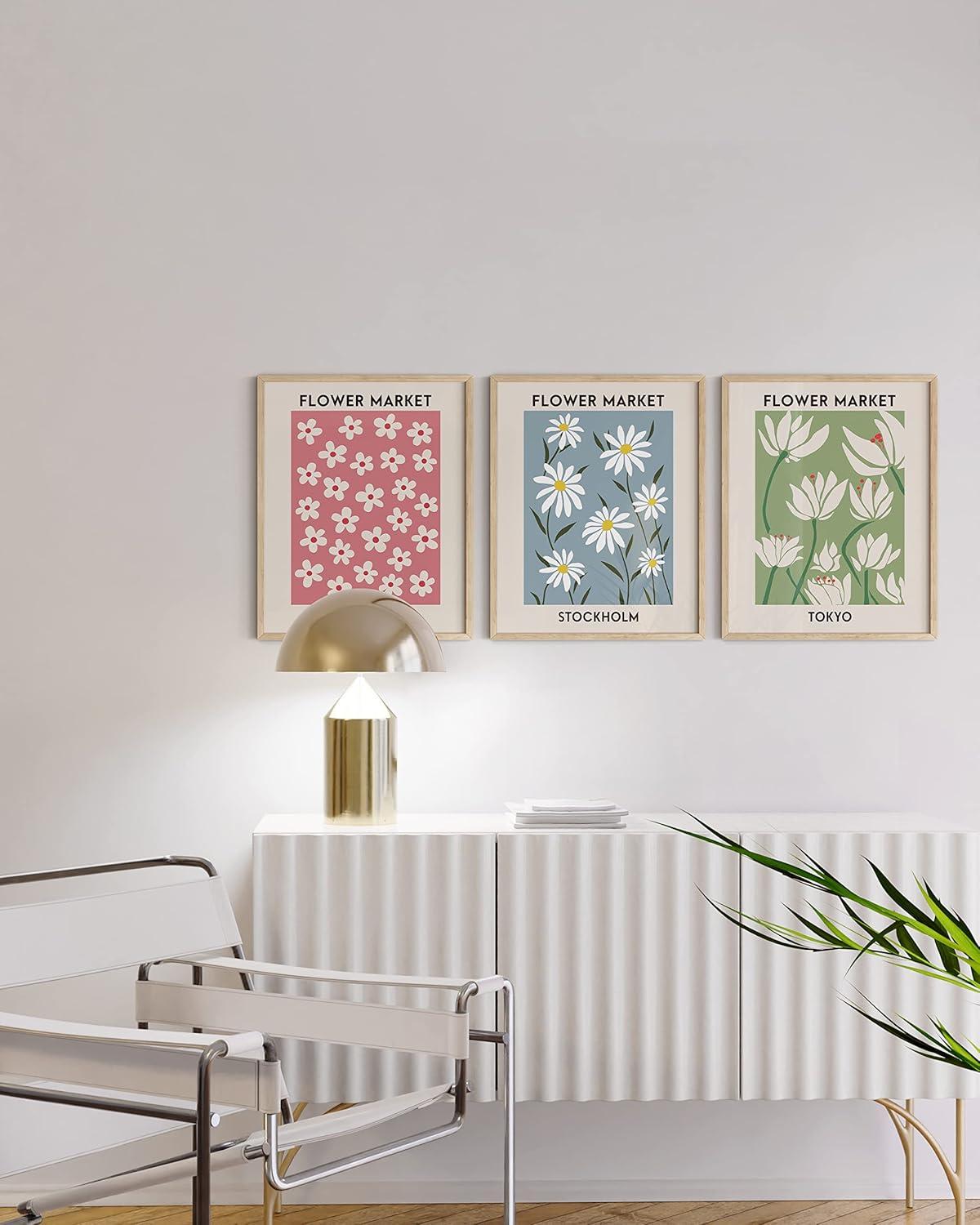 HAUS AND HUES Line Art Wall Decor – Set of 3 Minimalist Abstract Prints, Neutral Modern Wall Art for Living Room (Black Frame, 24×36)(Flower Markets)