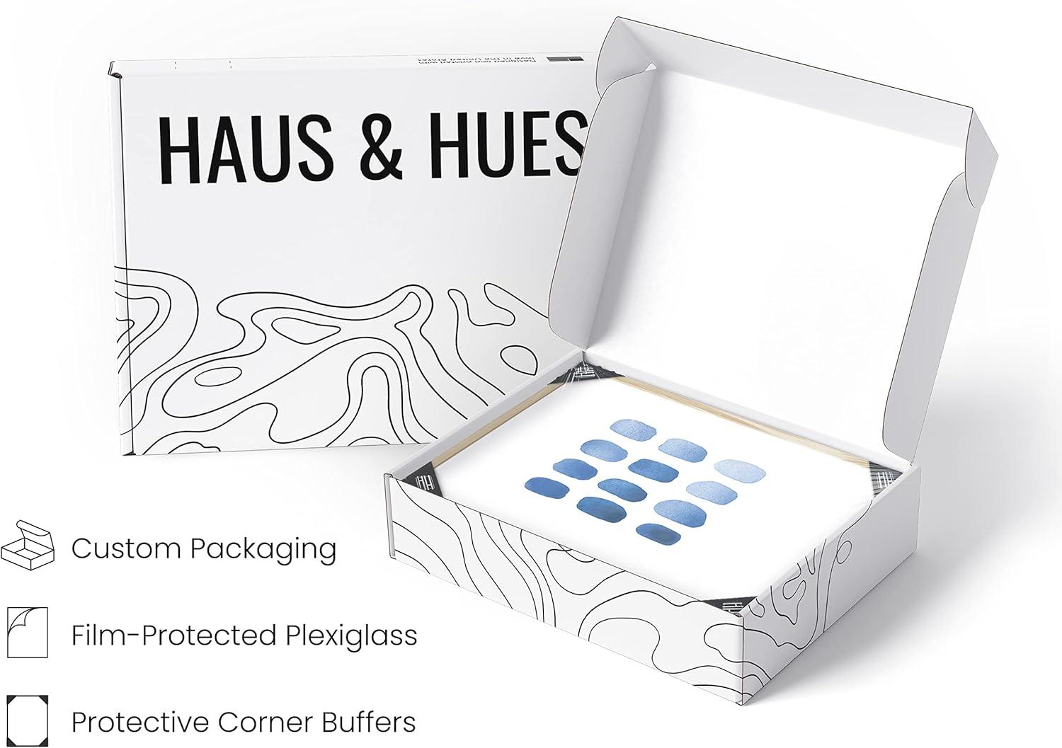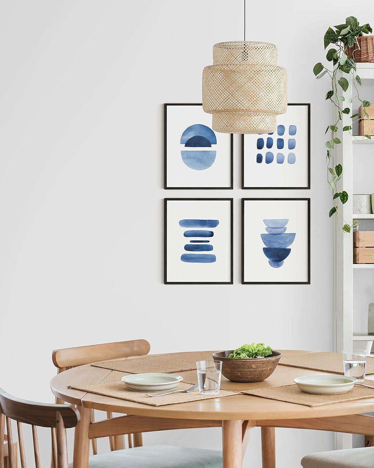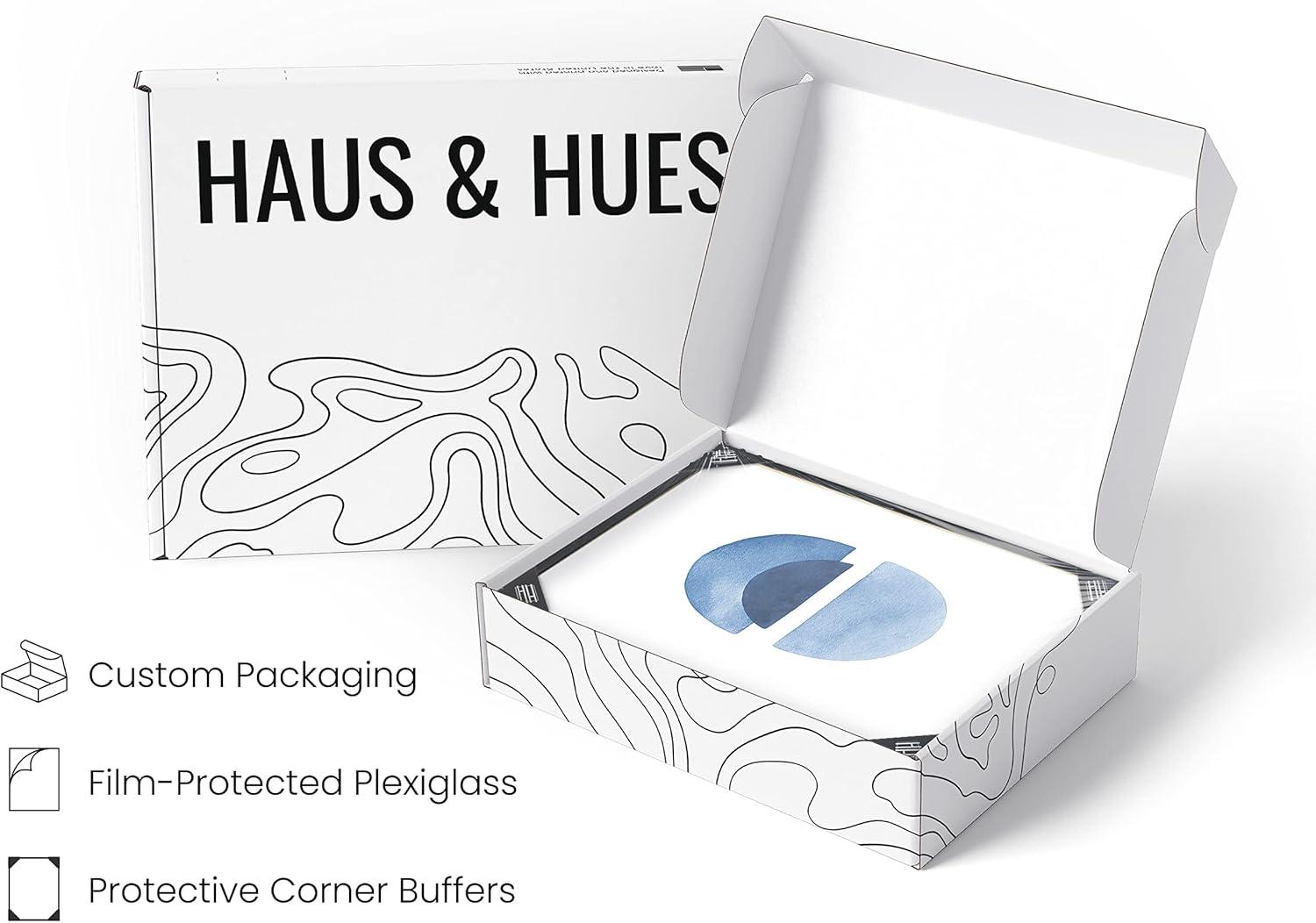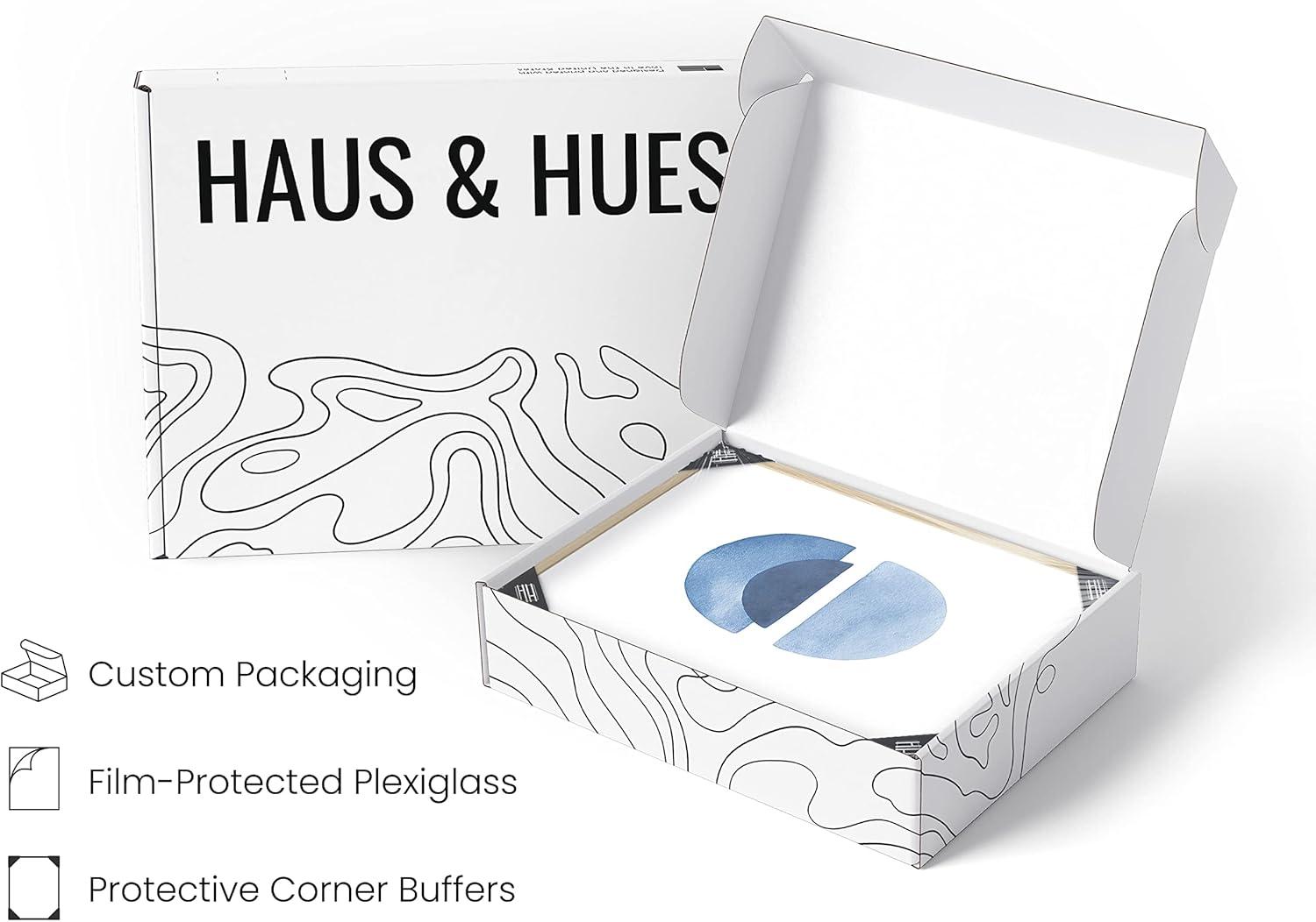 HAUS AND HUES Modern Abstract Wall Art Prints - Set of 4 - Mid Century Modern Abstract Art Prints, Abstract Posters & Prints, Abstract Geometric Design (Beige Frame, 16x20)(Abstract Blue)