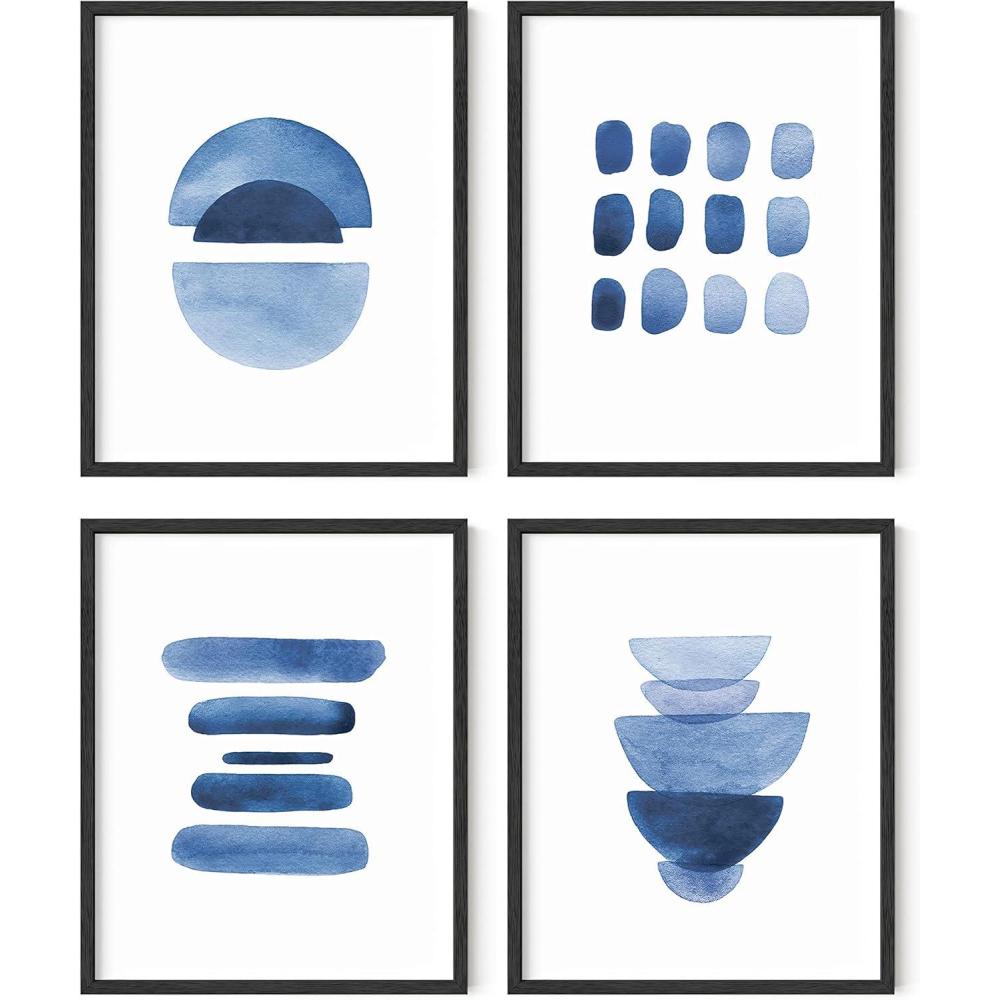 imageHAUS AND HUES Modern Abstract Wall Art Prints  Set of 4  Mid Century Modern Abstract Art Prints Abstract Posters ampamp Prints Abstract Geometric Design Beige Frame 16x20Abstract Blue
