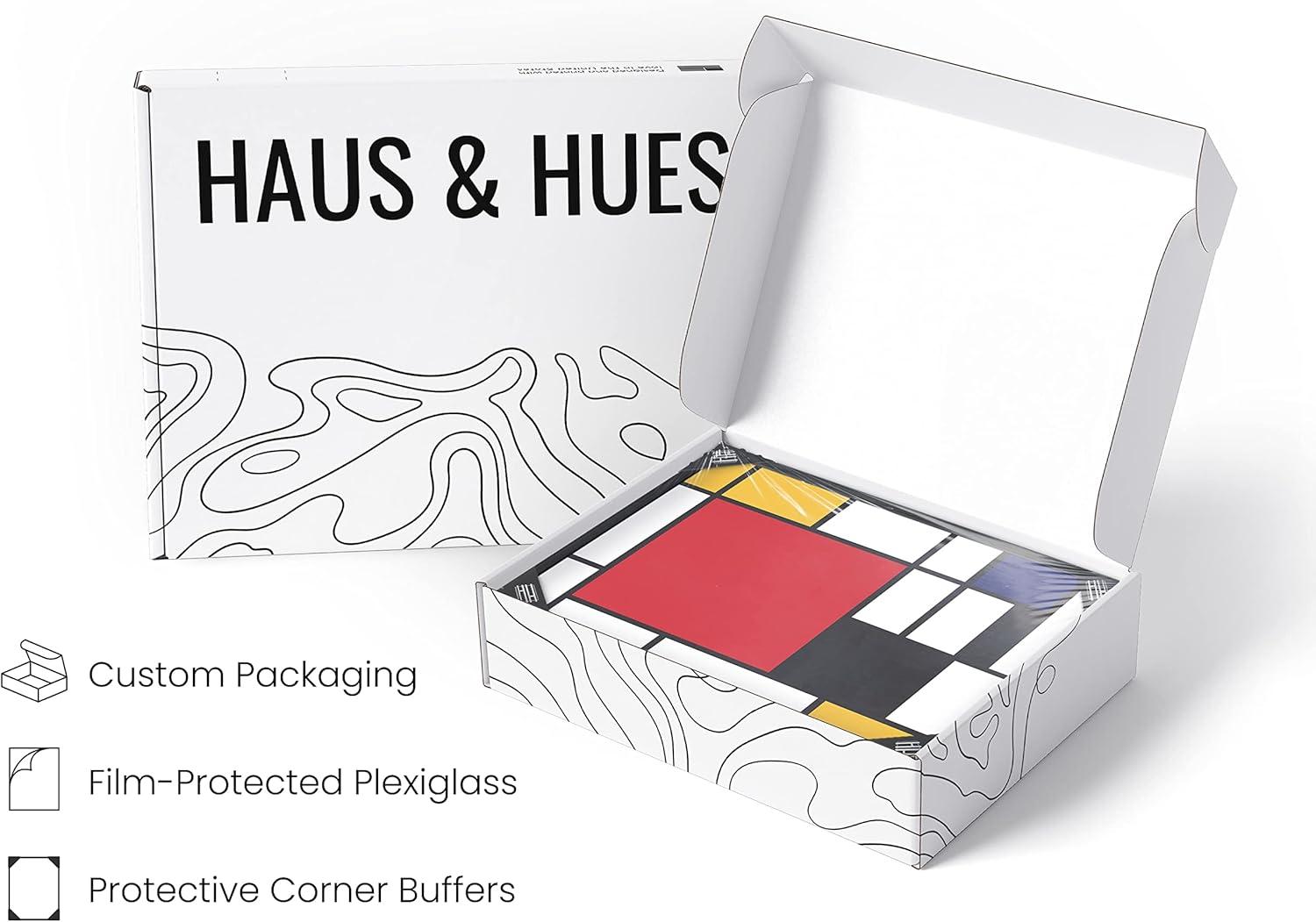 imageHAUS AND HUES Picasso Abstract Woman Wall Art  Minimalist Line Art Aesthetic Line Art Picasso Woman Face Poster for Living Room Dorm Room and Office Interiors Beige Frame 24x36Piet Mondrian
