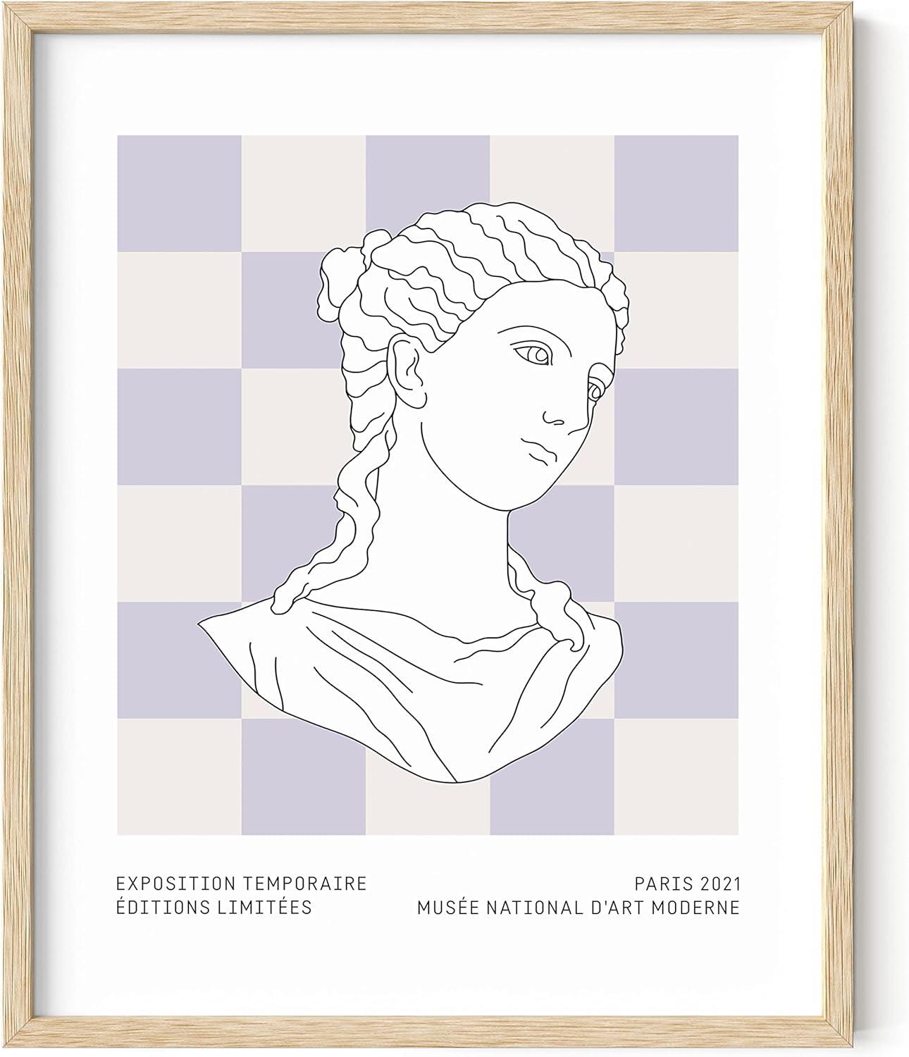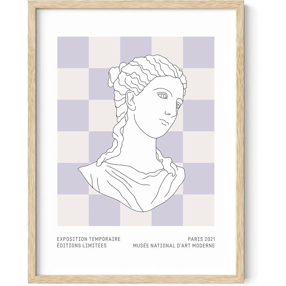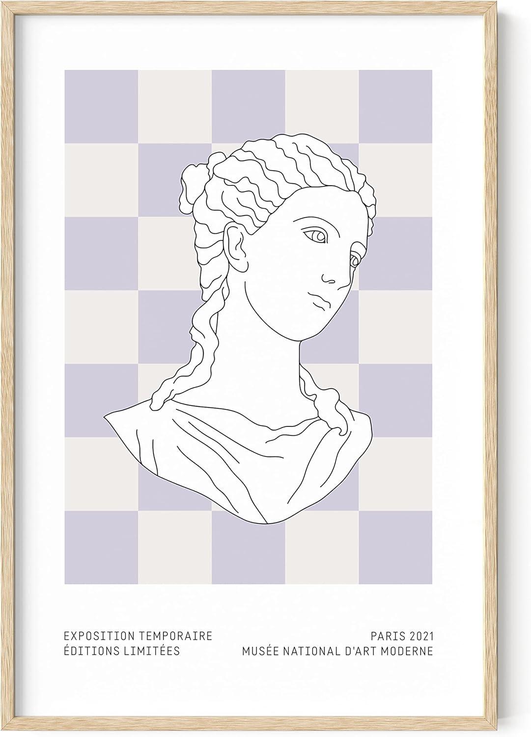 HAUS AND HUES Pink Wall Art – Danish Pastel Aesthetic Posters, Trendy Room Decor, Cute Pink Posters, Cool Wall Art (Unframed, 16×20)(Statue on Purple Checks)