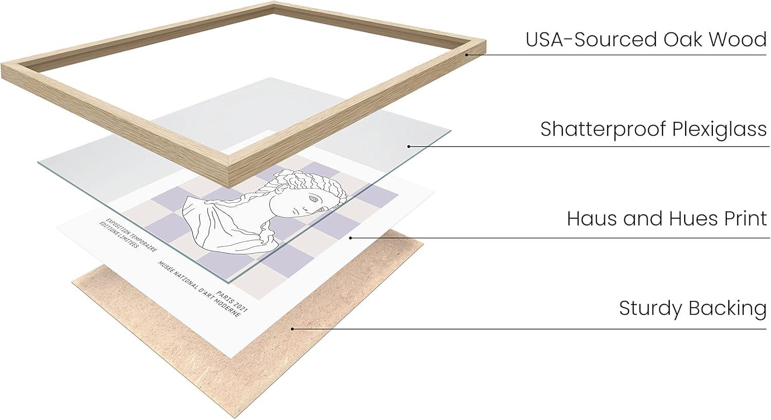 PROUDLY MADE IN USA: Our framed posters are made from American-sourced 100% natural oak wood. We use white oak wood from the Allegheny National Forest in the northeastern United States. Each frame consists of natural solid oak wood, premium plexiglass, and MDF backing. Frames can be hung vertically and horizontally with the attached hanging hardware. The wood itself has a beautiful minimal finish. With these materials combined, our danish pastel framed art is high quality and long-lasting