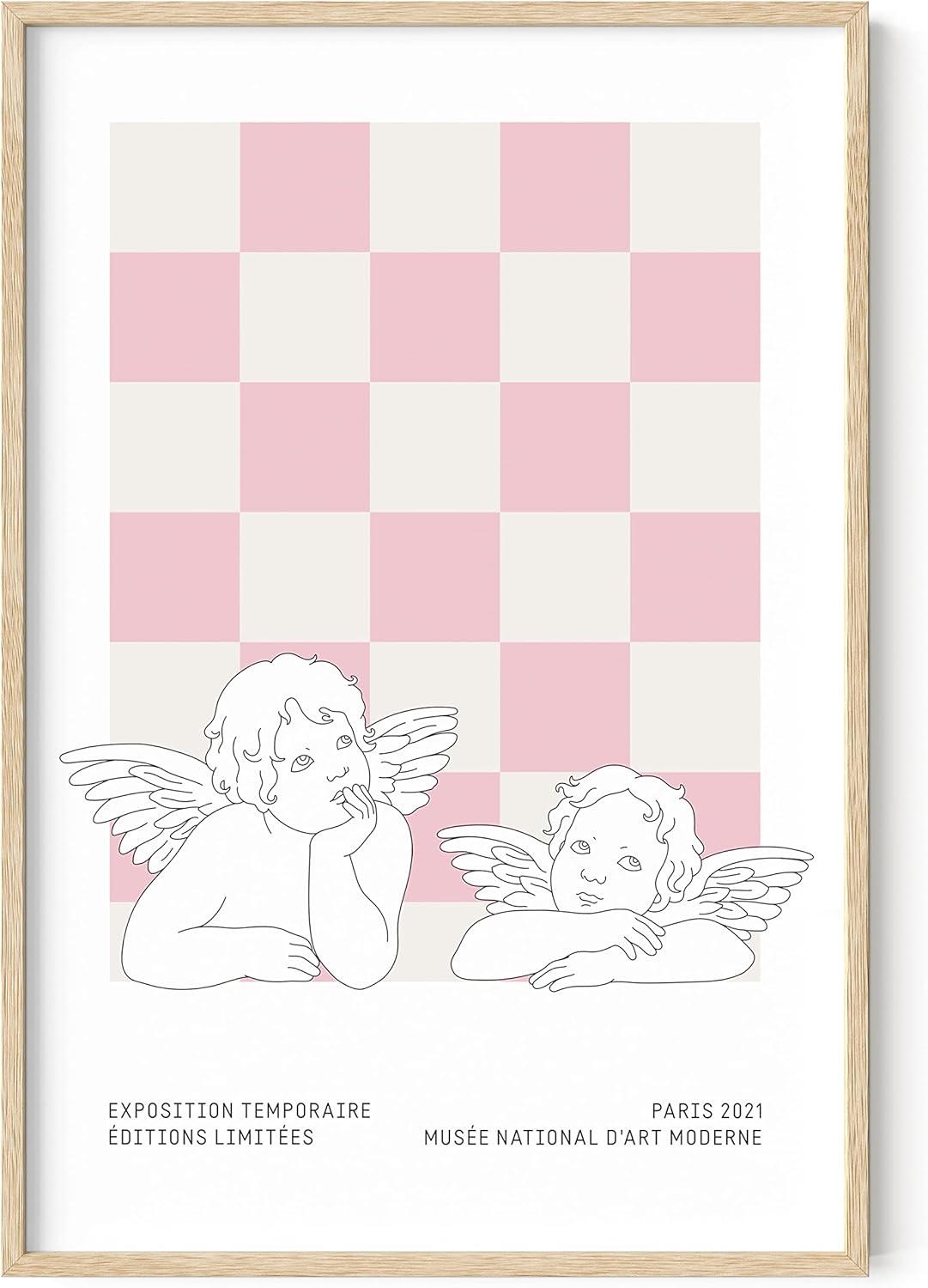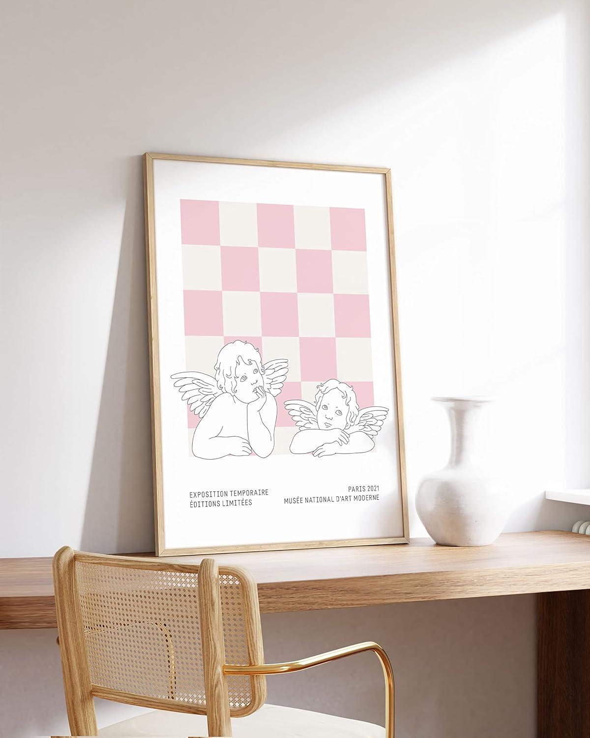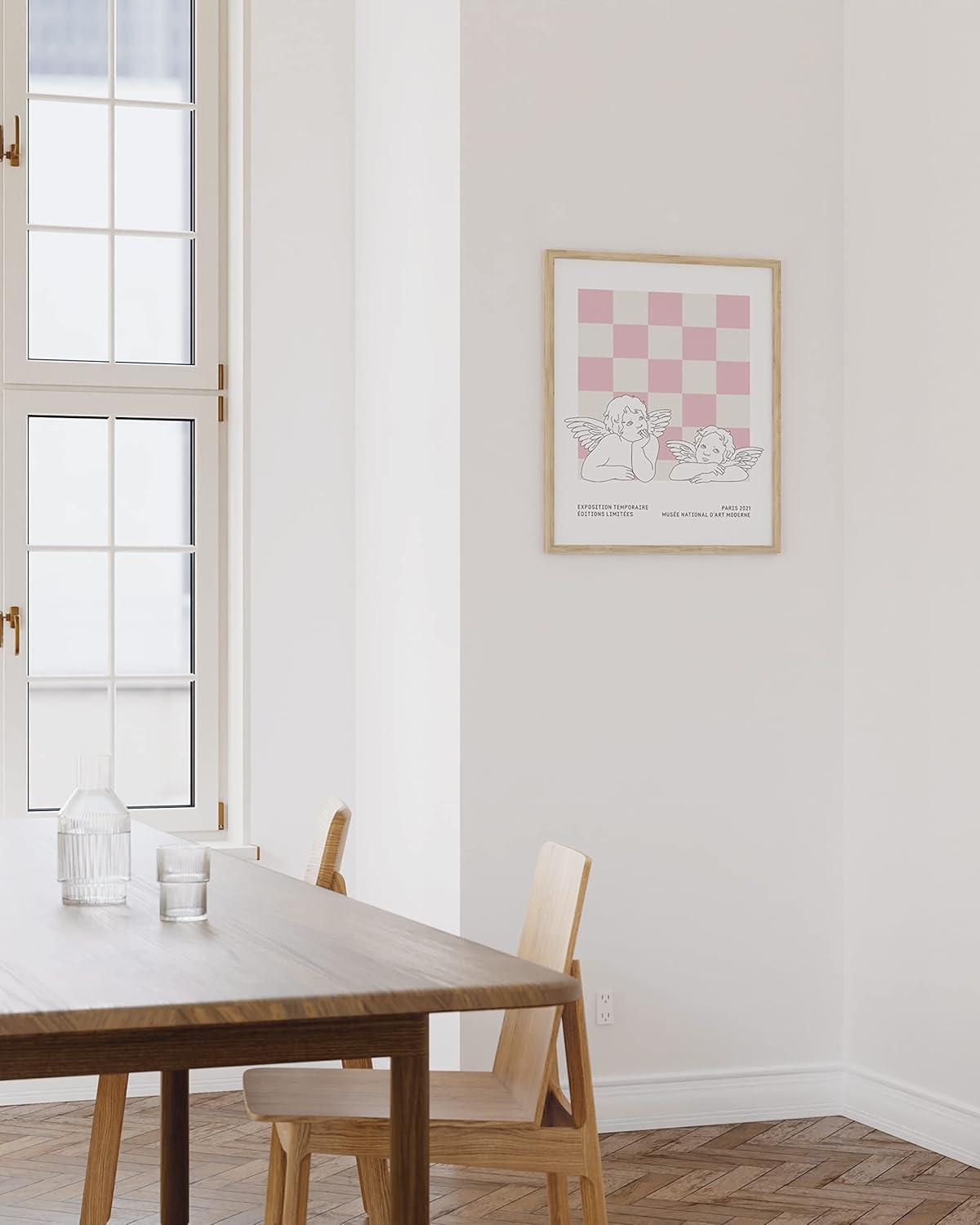 imageHAUS AND HUES Pink Wall Art  Danish Pastel Aesthetic Posters Trendy Room Decor Cute Pink Posters Cool Wall Art Unframed 16x20Statues on Pink Checks