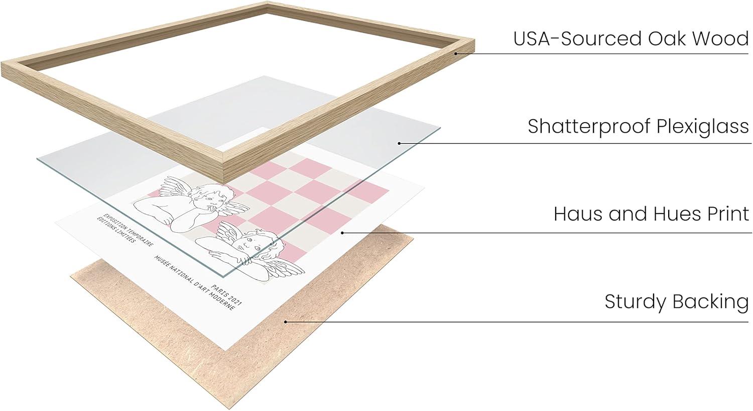 PROUDLY MADE IN USA: Our framed posters are made from American-sourced 100% natural oak wood. We use white oak wood from the Allegheny National Forest in the northeastern United States. Each frame consists of natural solid oak wood, premium plexiglass, and MDF backing. Frames can be hung vertically and horizontally with the attached hanging hardware. The wood itself has a beautiful minimal finish. With these materials combined, our danish pastel framed art is high quality and long-lasting