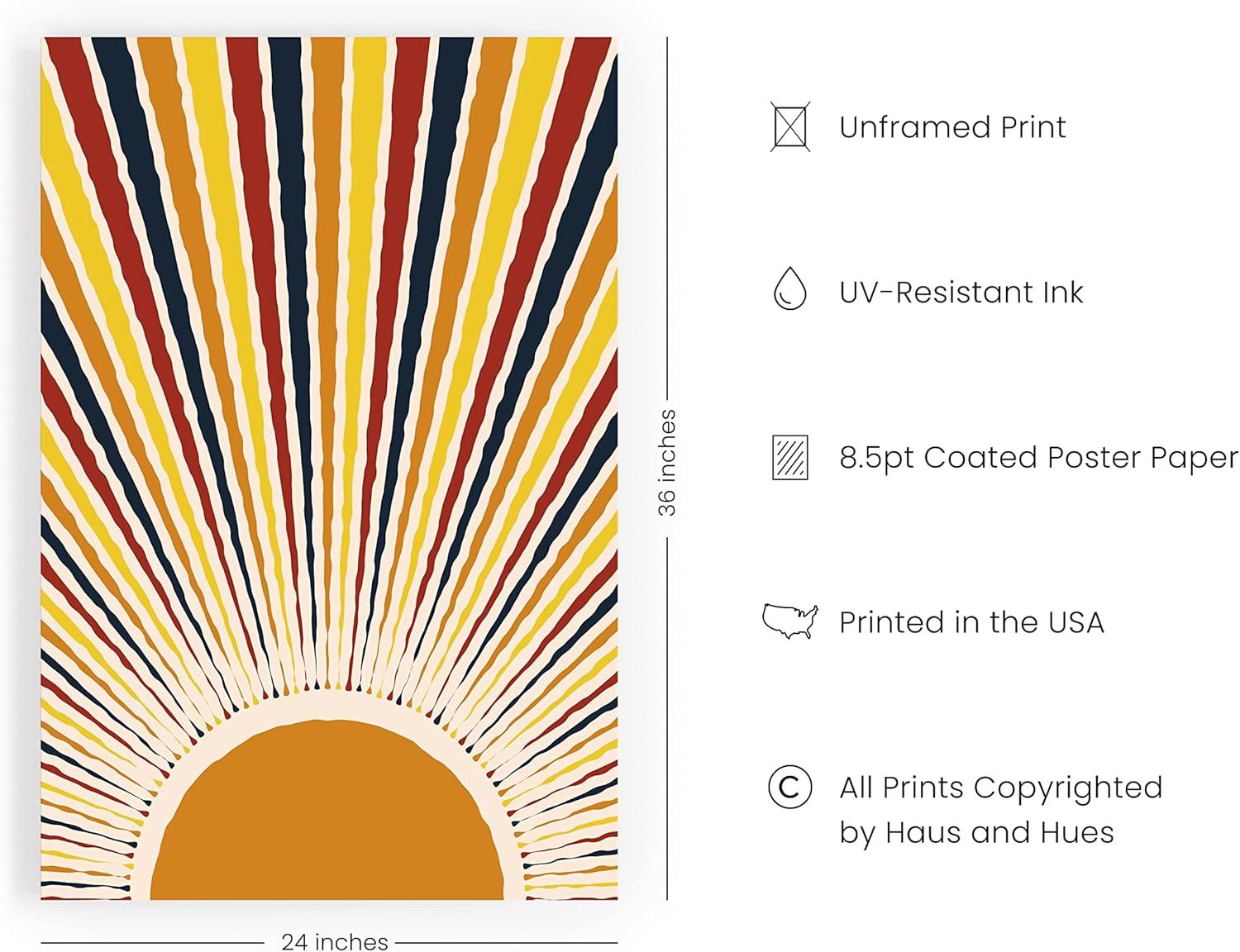 HAUS AND HUES Psychedelic Wall Art – Trippy Sun and Moon Poster, Astrology & Spiritual Wall Decor, Psychedelic Poster for Bedroom, Trippy Sun & Moon Wall Art (Unframed 16×20)(Sun Rays)