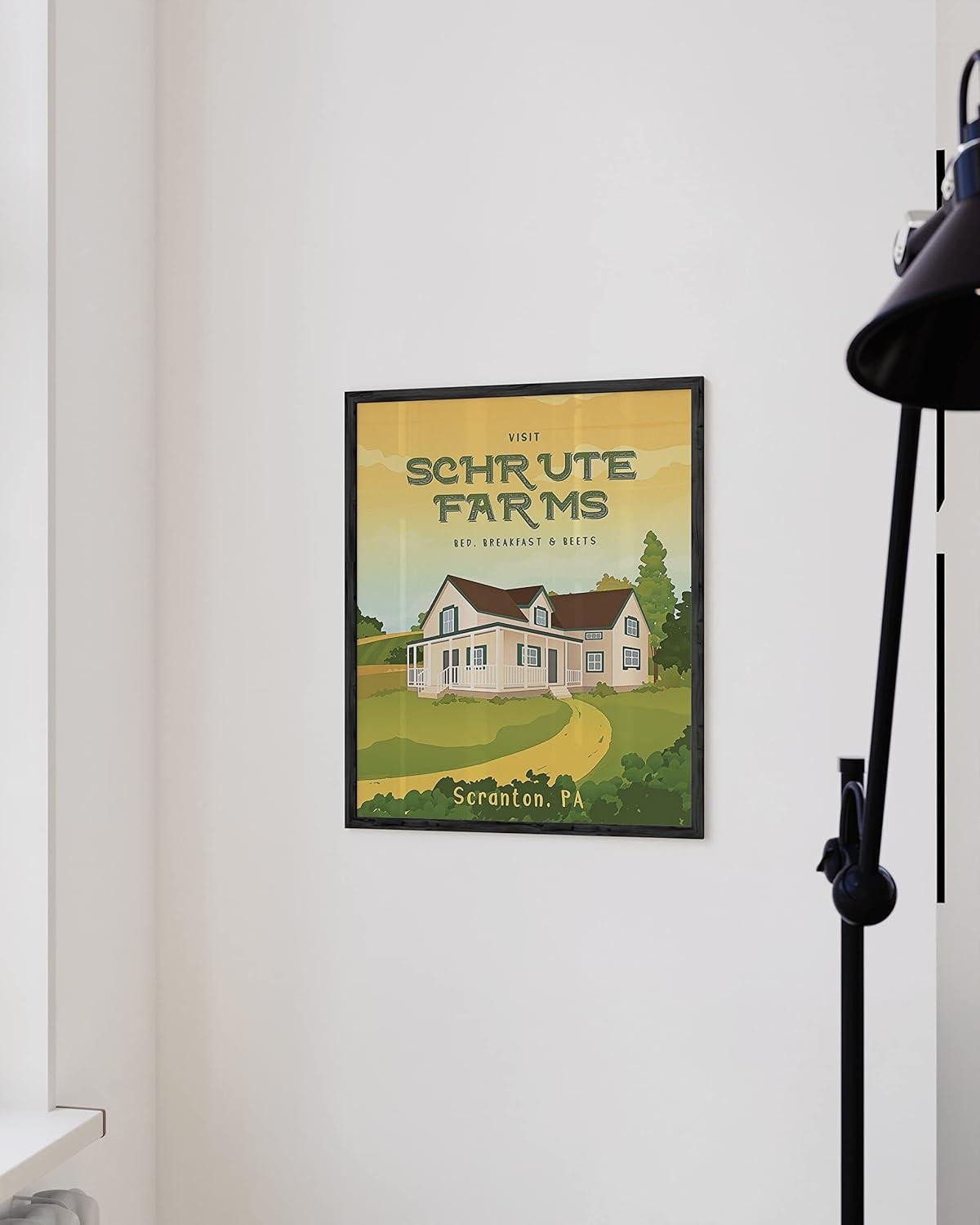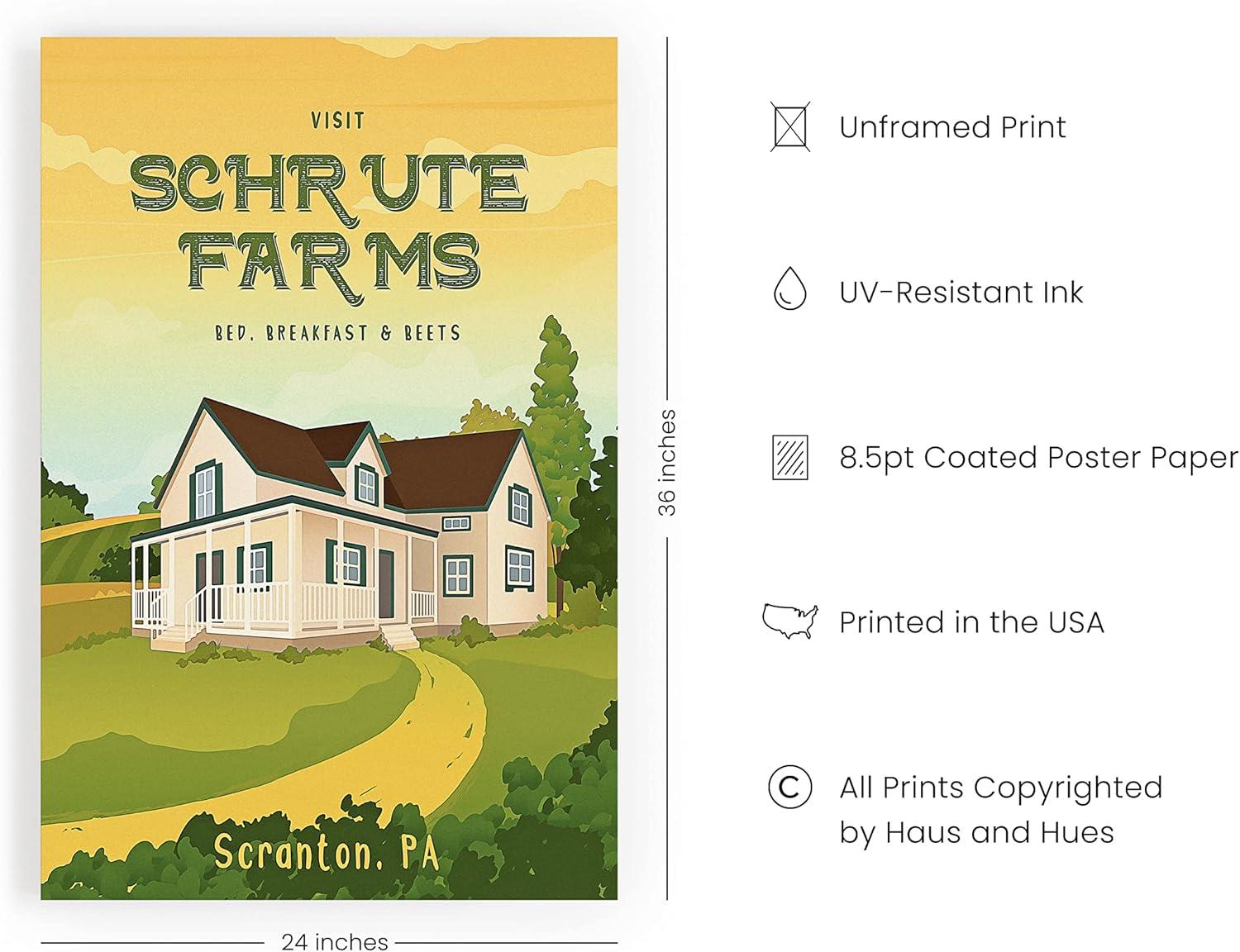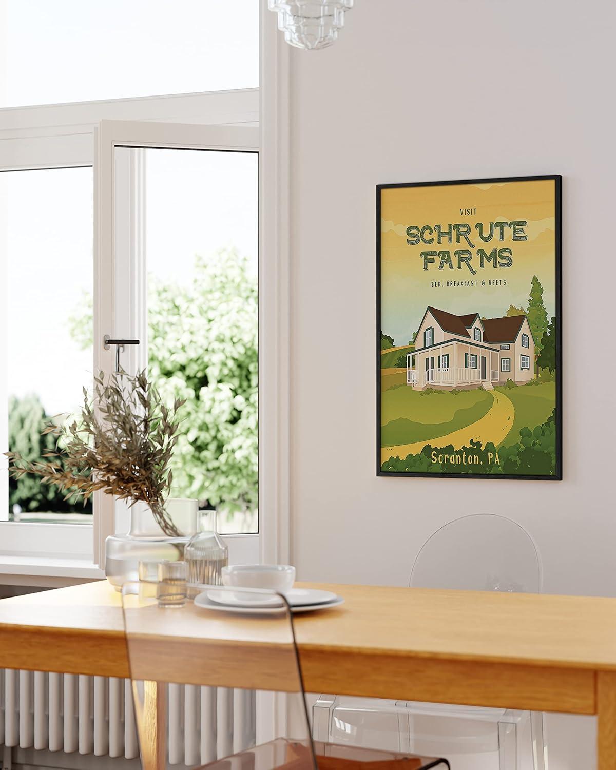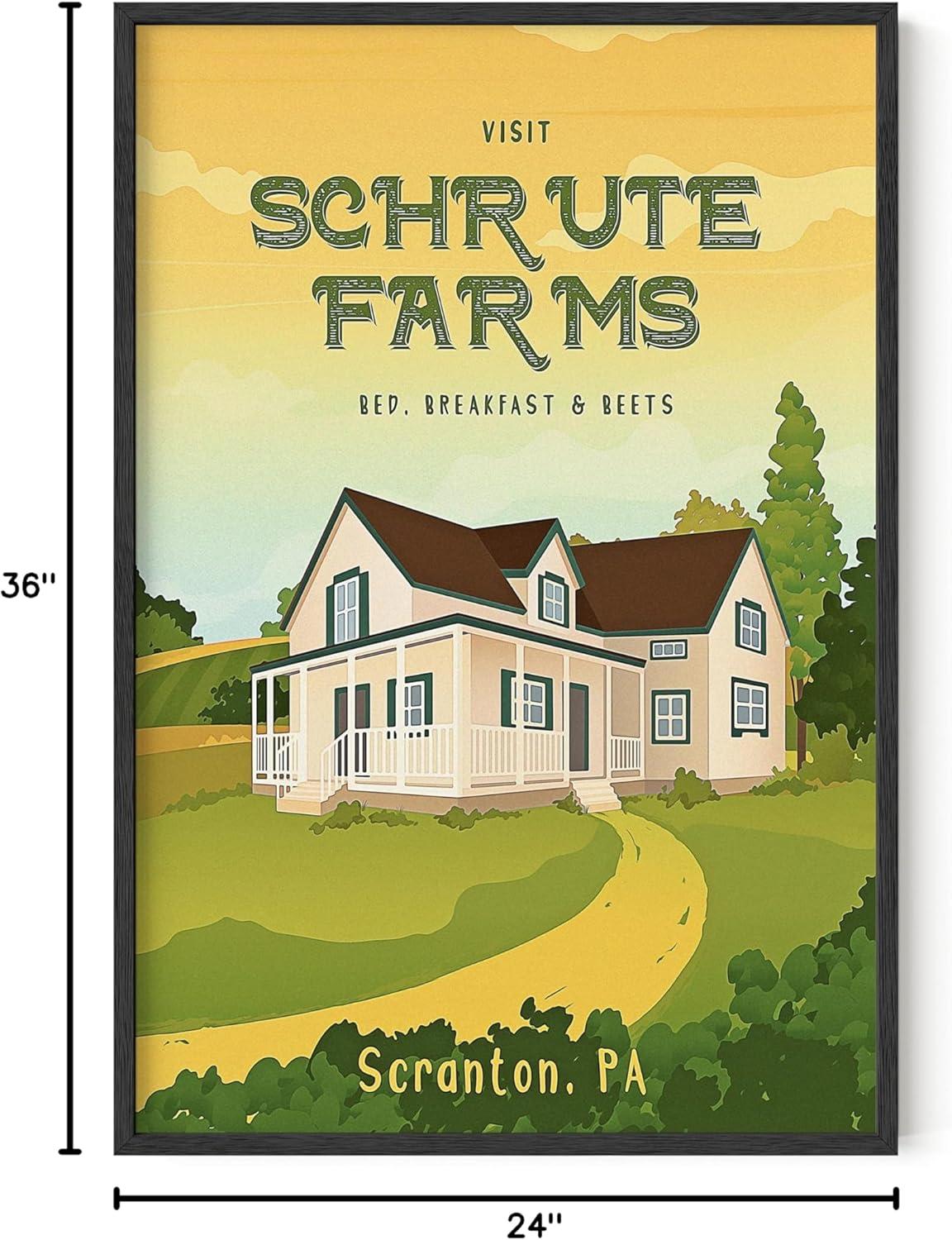 imageHAUS AND HUES The Office Dwight Schrute Poster TV Show Wall Art Funny Posters Merchandise Framed Beige 12x16Schrute Farms