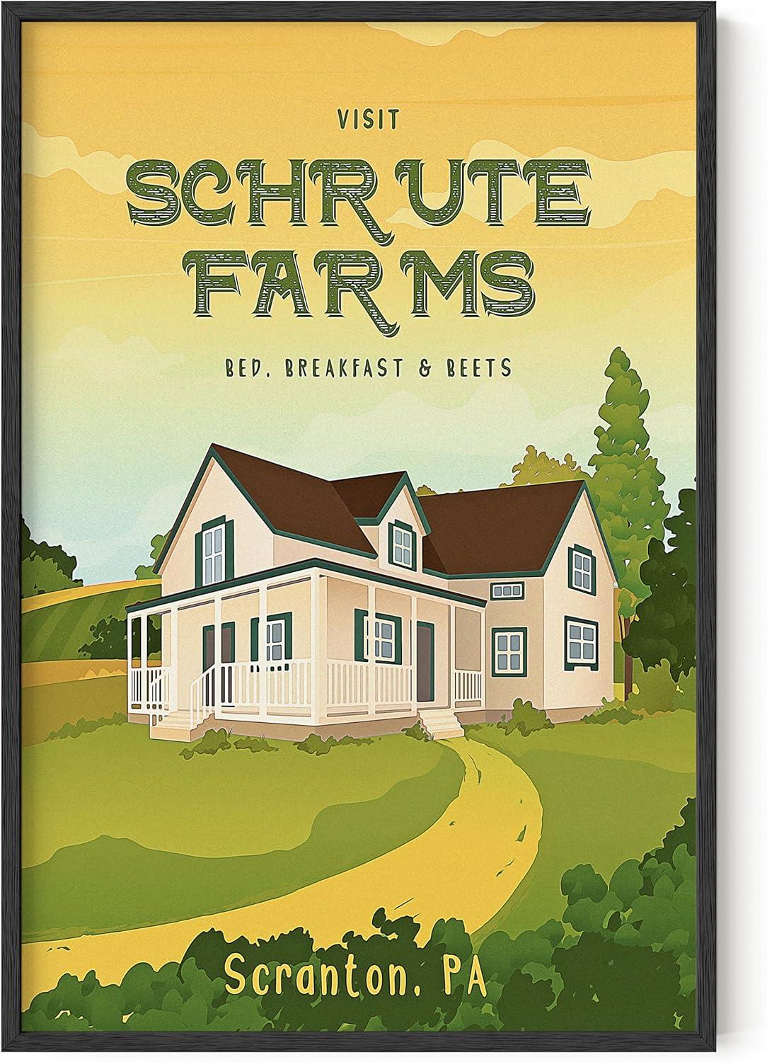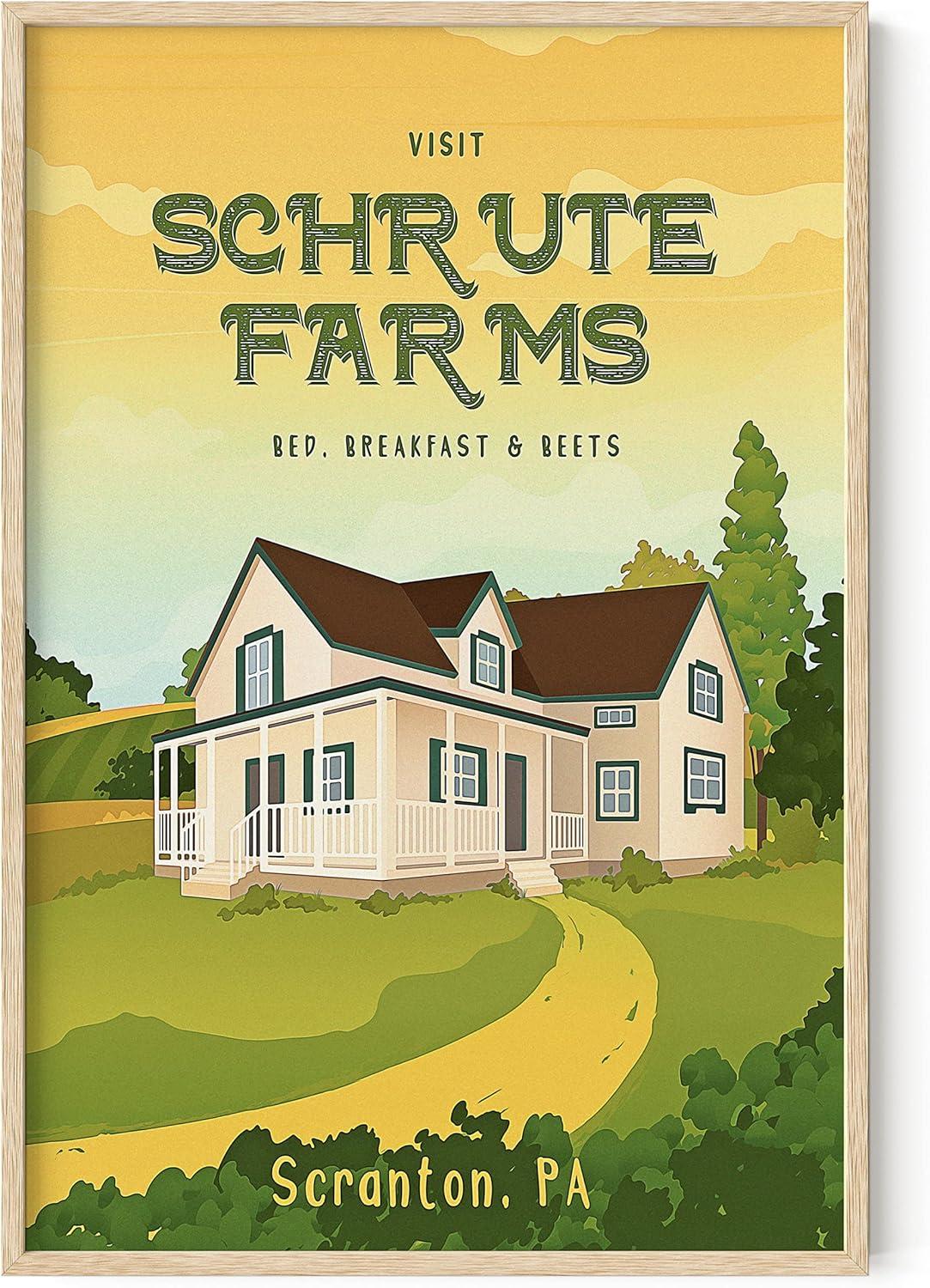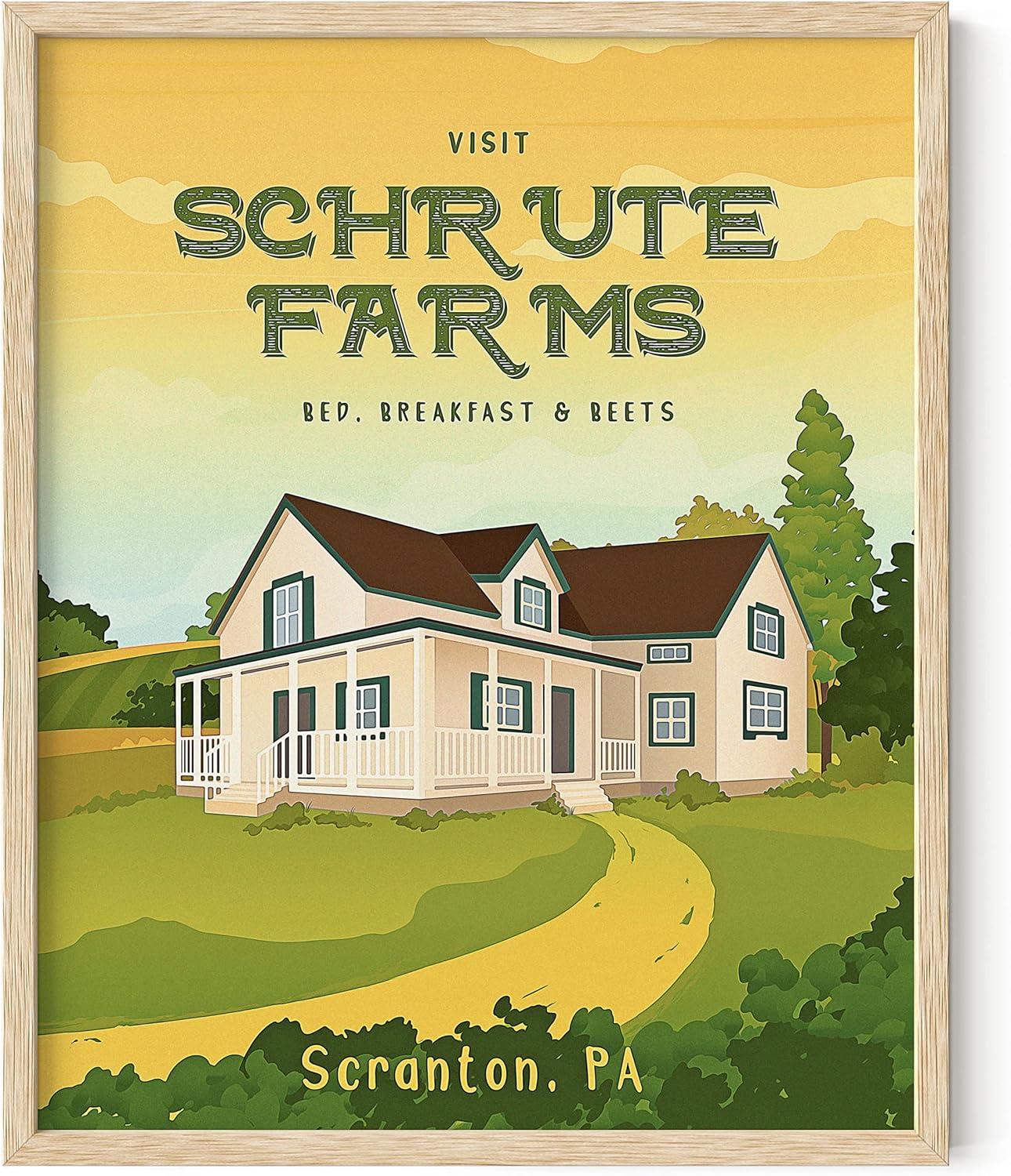 imageHAUS AND HUES The Office Dwight Schrute Poster TV Show Wall Art Funny Posters Merchandise Framed Beige 12x16Schrute Farms