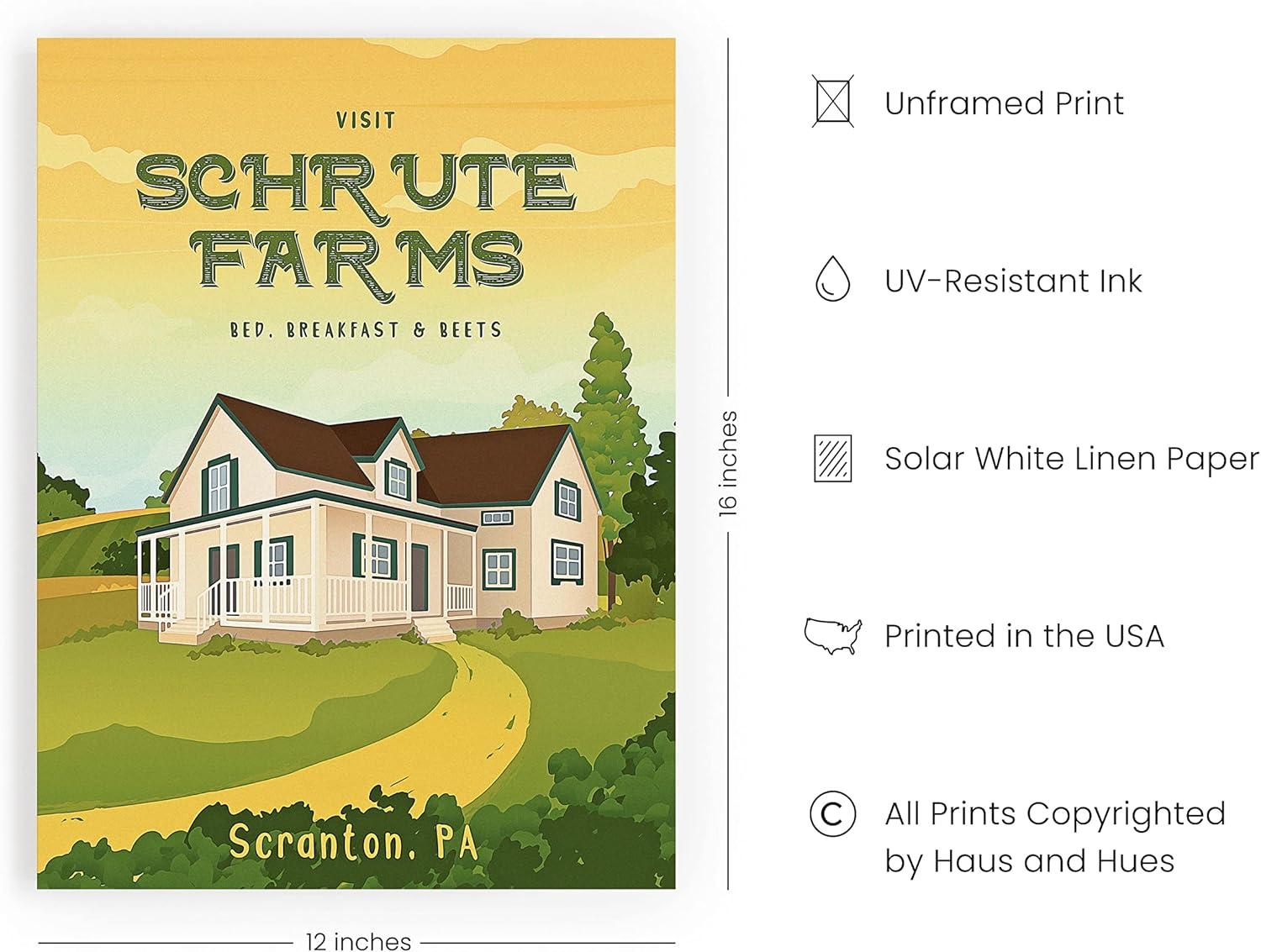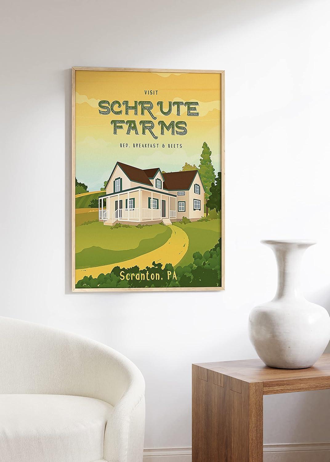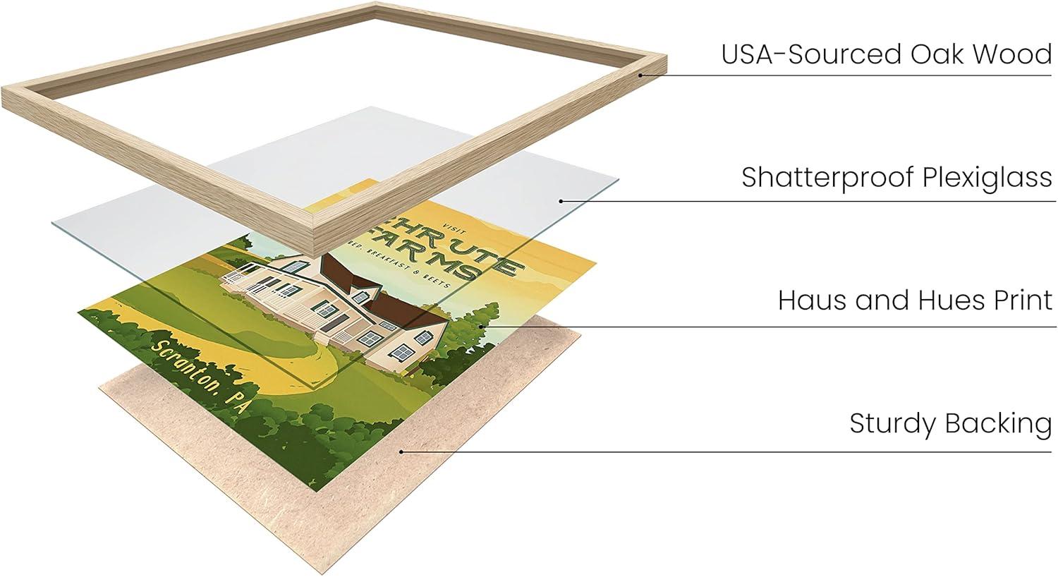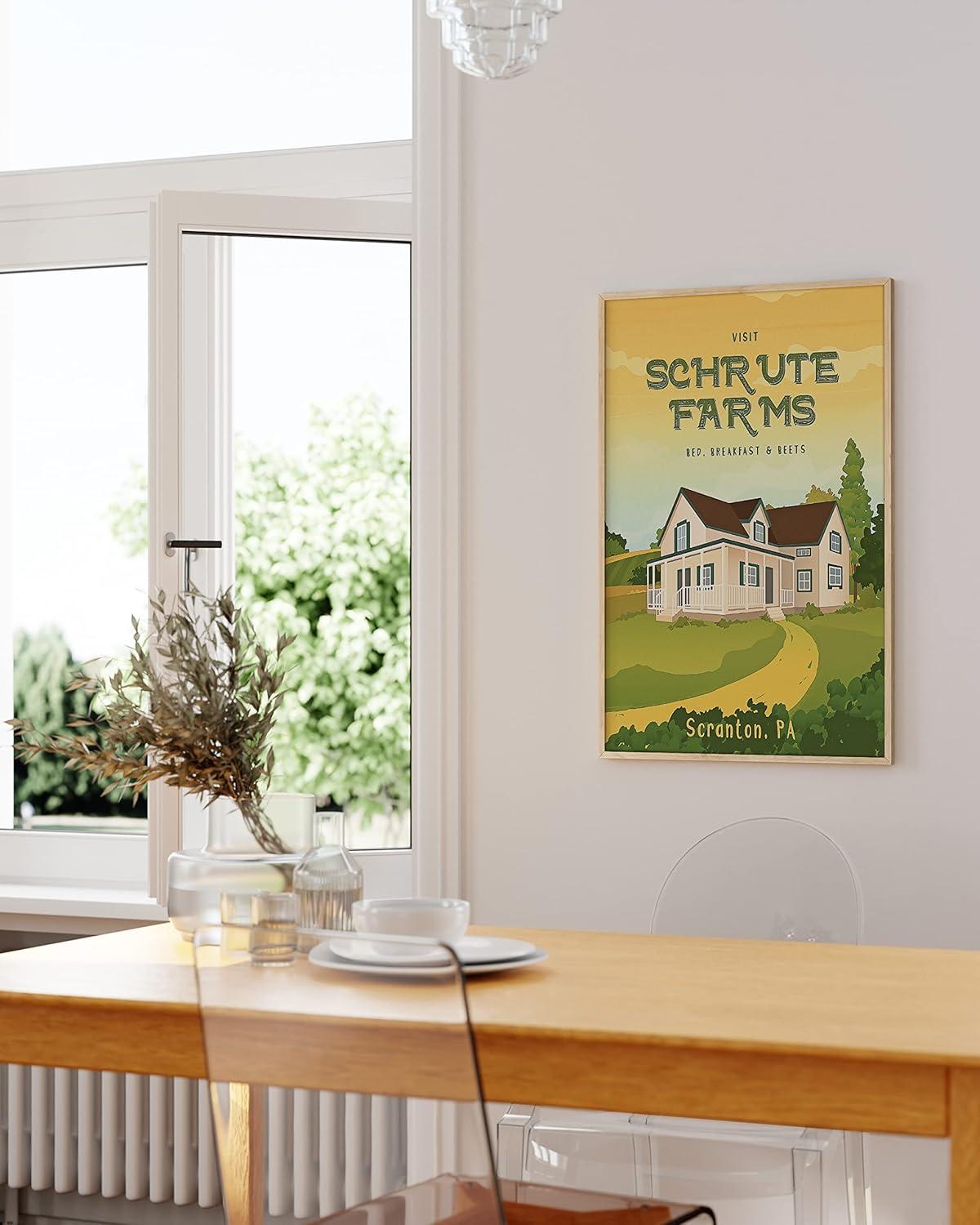 imageHAUS AND HUES The Office Dwight Schrute Poster TV Show Wall Art Funny Posters Merchandise Framed Beige 12x16Schrute Farms