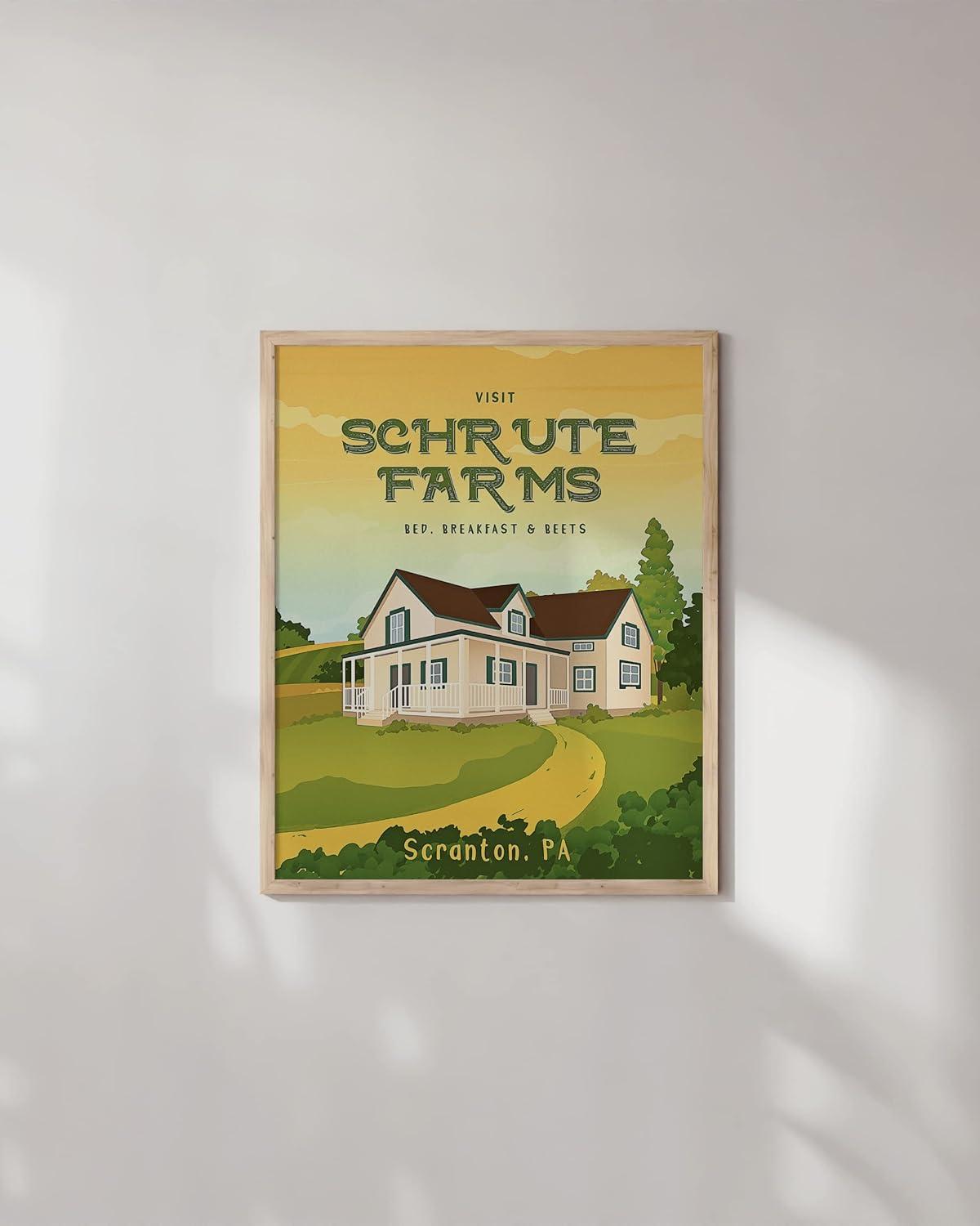 HAUS AND HUES The Office Dwight Schrute Poster, TV Show Wall Art, Funny Posters, Merchandise (Framed Beige, 12×16)(Schrute Farms)