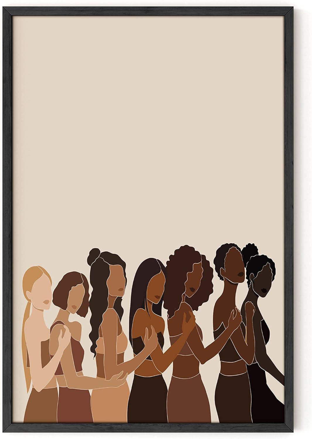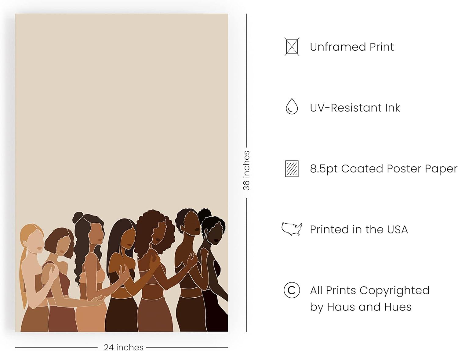 AWESOME BLACK WOMEN POSTER: Honor and affirm the extraordinary women in your life with Haus and Hues stunning african black art. This uplifting poster features a handful of women of different races and colors. It's a beautiful artwork that speaks of women’s liberation and female solidarity. If you like anything that brings women together to celebrate and support one another or just spoil the feminist badass in your life, then this black girl magic wall decor is for you