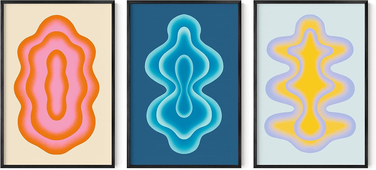 Haus and Hues Yellow and Blue Art – Set of 3 Bauhaus Geometric Pictures for Wall, Modern Art, Abstract Art, Colorful Art, Yellow and Blue Artwork, Neutral Wall Art, Colorful Wall Art (Unframed, 12×16)(Retro Layered Lips)
