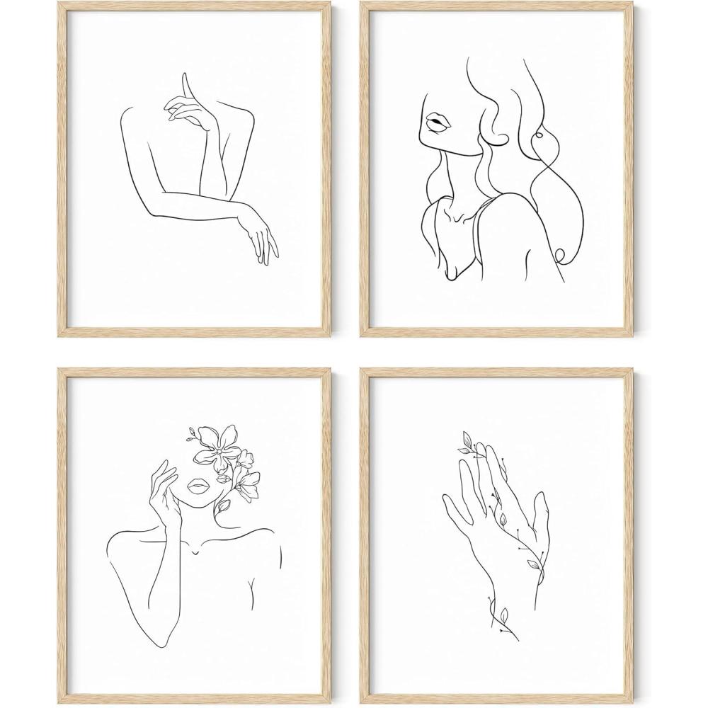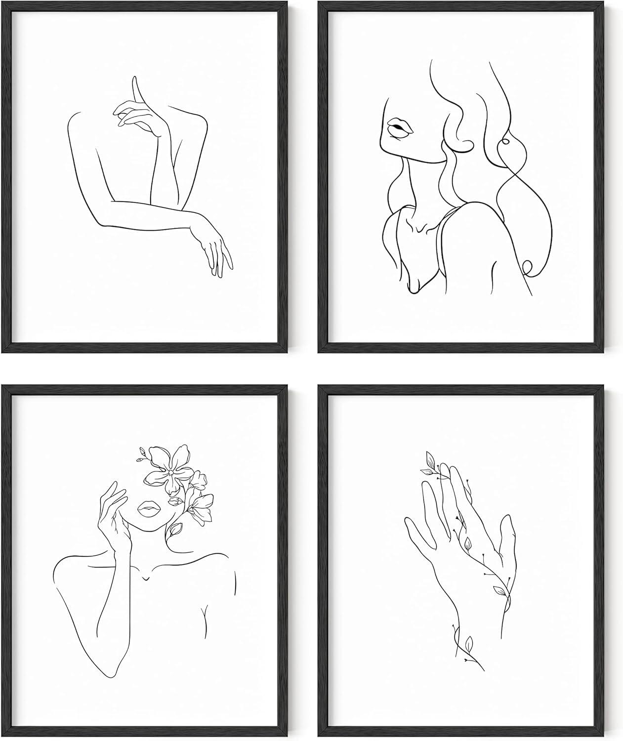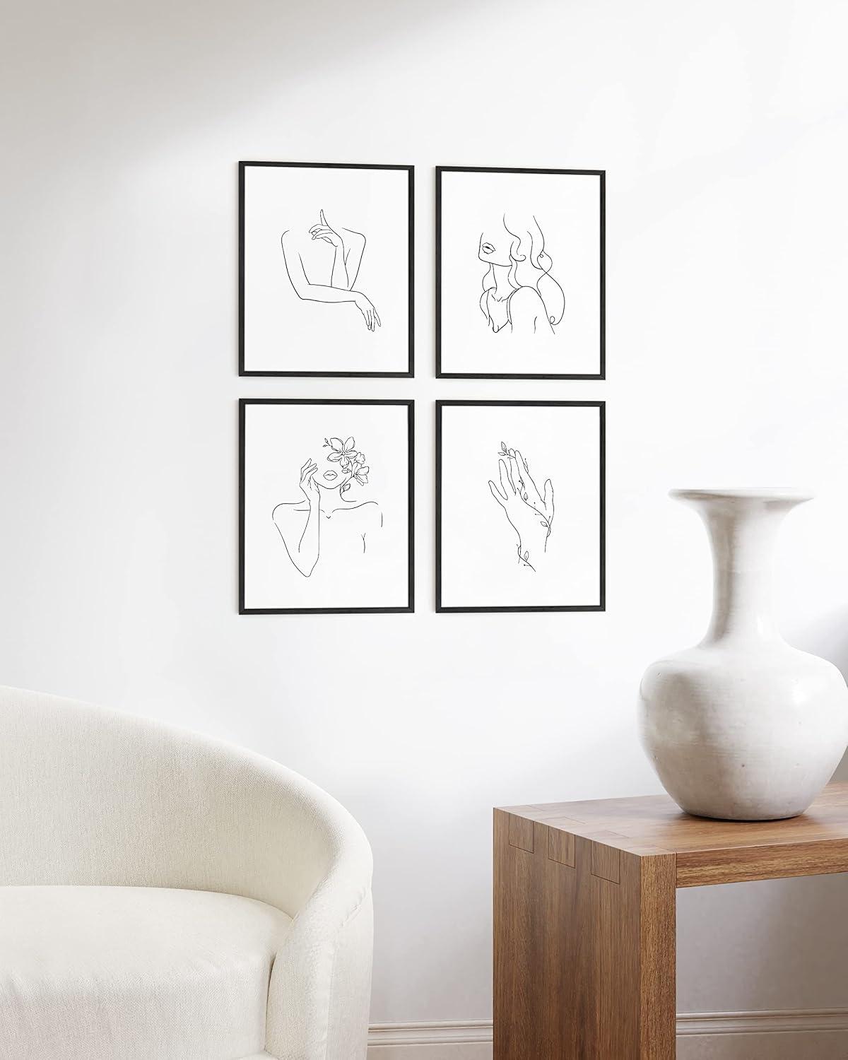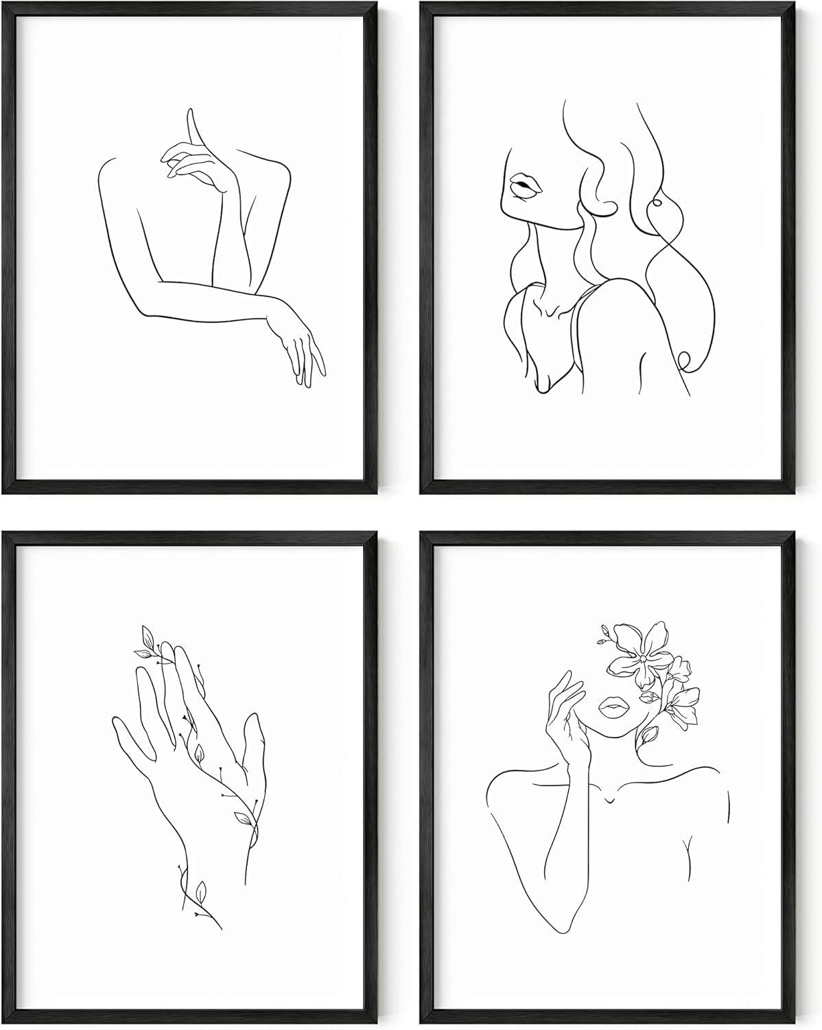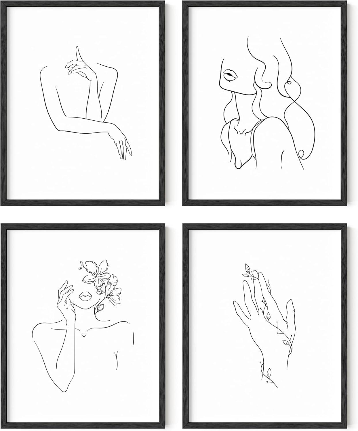 imageRipGrip Minimalist Wall Art  Set of 4 Woman Silhouette Line Drawings Room Aesthetic Posters Abstract Decor Beige Frame 8x10Black  White