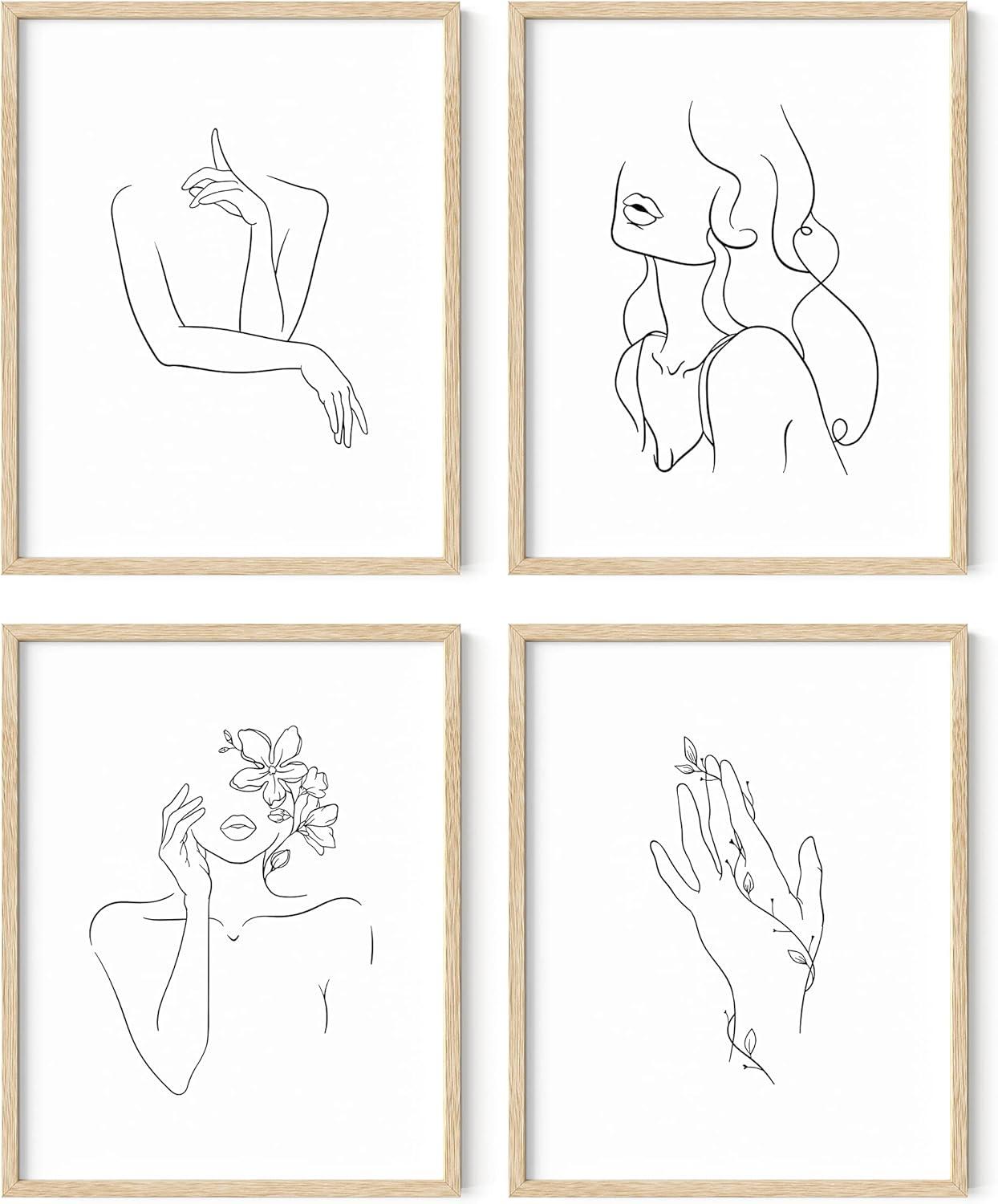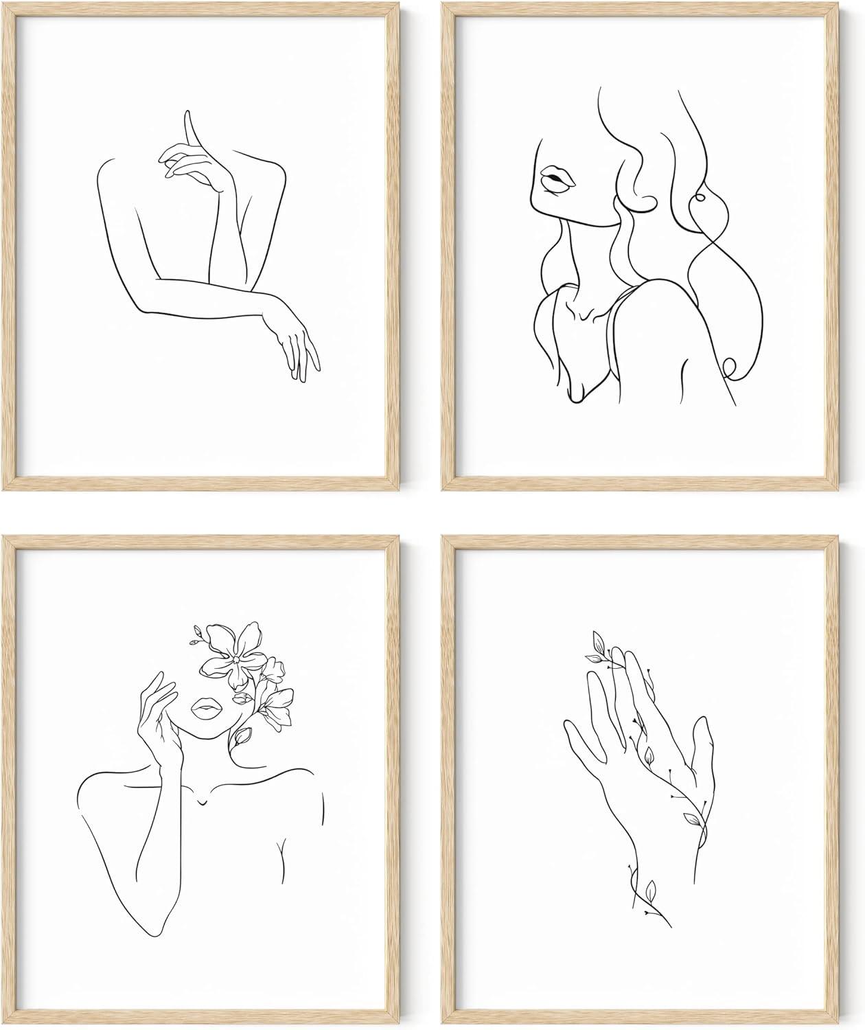 imageRipGrip Minimalist Wall Art  Set of 4 Woman Silhouette Line Drawings Room Aesthetic Posters Abstract Decor Beige Frame 8x10Beige
