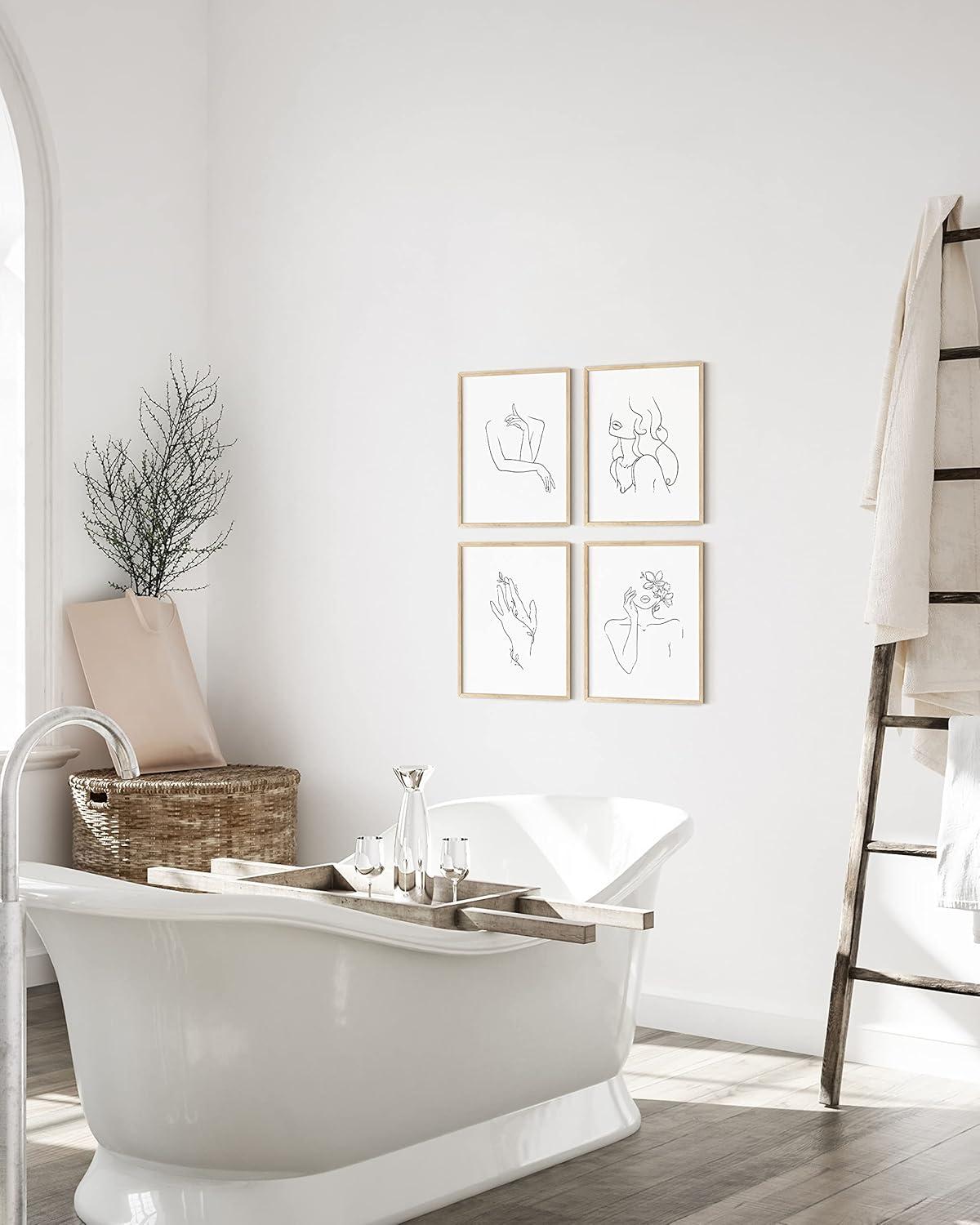 RipGrip Minimalist Wall Art – Set of 4 Woman Silhouette Line Drawings, Room Aesthetic Posters, Abstract Decor (Beige Frame, 8×10)(Beige)